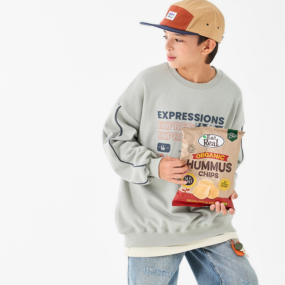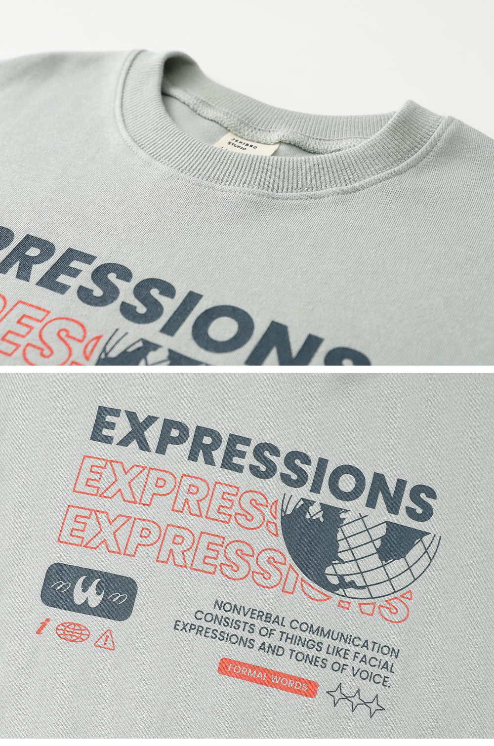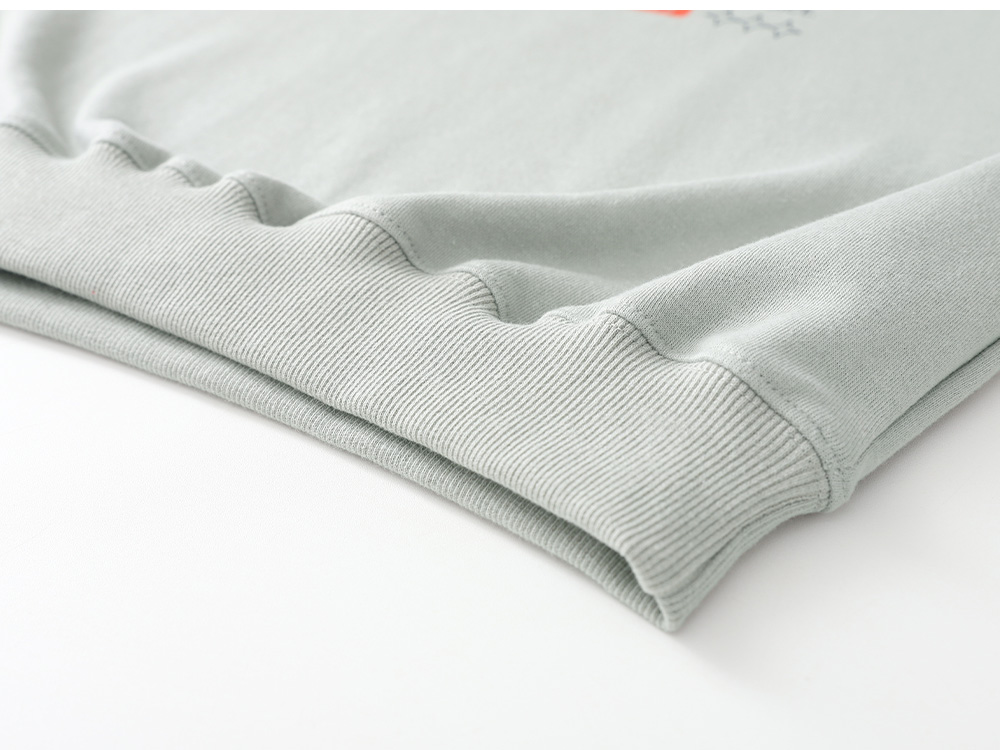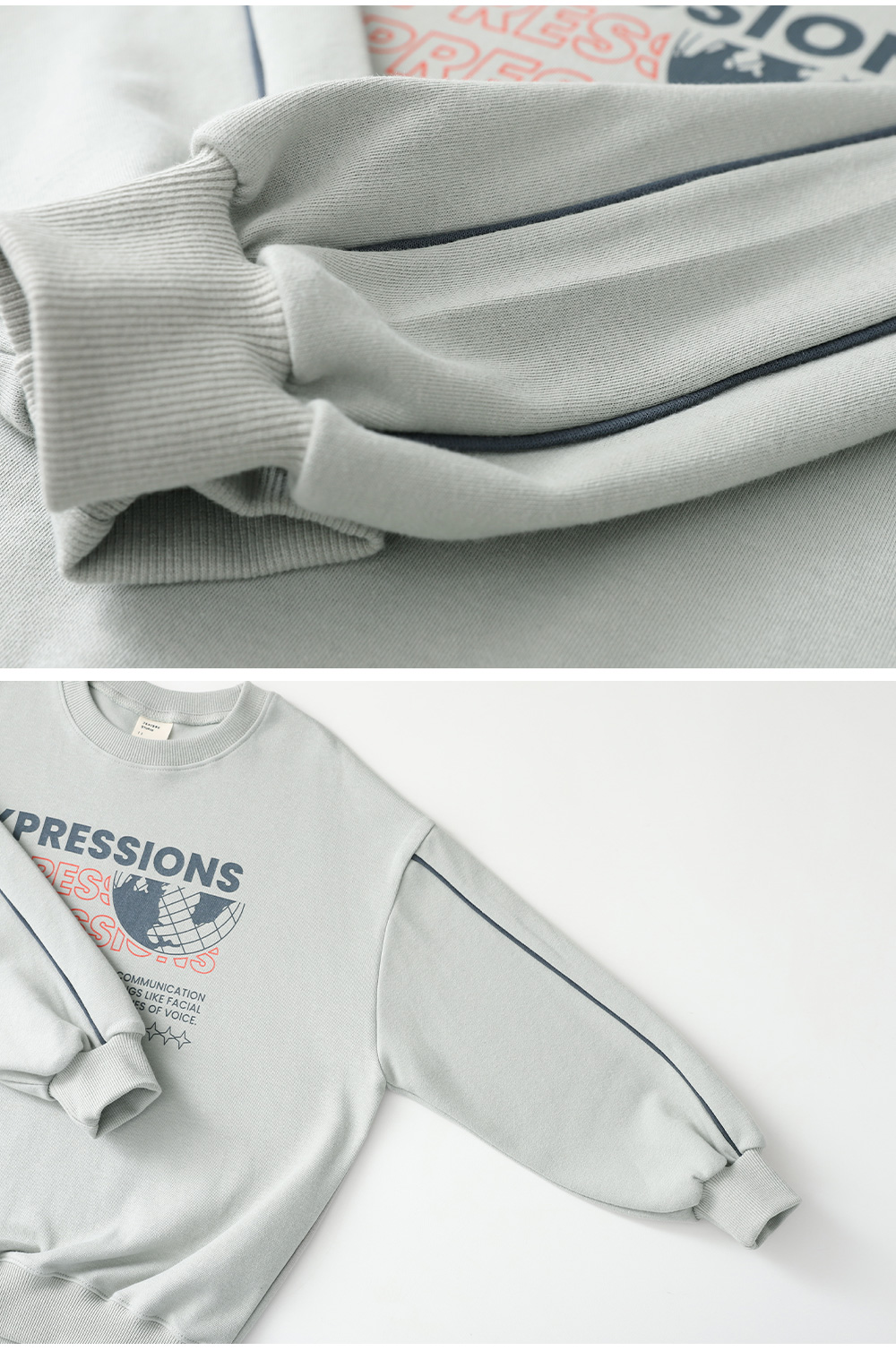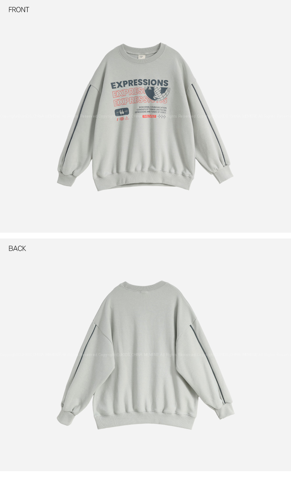 밝고 부드러운 무드가 느껴지는 연카키 컬러의 맨투맨이에요.