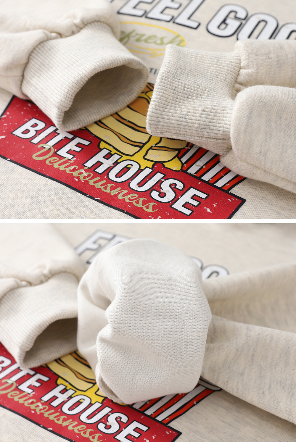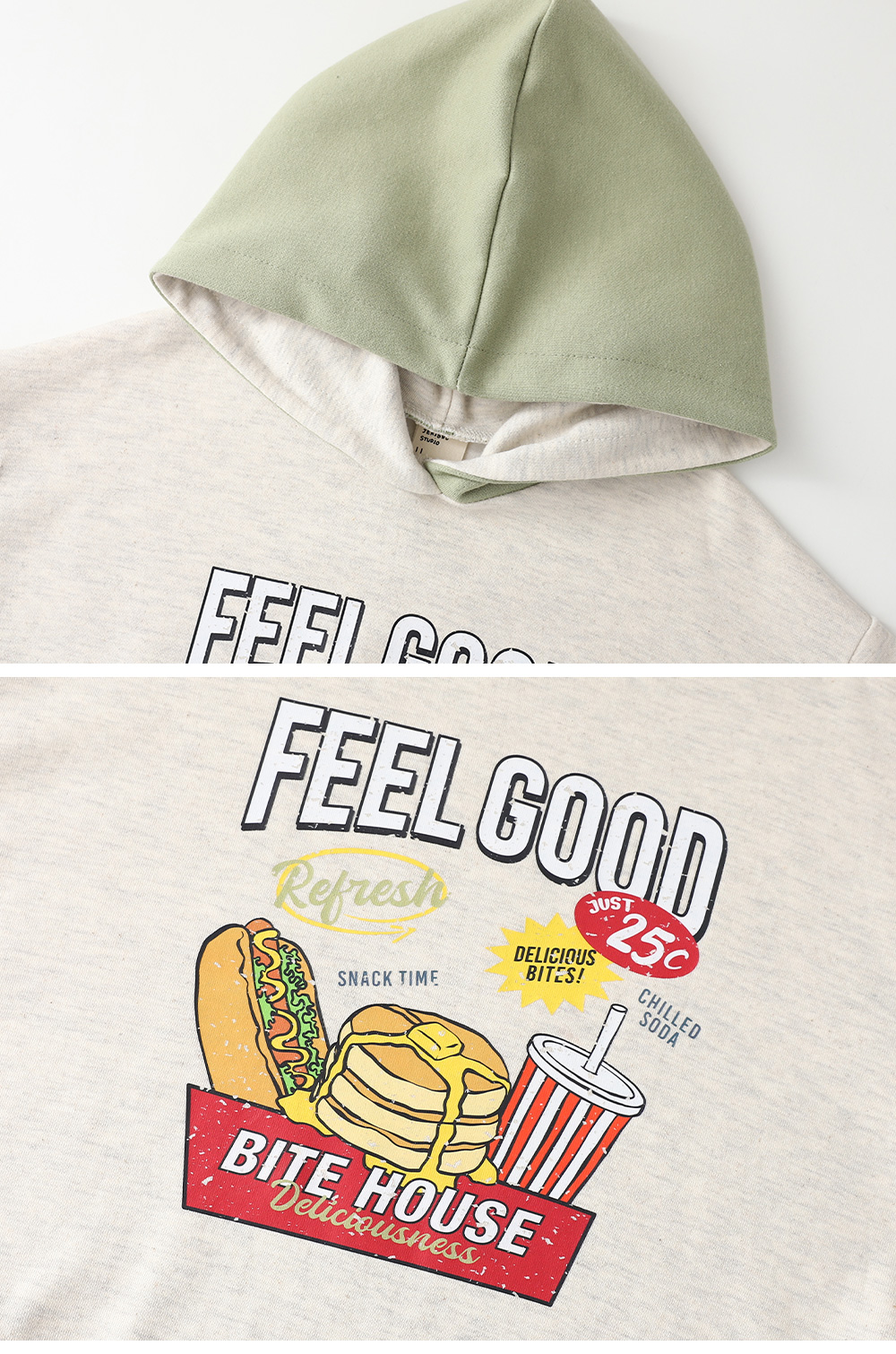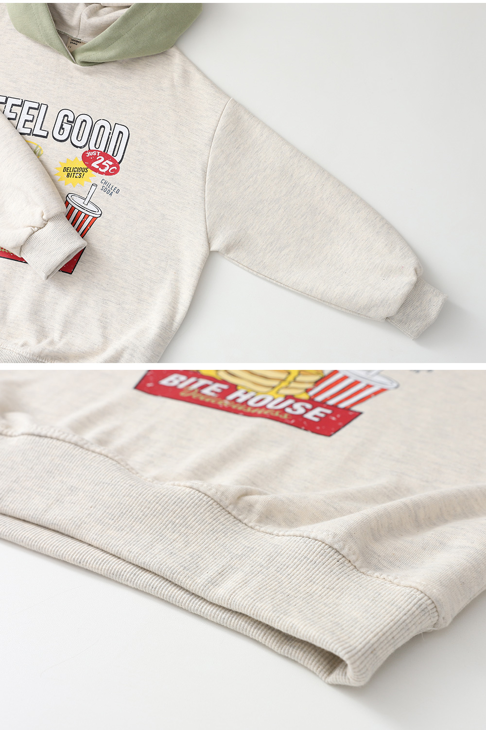 부드러운 오트밀 컬러에 프론트의 유니크한 프린팅이 발랄한 포인트가 되어줘요..