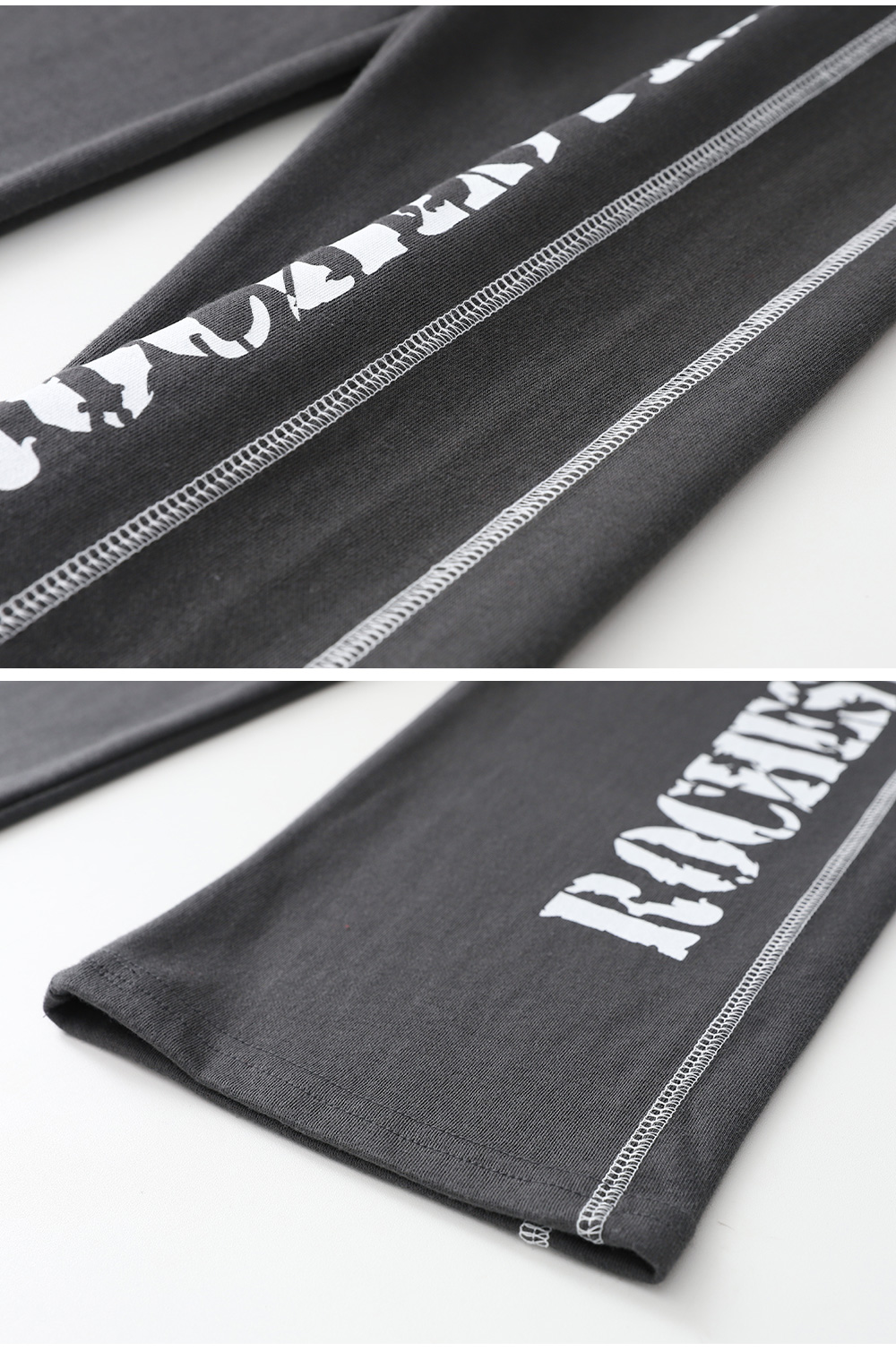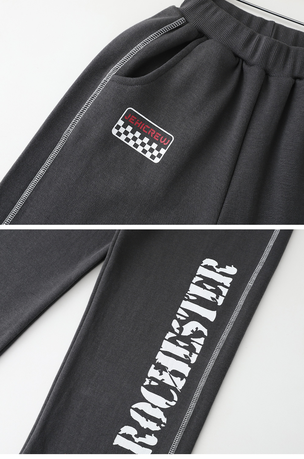 양쪽 라인과 빈티지한 영문 나염이 돋보이는 트레이닝 팬츠예요