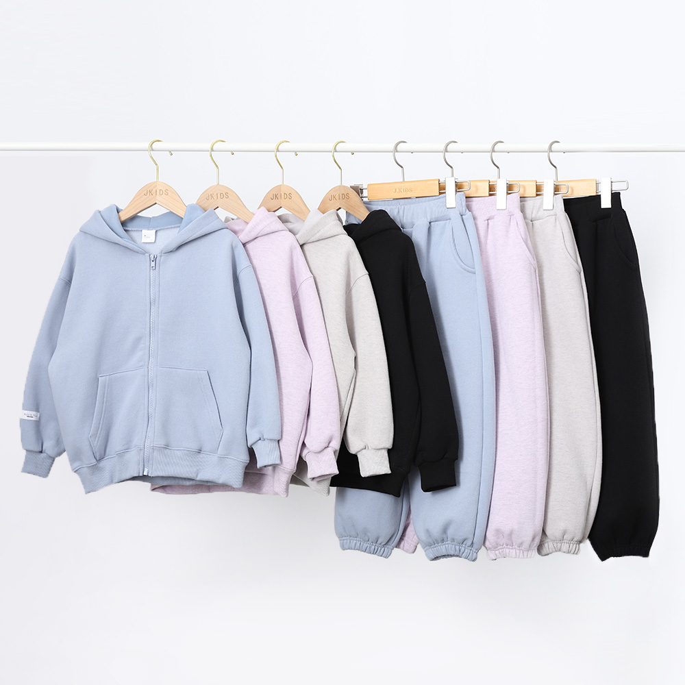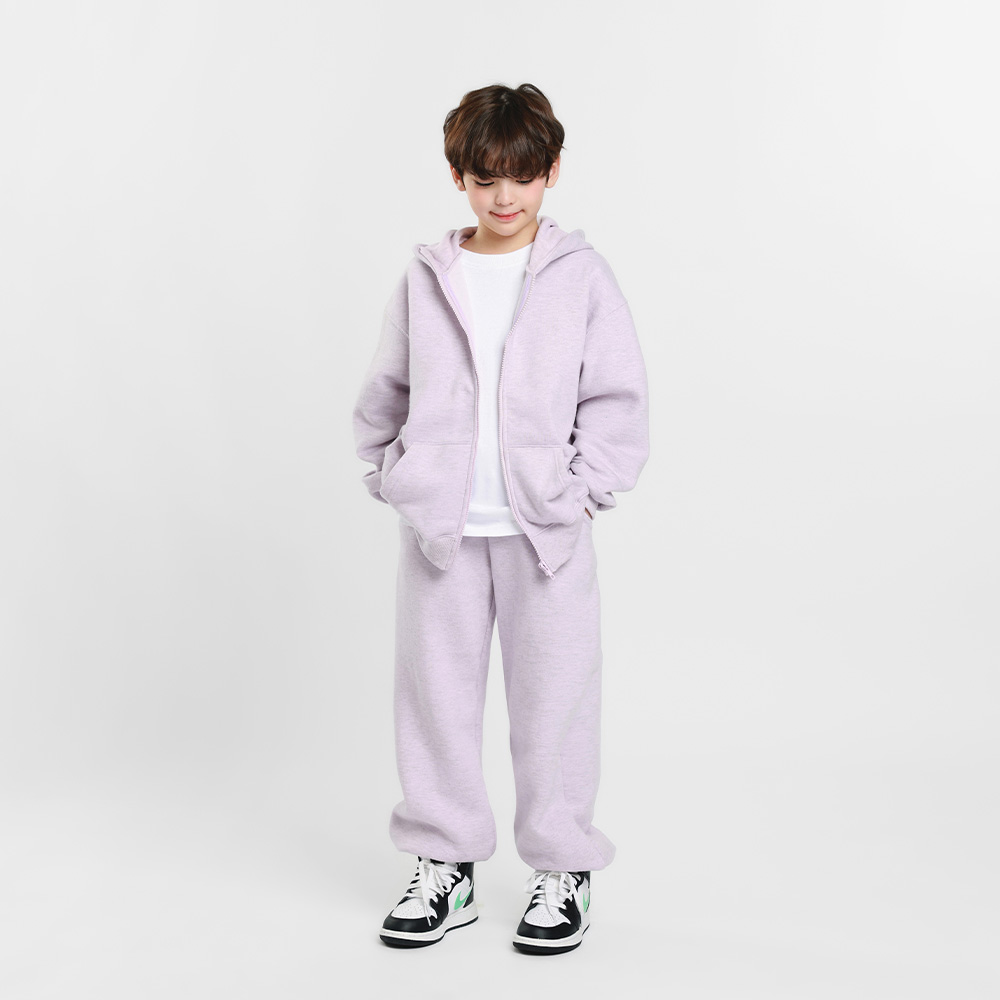포근한 양기모 소재로 제작된 후드집업과 조거팬츠 상하셋업이에요.