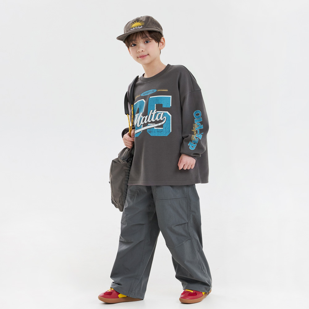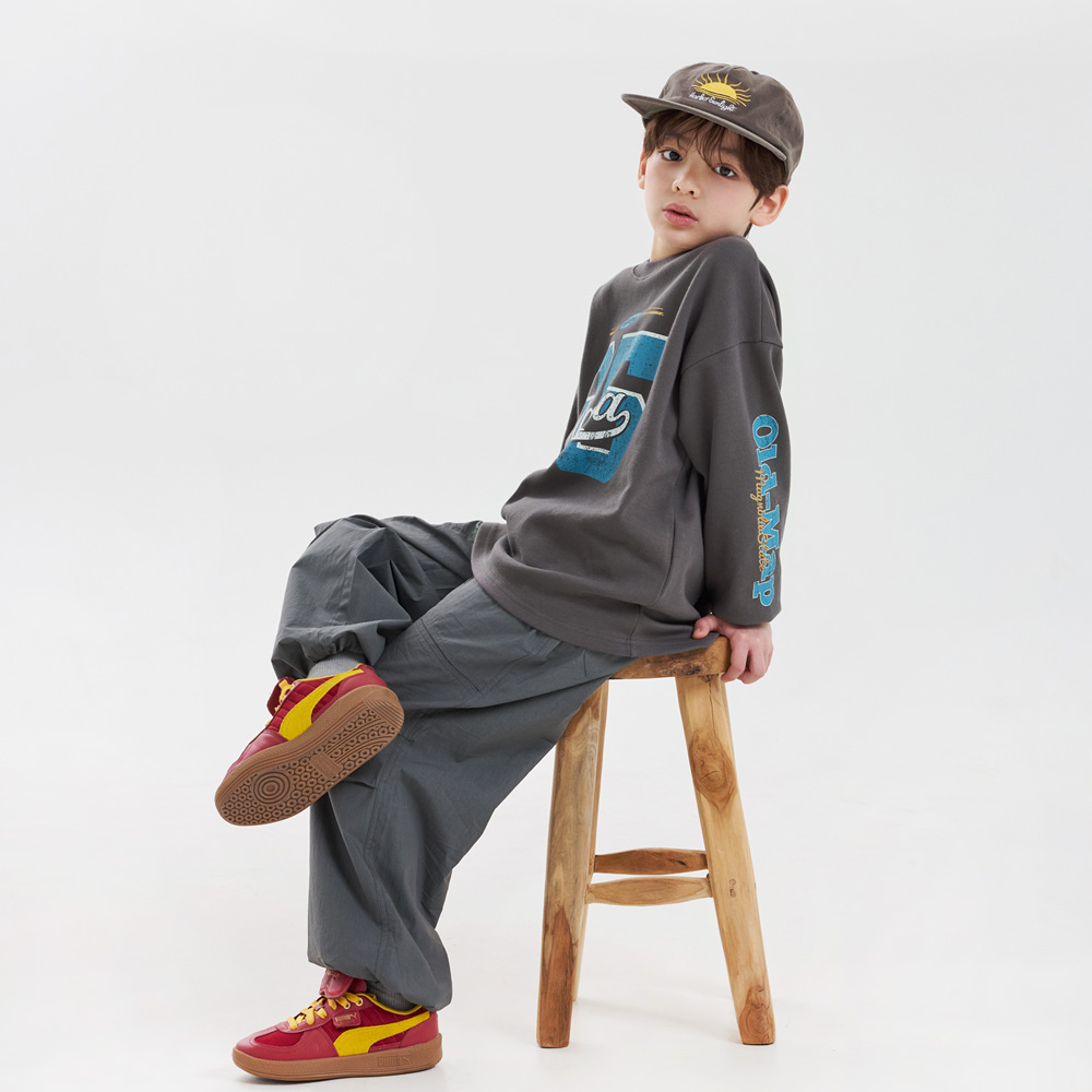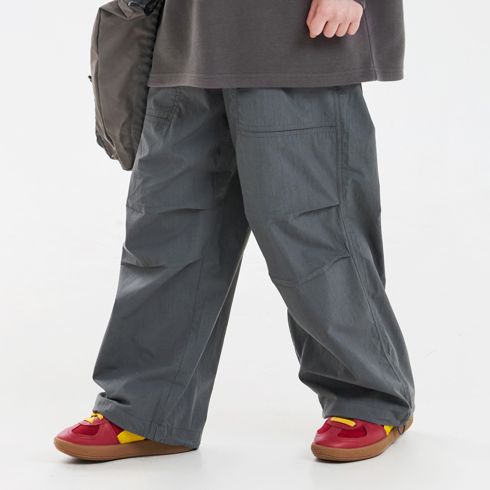 무릎부분 주름 잡은 디테일이 돋보이는 우븐 팬츠예요