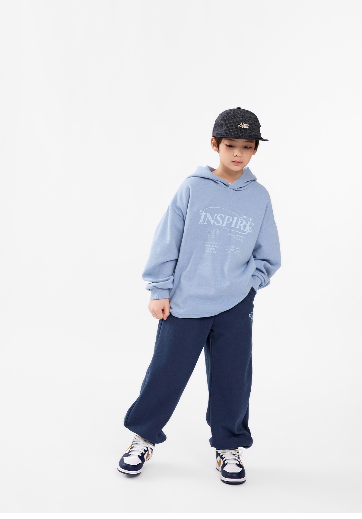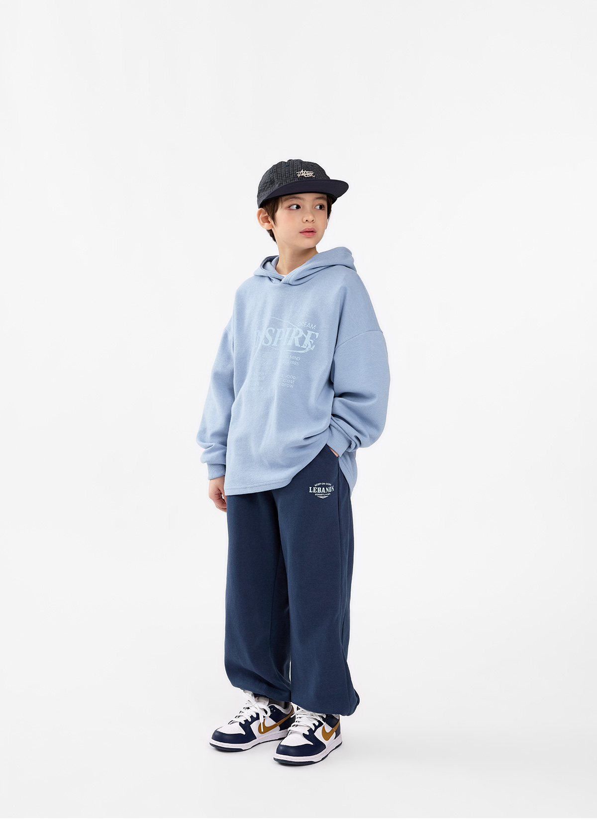 영문 로고와 양옆 절개라인이 돋보이는 조거 팬츠예요