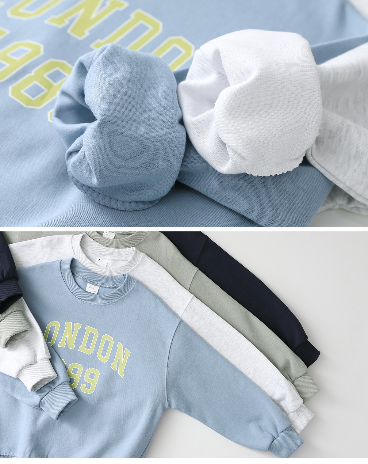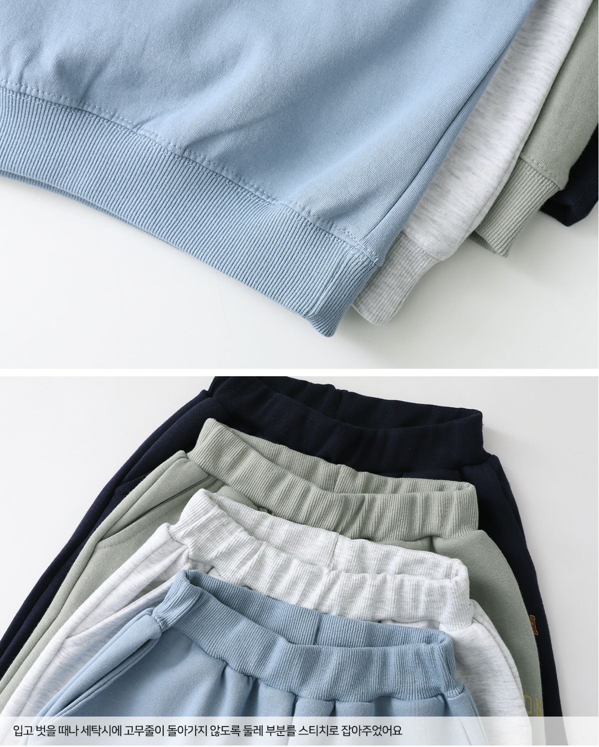 맨투맨과 조거팬츠 구성으로 활동량 많은 아이들도 편안하게 착용할 수 있답니다.