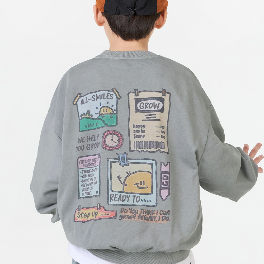 뒷면 귀여운 나염과 피그먼트 워싱이 돋보이는 맨투맨이예요