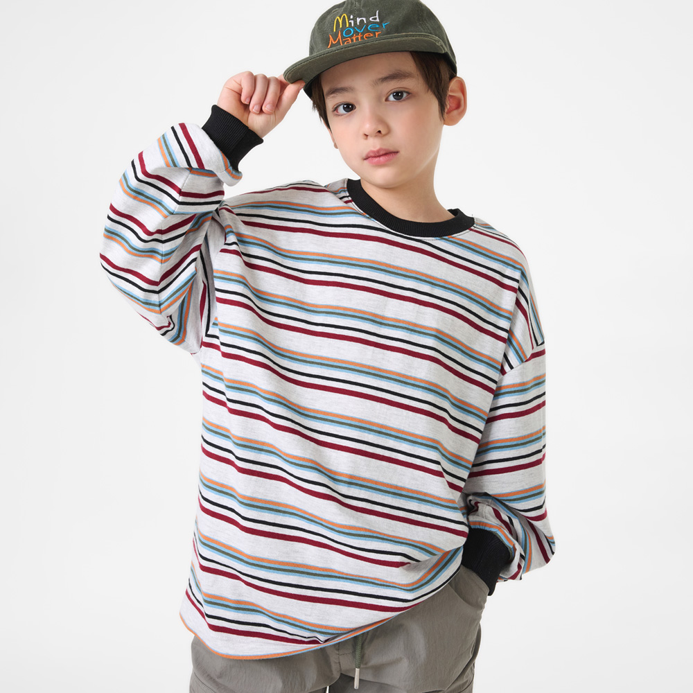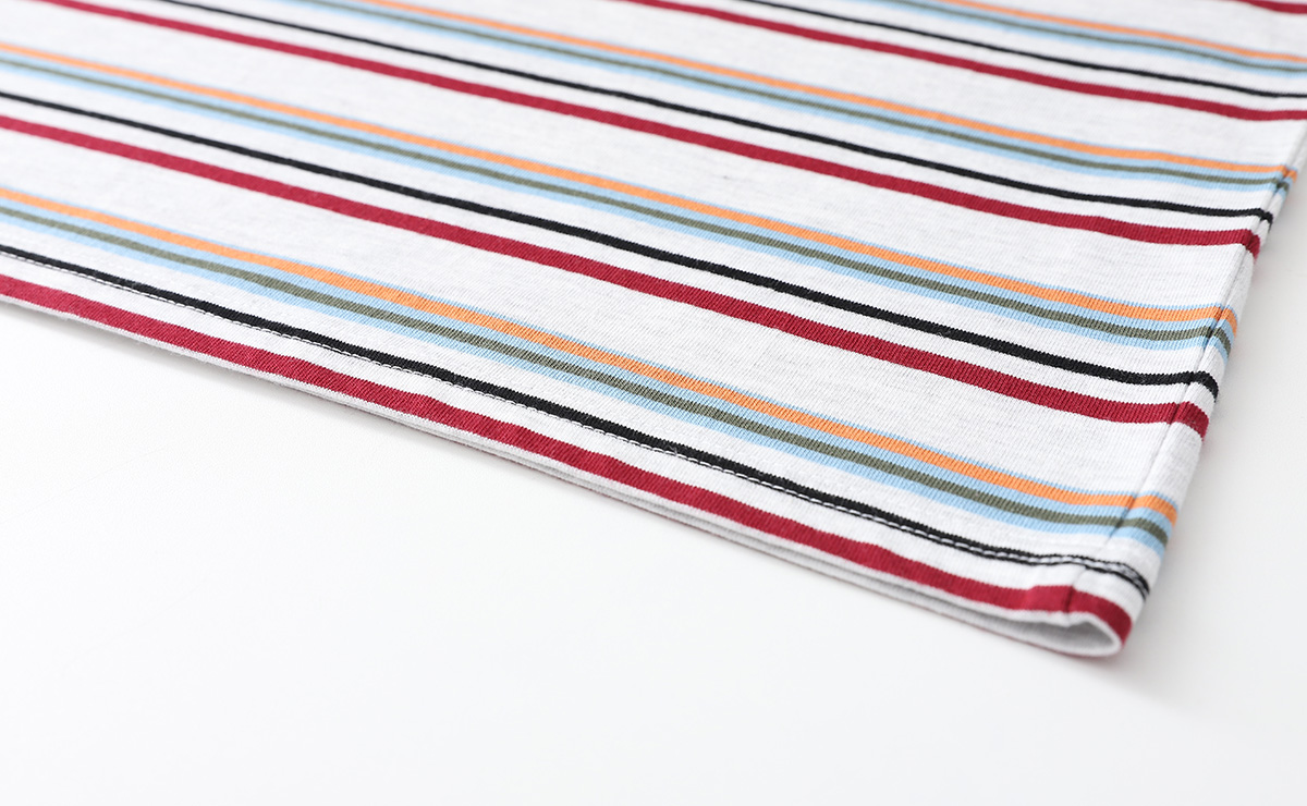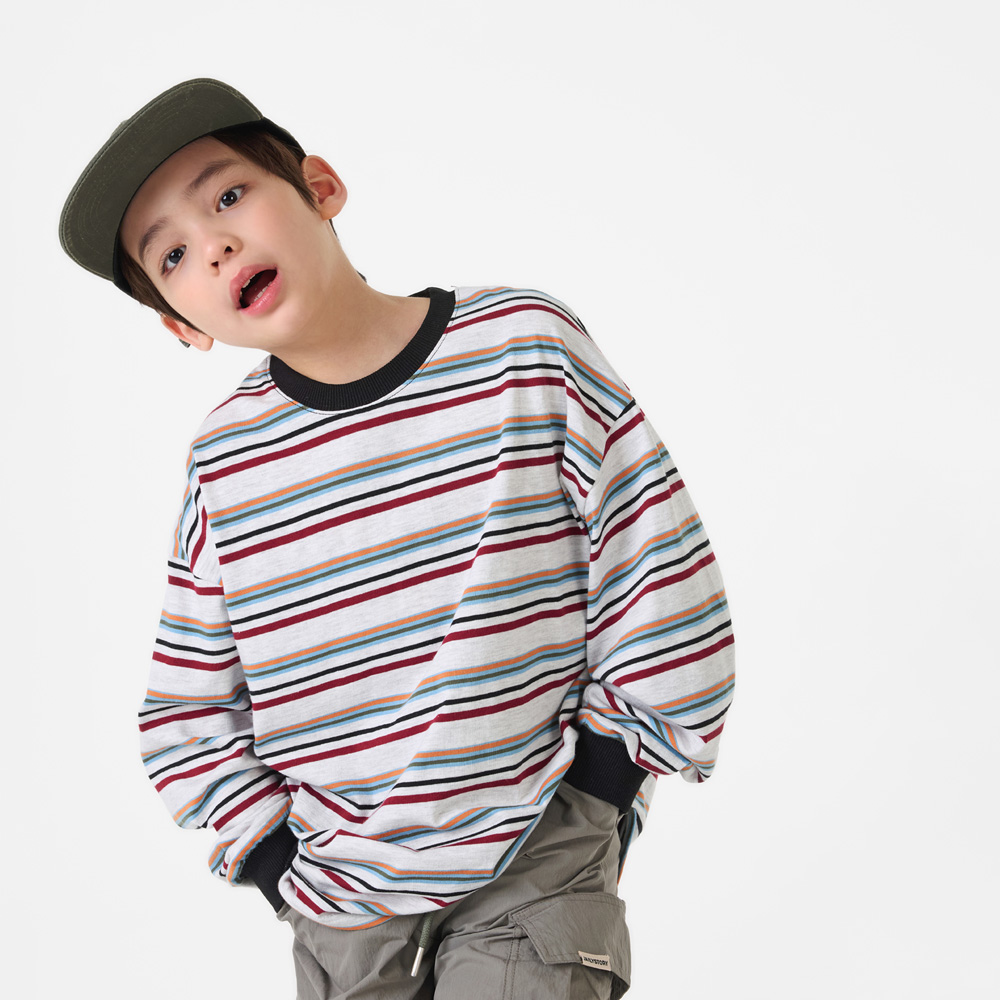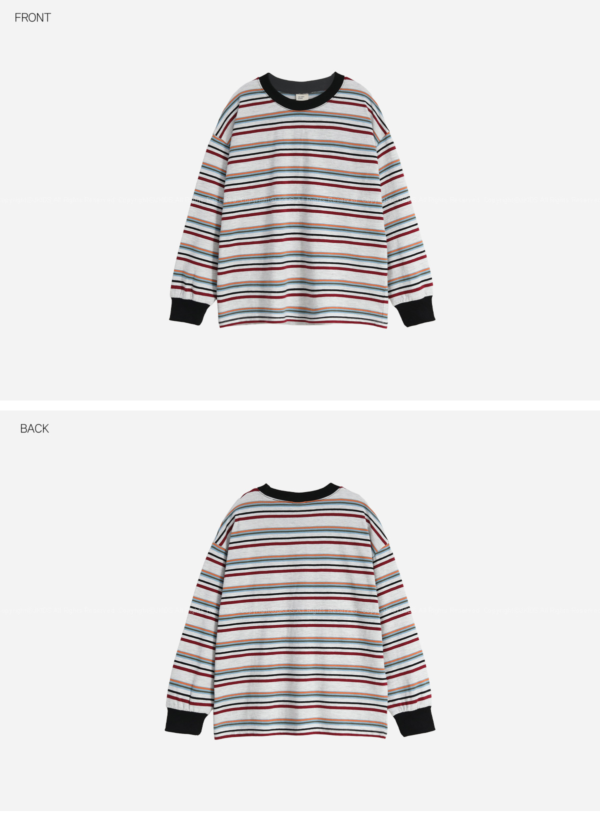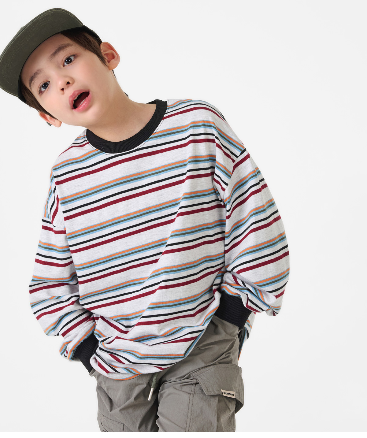 잔잔한 멀티 스트라이프 패턴이 돋보이는 티셔츠예요.