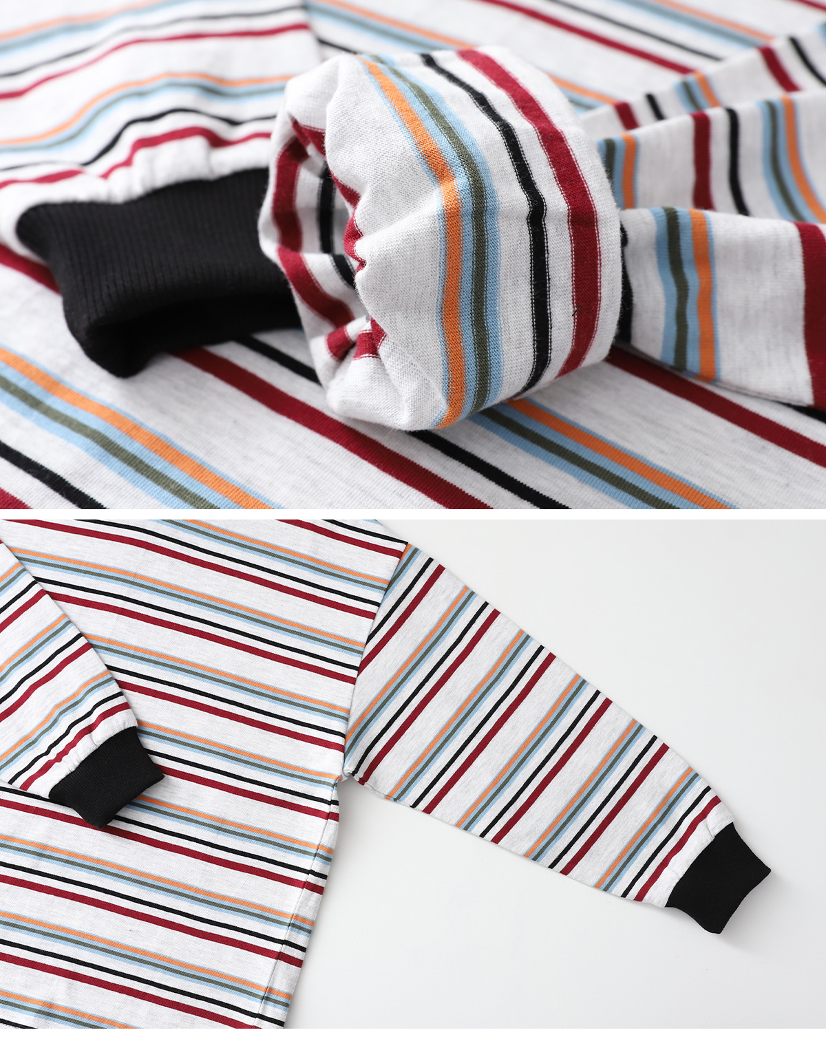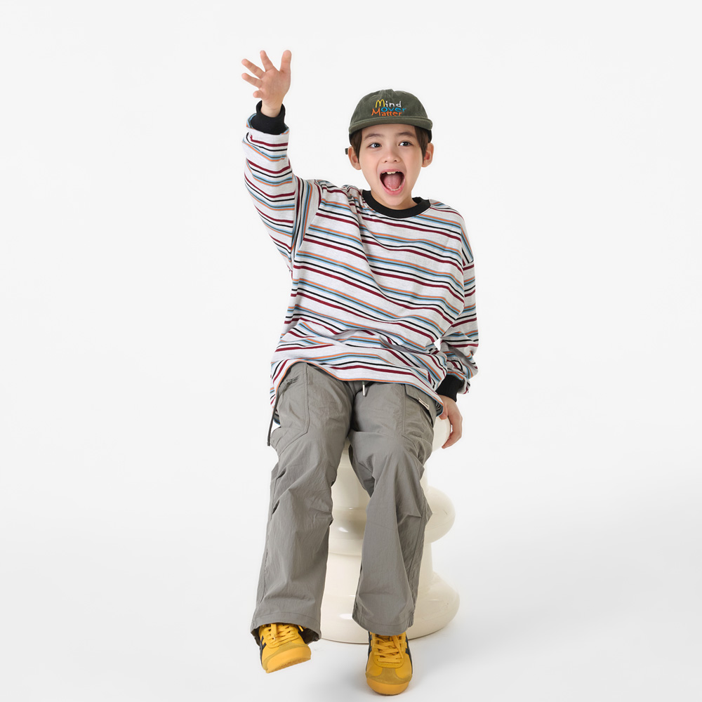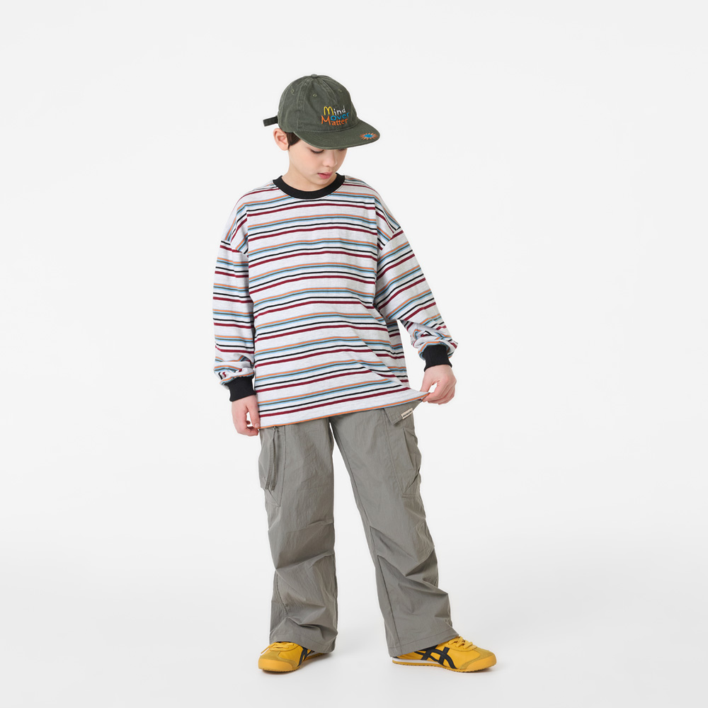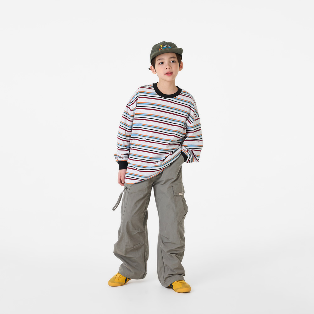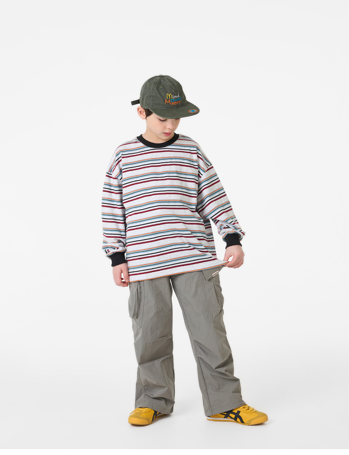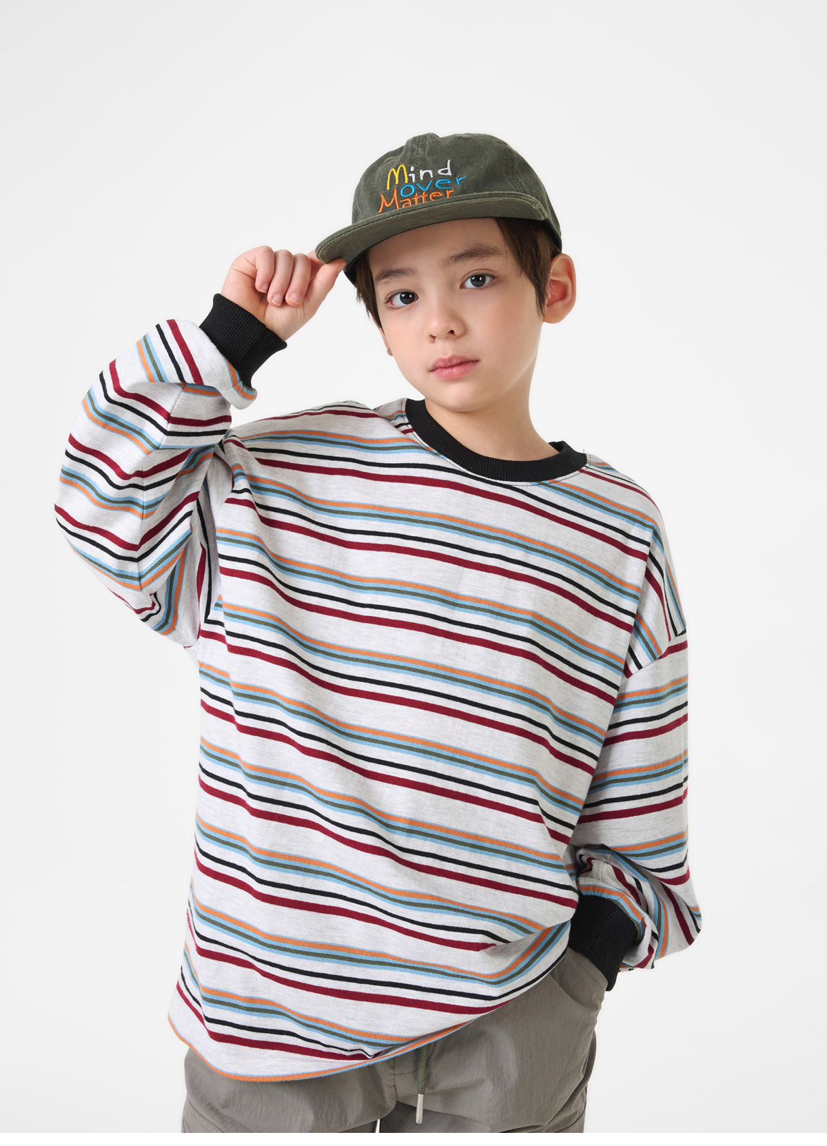 잔잔한 멀티 스트라이프 패턴이 돋보이는 티셔츠예요.