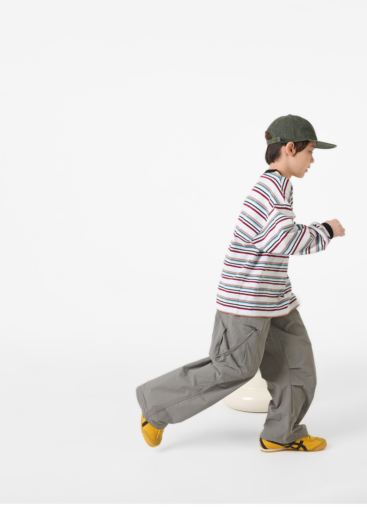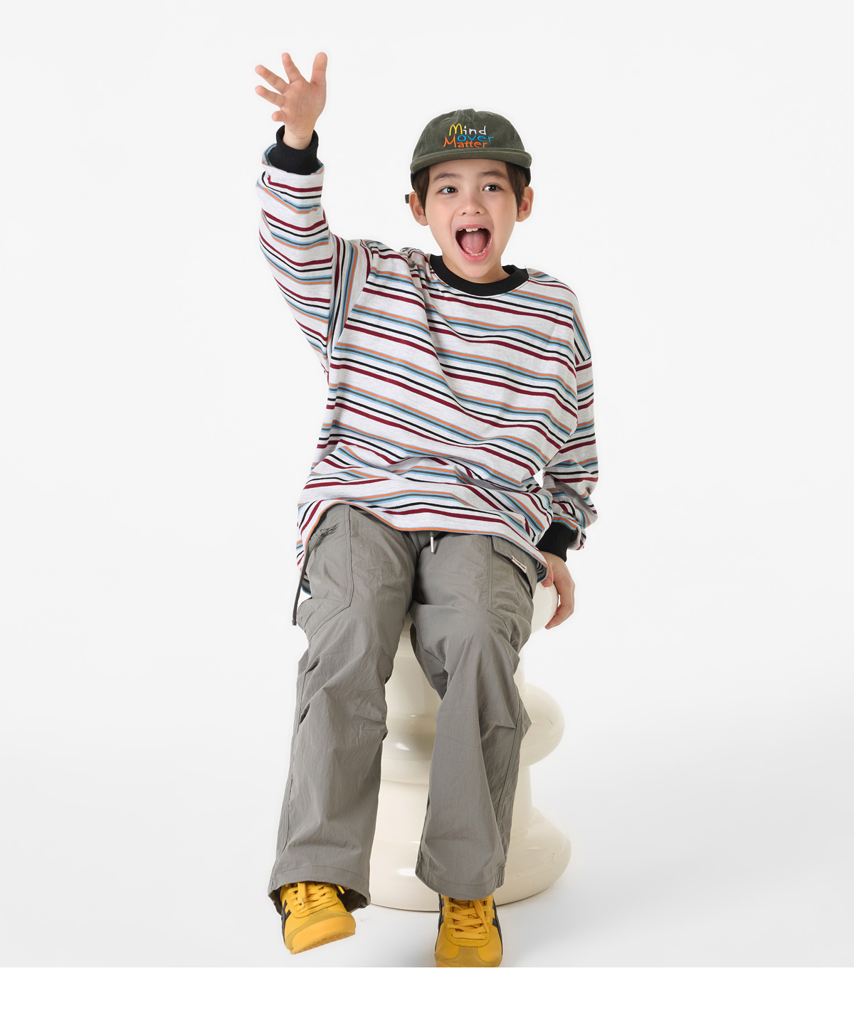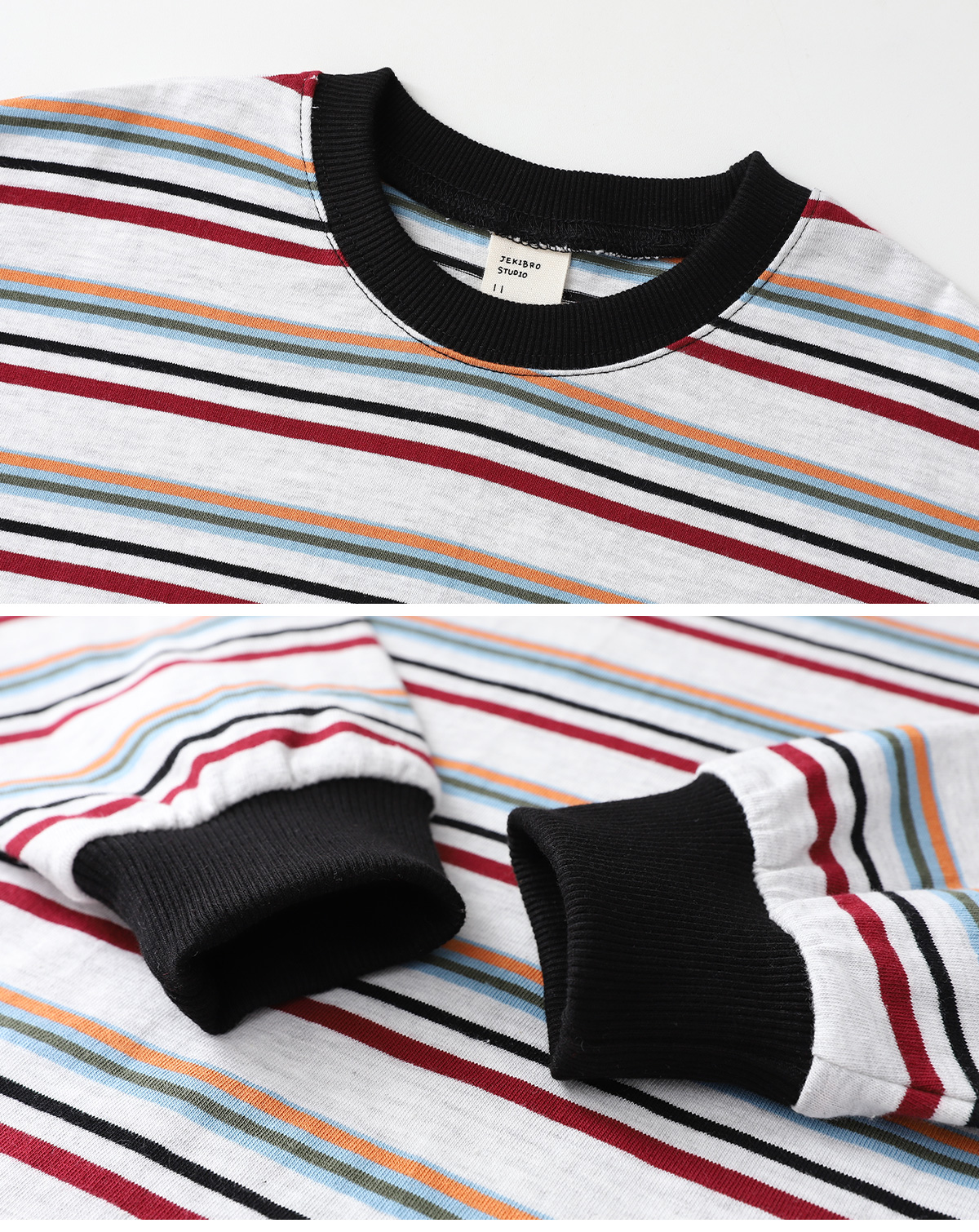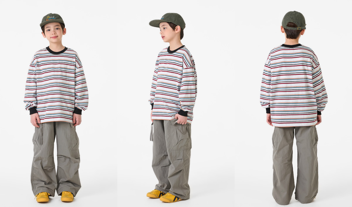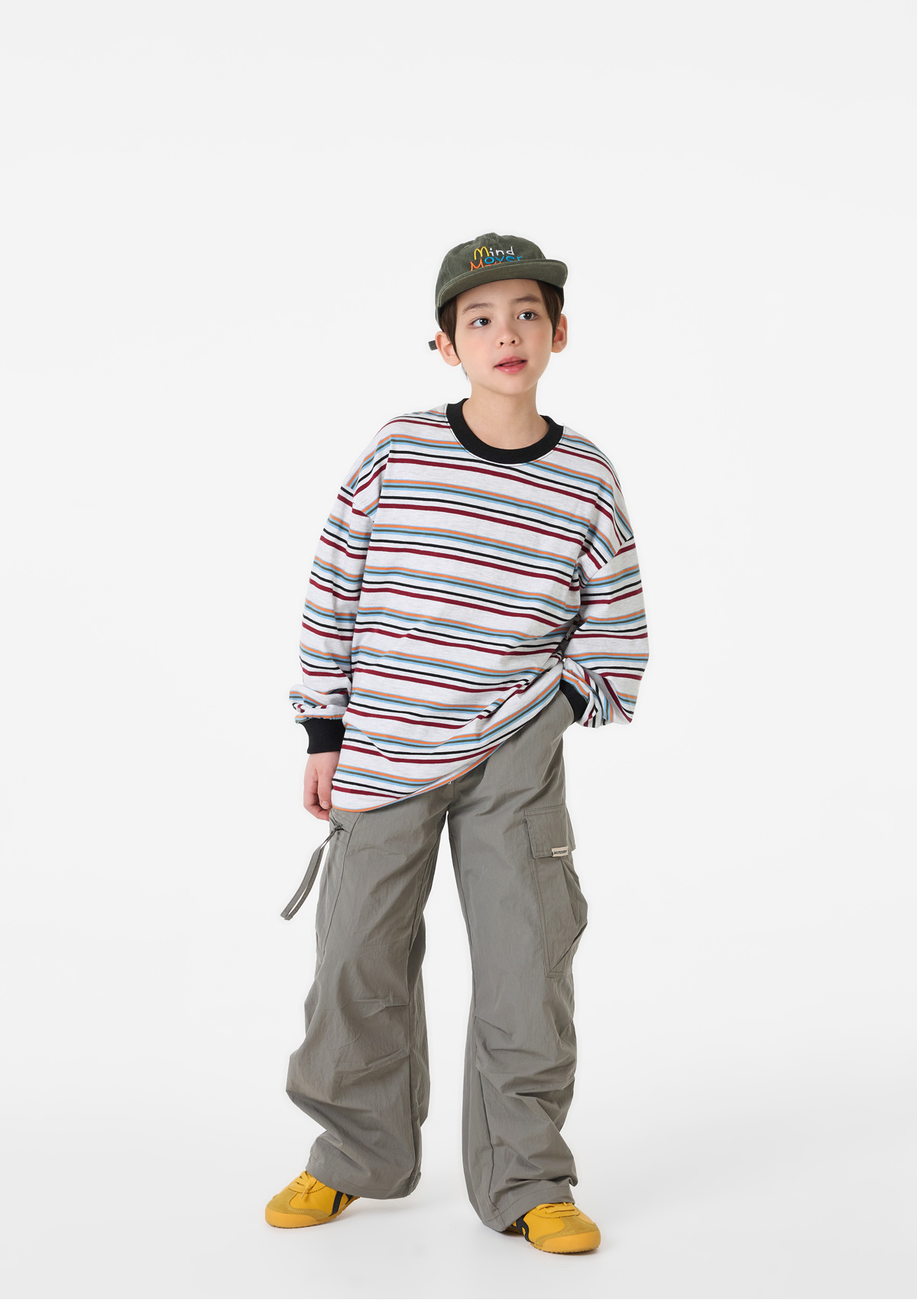 잔잔한 멀티 스트라이프 패턴이 돋보이는 티셔츠예요.