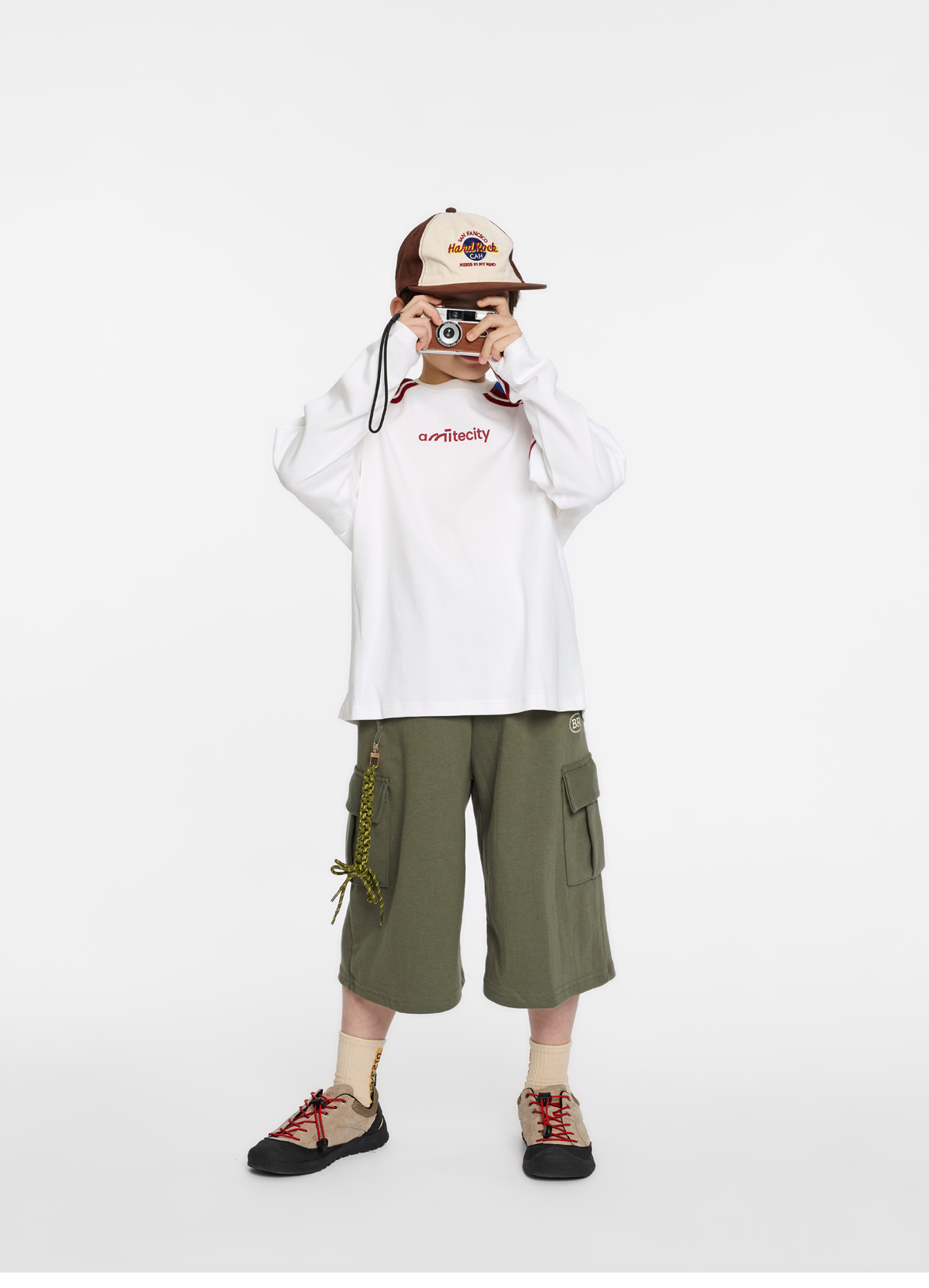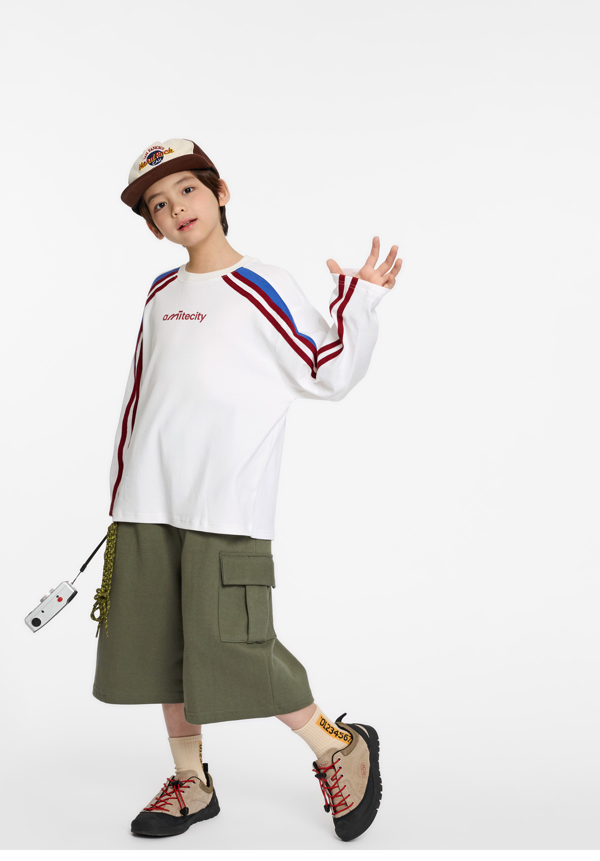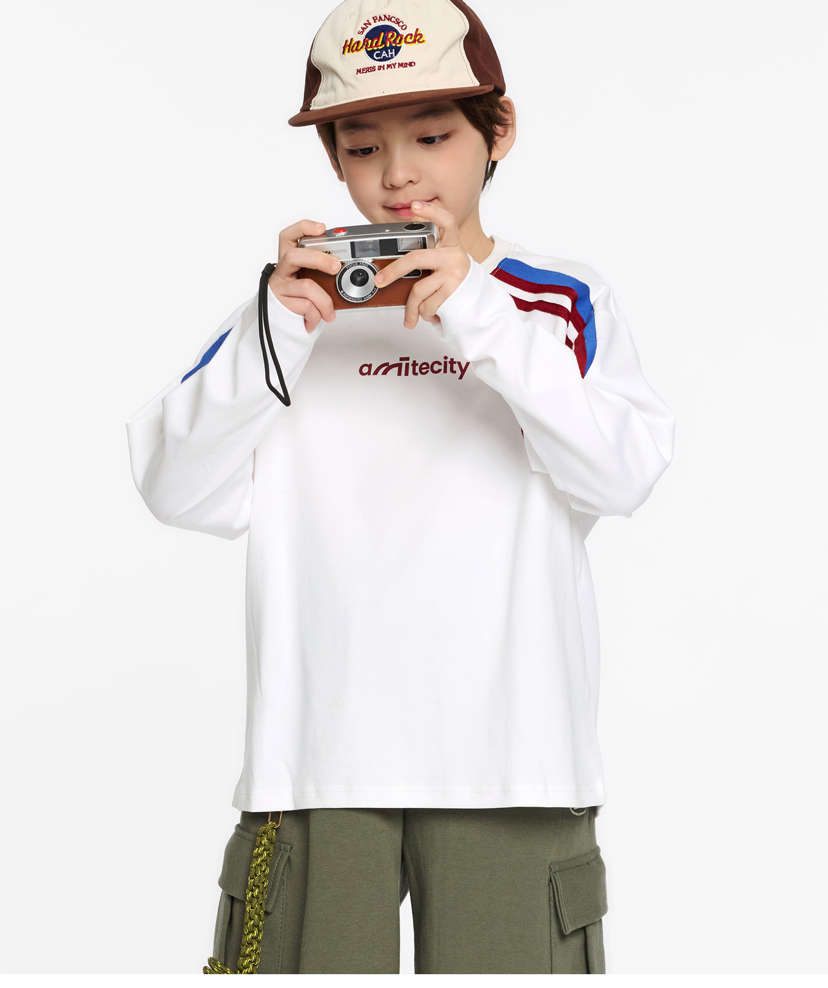 깔끔한 아이보리 바탕에 소매 라인 배색이 포인트가 되는 티셔츠예요.