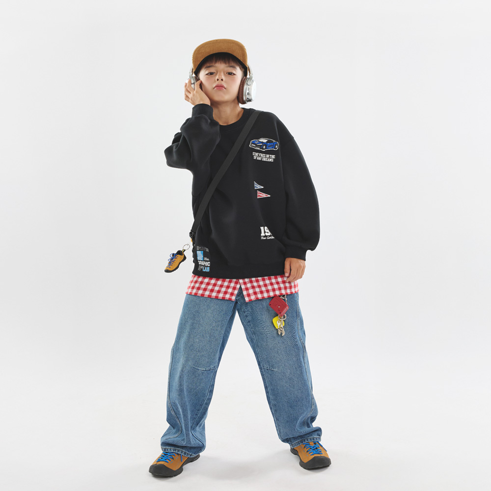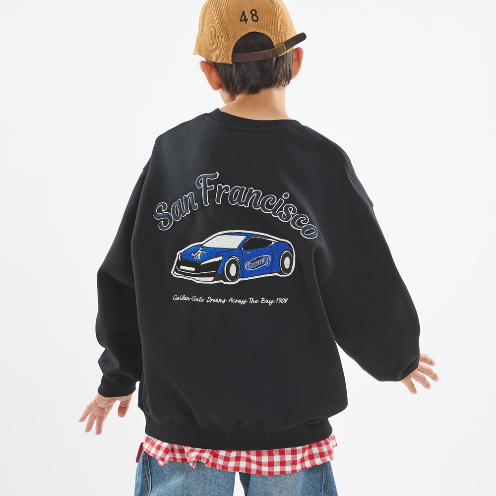 캐주얼한 무드의 블랙 컬러 맨투맨이에요