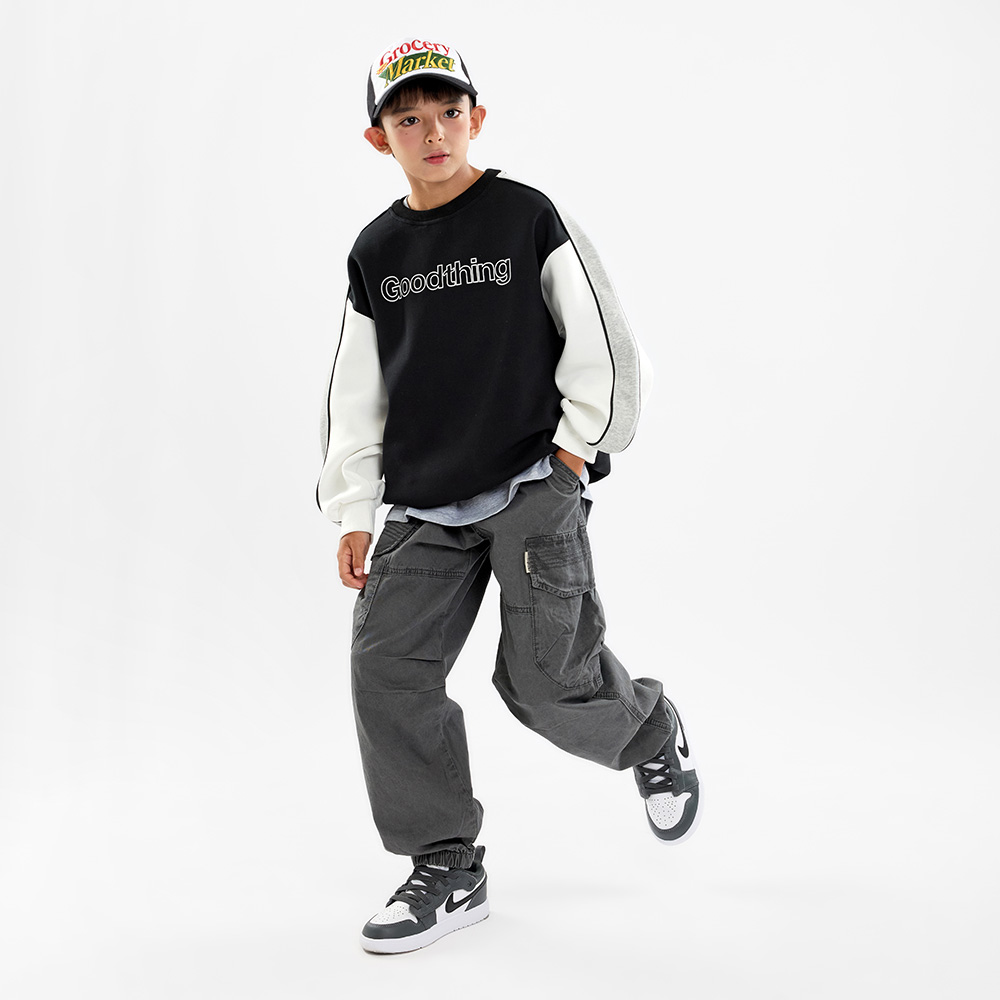 넉넉한 핏과 밑단 밴딩으로 편안하게 착용되며,