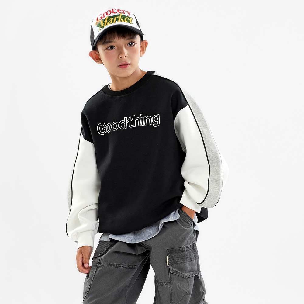 배색 포인트로 캐주얼한 무드를 더해주는 맨투맨이에요.