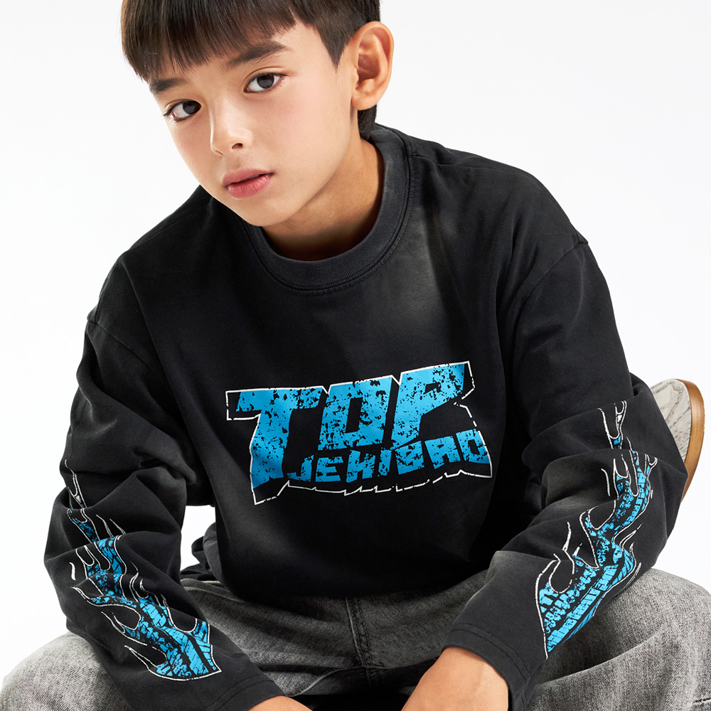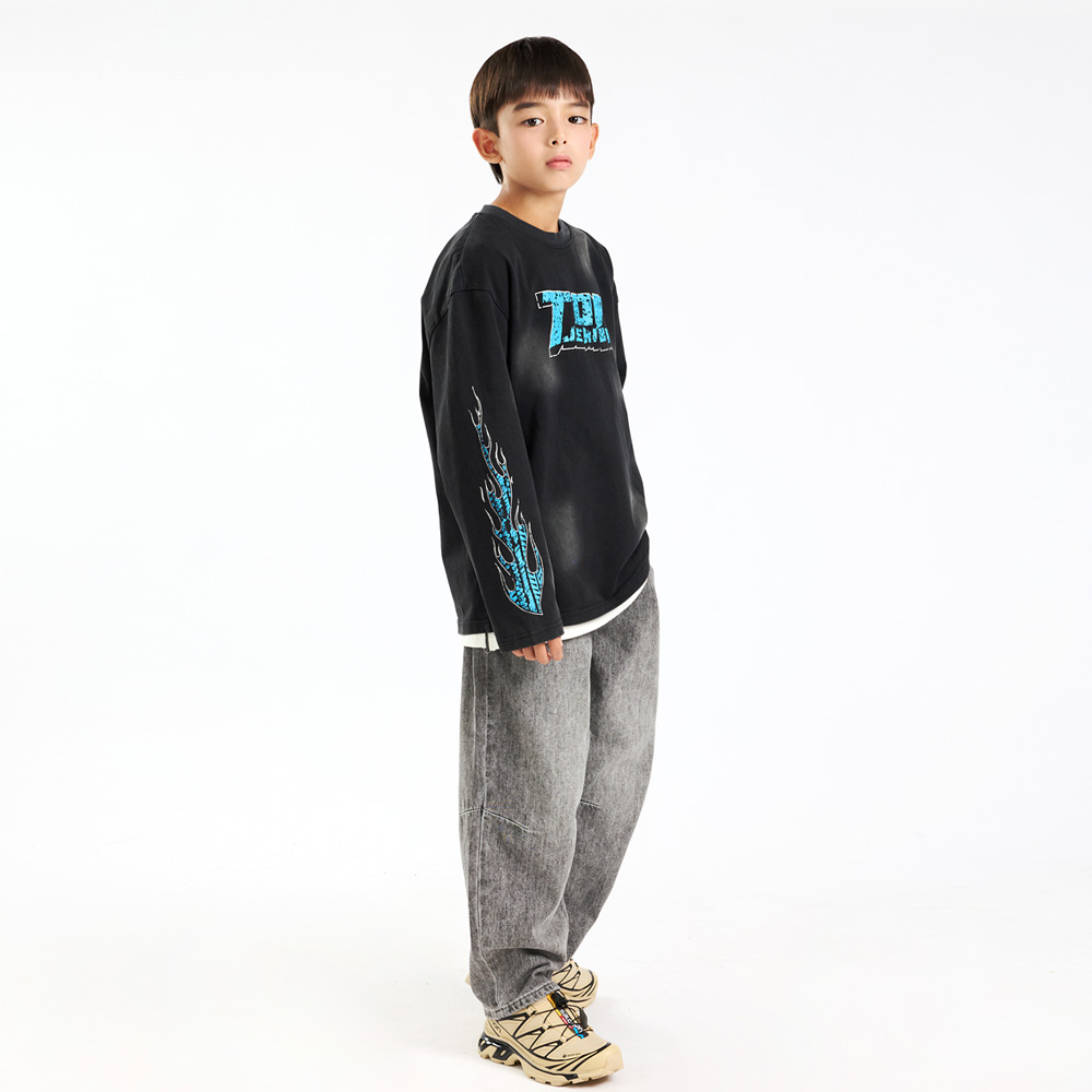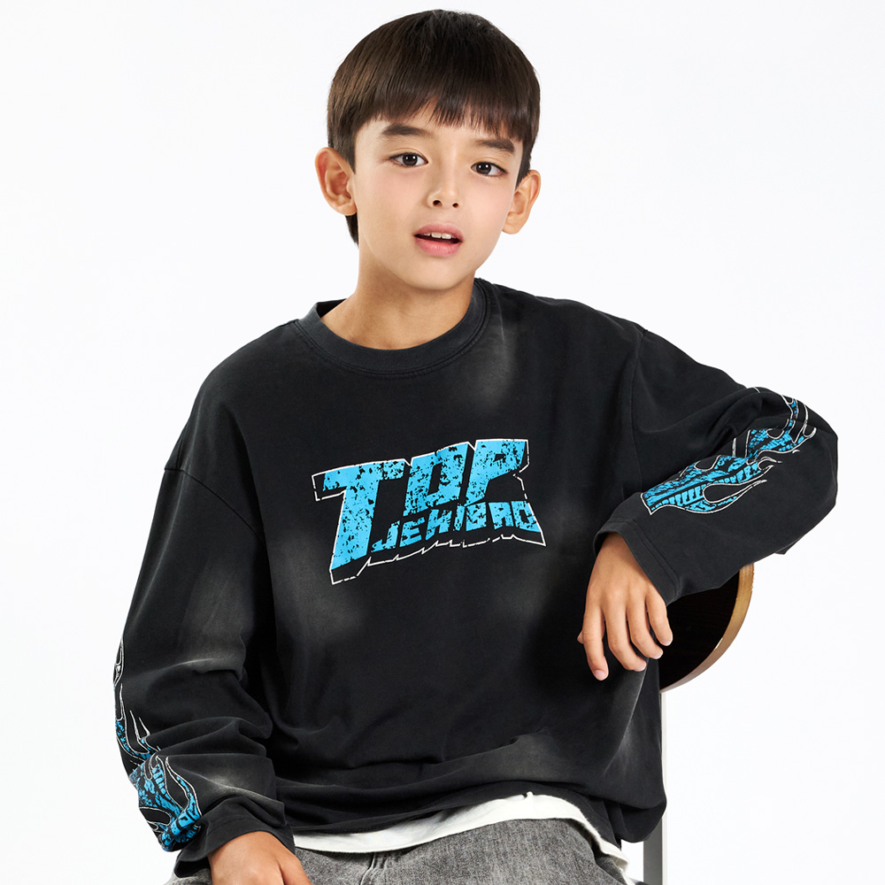 선명하고 빈티지한 분위기의 나염이 돋보이는 티셔츠예요