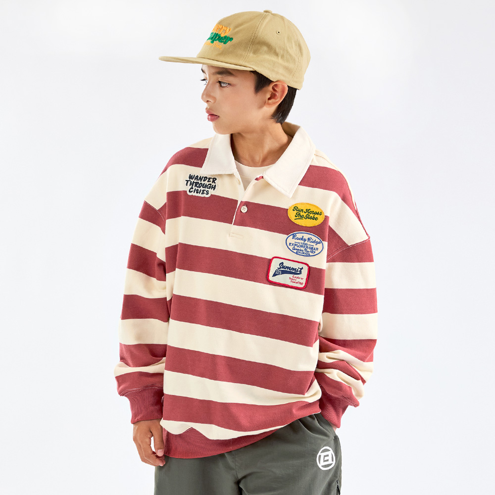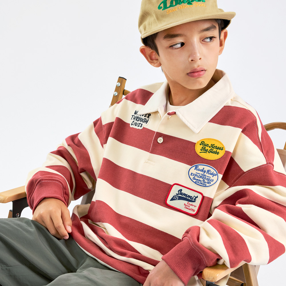 넉넉한 핏과 선명한 스트라이프 배색이 매력적인 맨투맨이에요.