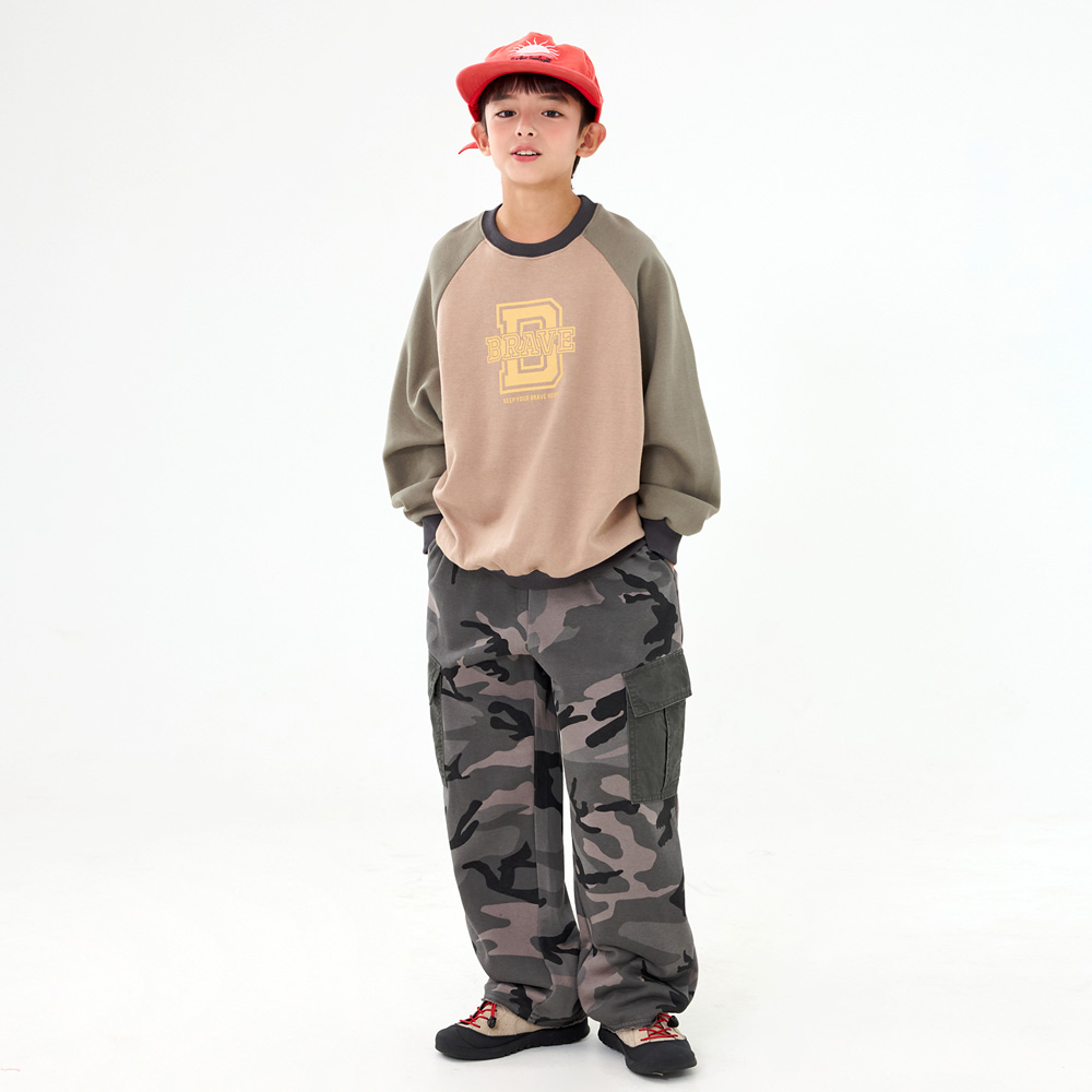 캐쥬얼한 카모플라쥬 패턴에 양쪽에 큼직한 배색포켓을 더해준 카고팬츠예요