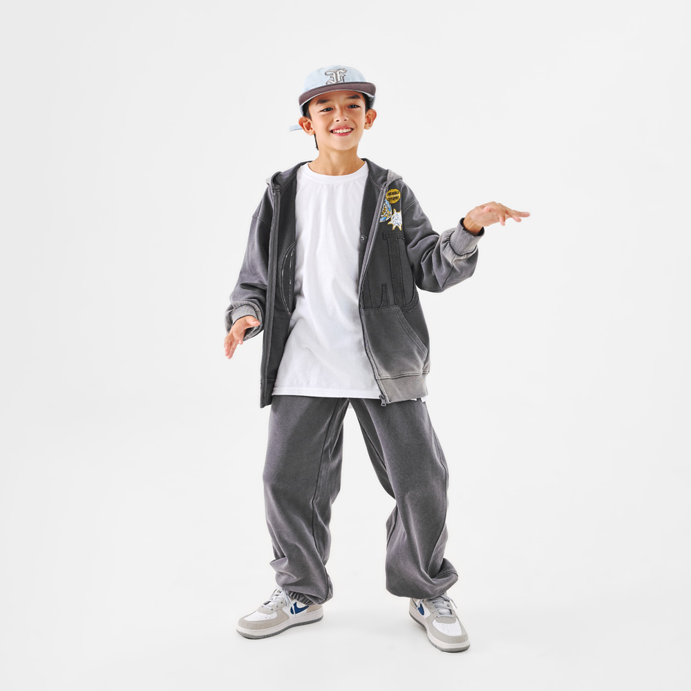 피그먼트 워싱으로 빈티지한 무드가 돋보이는 집업 상하세트예요.