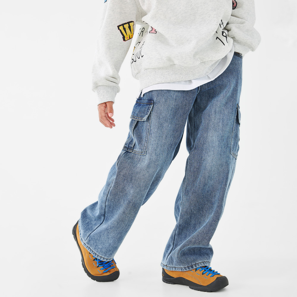 캐주얼한 무드의 카고 데님 팬츠예요.