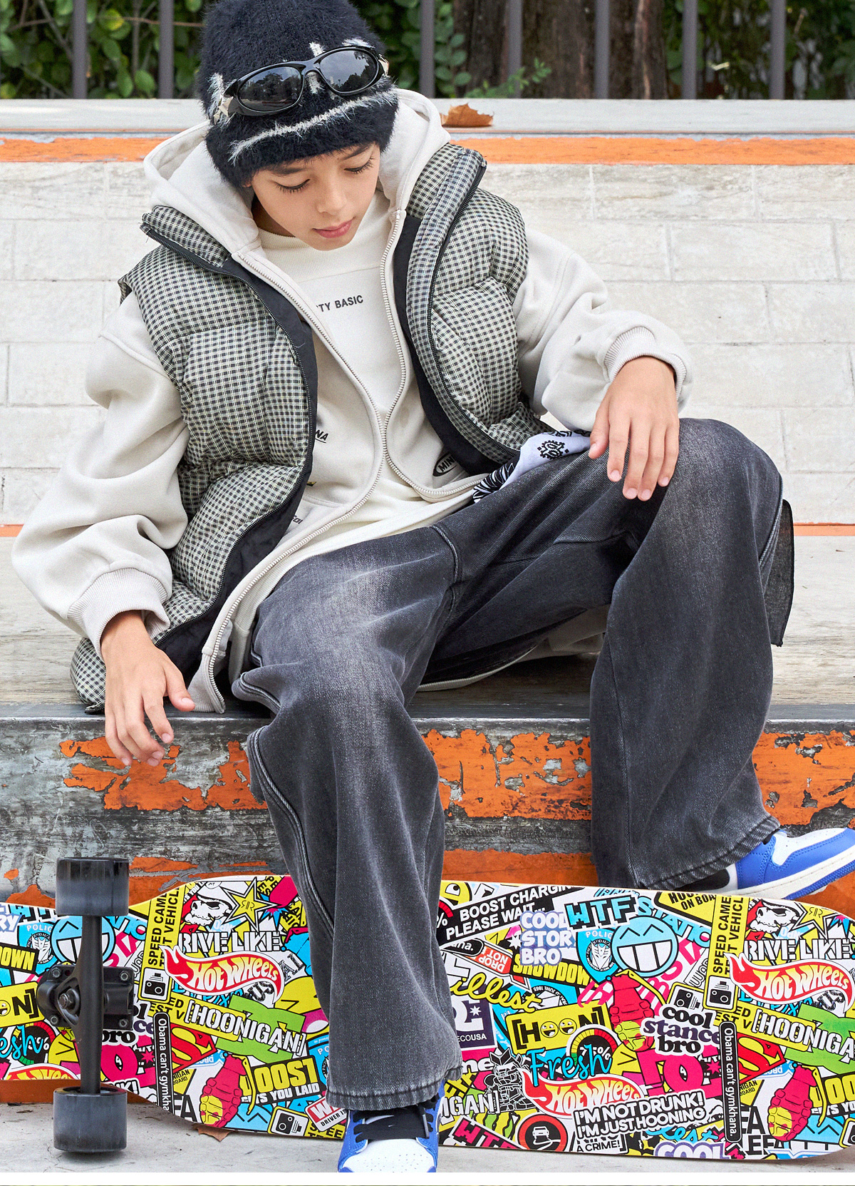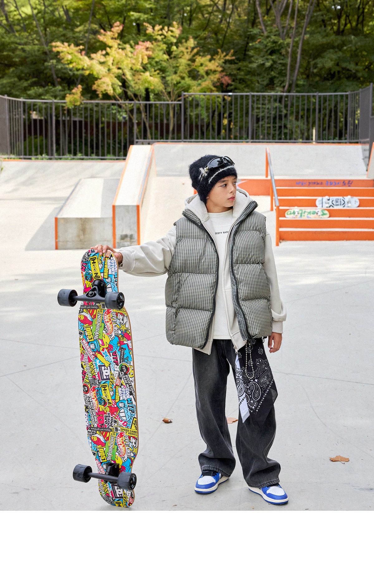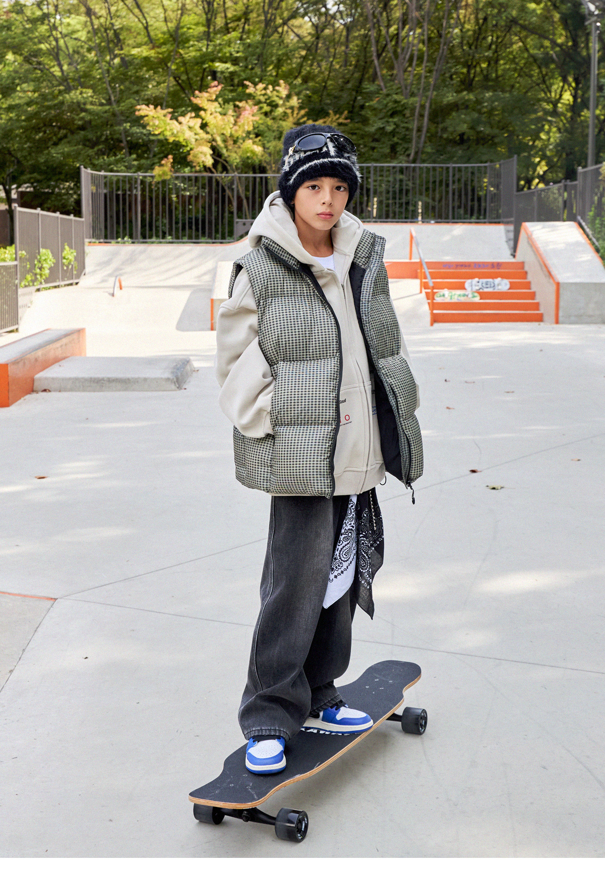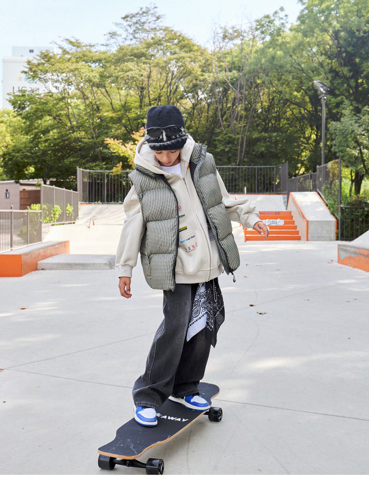 트렌디한 하운드투스 체크 패턴의 리버시블 패딩 조끼예요.