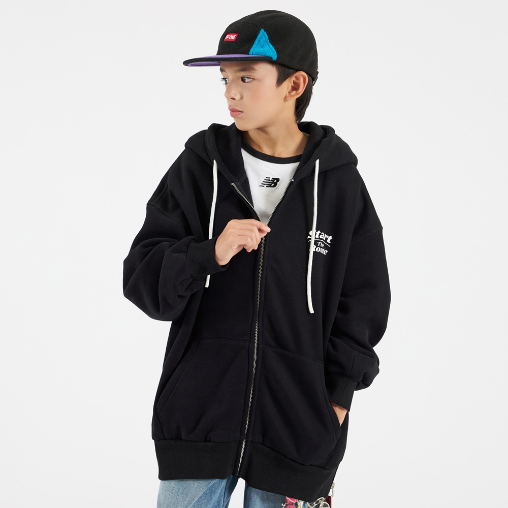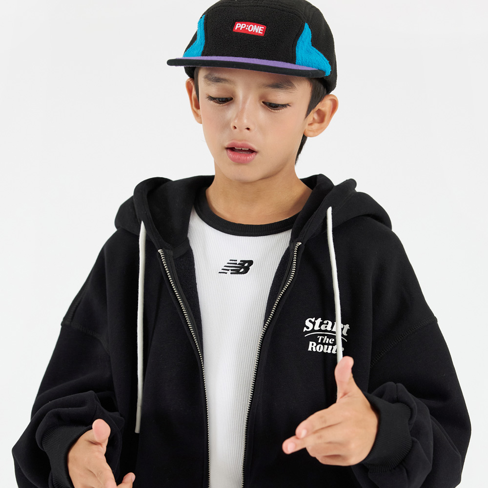 뒷면 큼직한 영문 나염과 사이트 지퍼 디테일이 돋보이는 기모 후드 집업