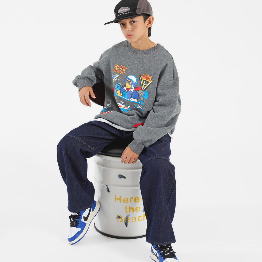 프론트에 위트 있는 프린팅이 돋보이는 기모 맨투맨이에요.