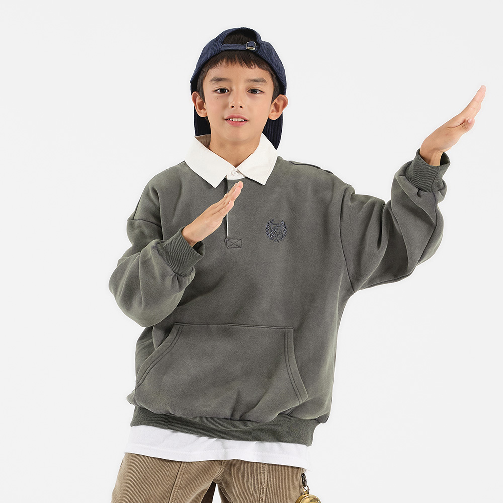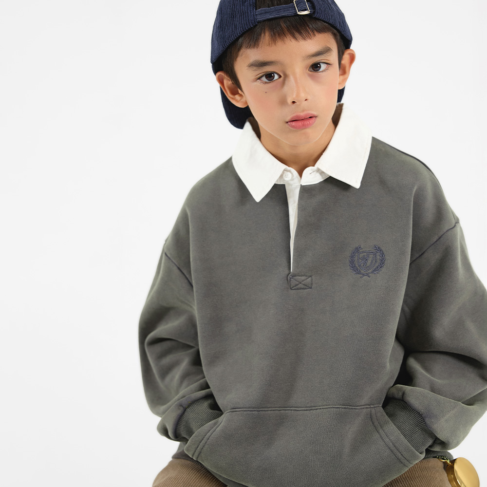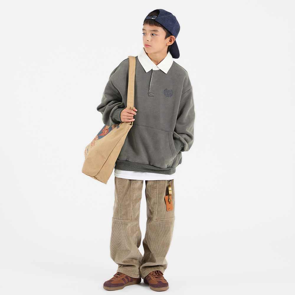 드라이한 차콜 컬러가 매력적인 카라 맨투맨이에요.