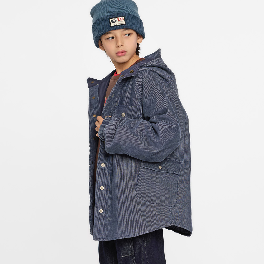 빈티지한 무드가 매력적인 코듀로이 후드 아우터예요.