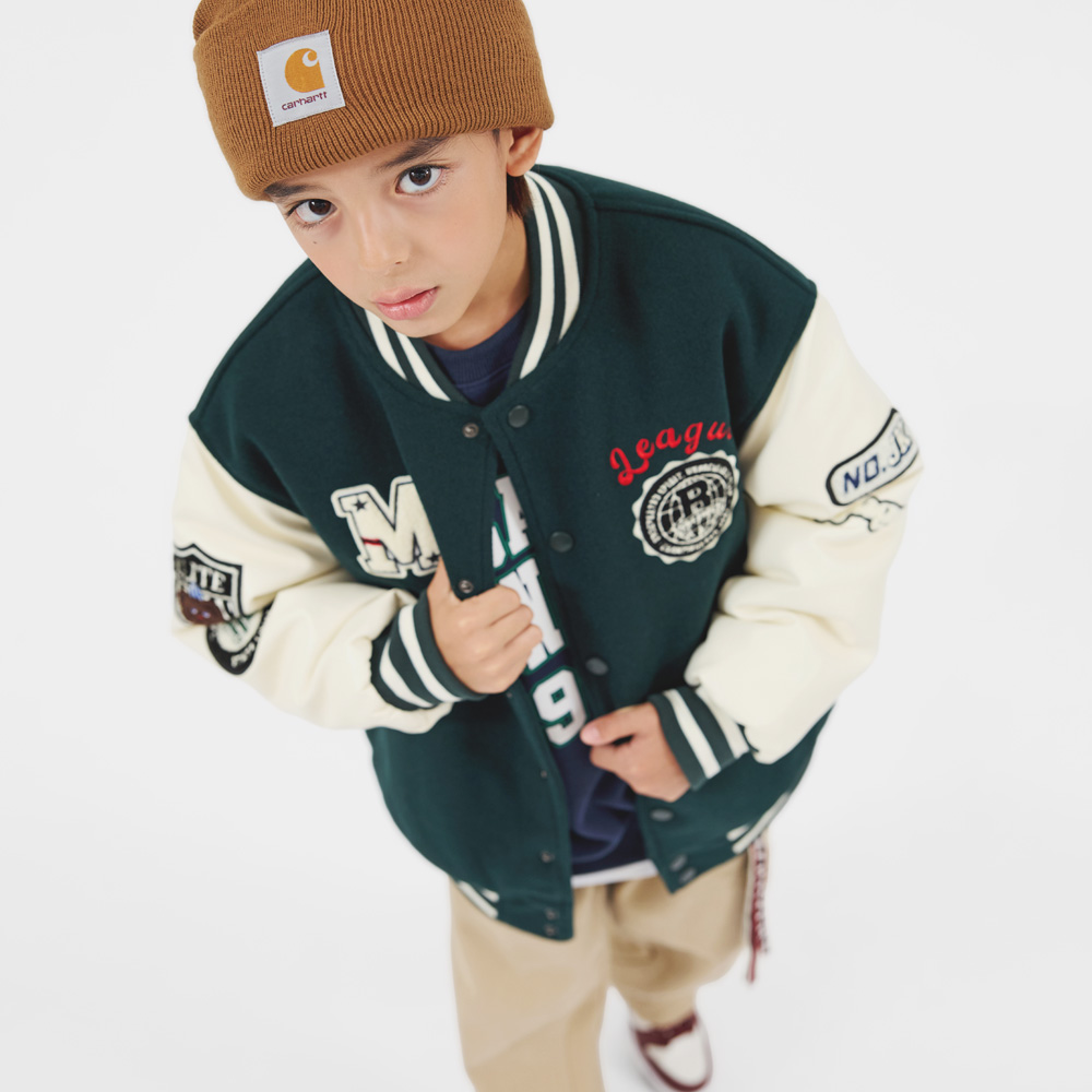 프런트와 소매에 더해진 입체 자수 패치로 유니크한 포인트를 더했어요.