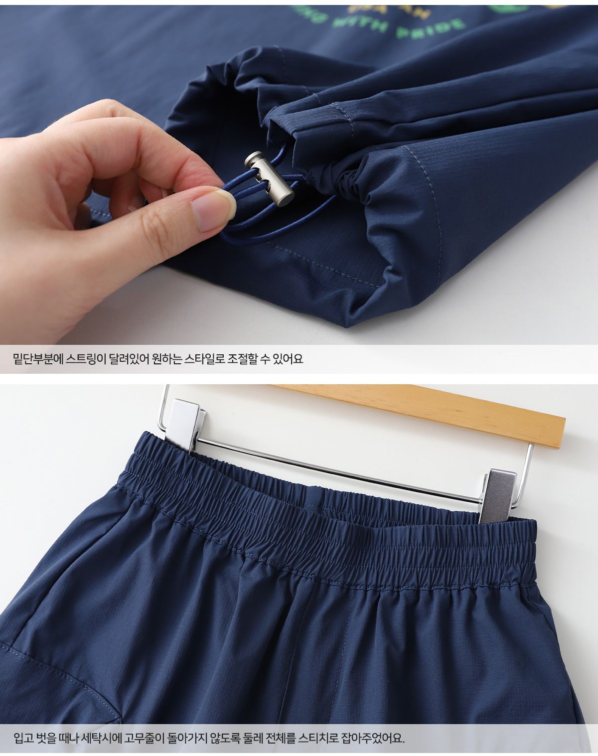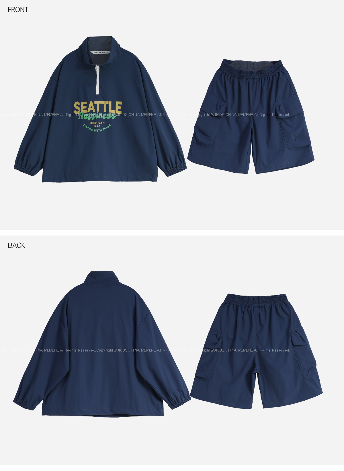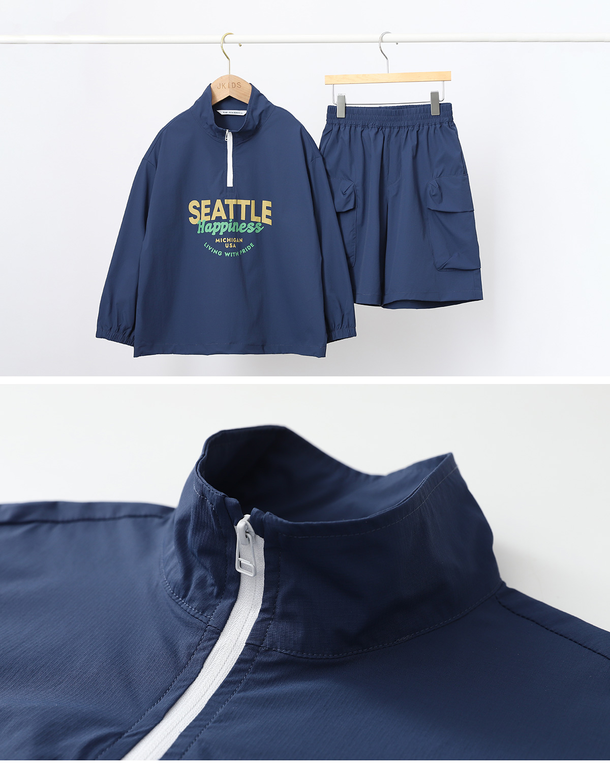 딥블루 컬러가 산뜻한 우븐 반집업 상하세트예요.