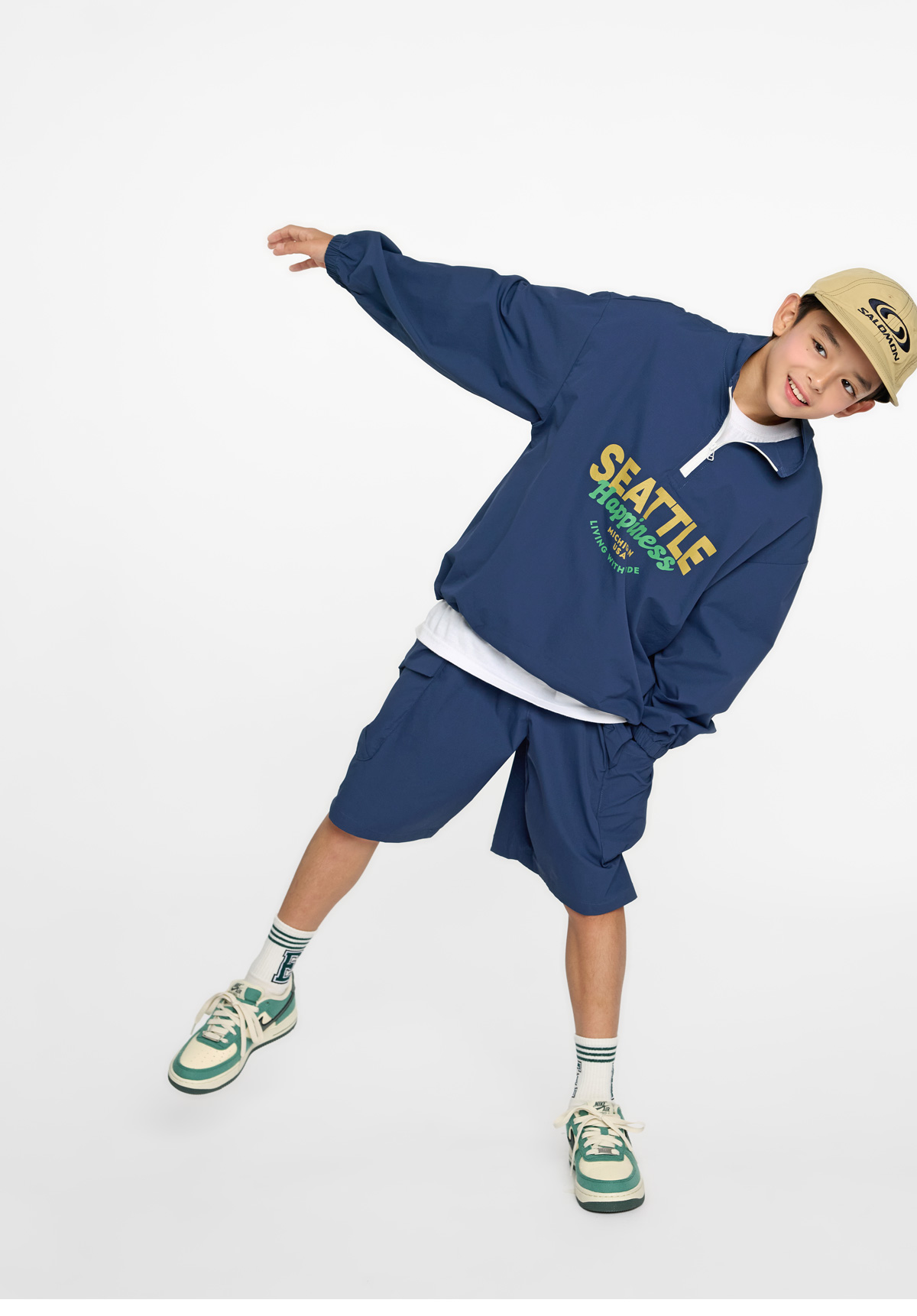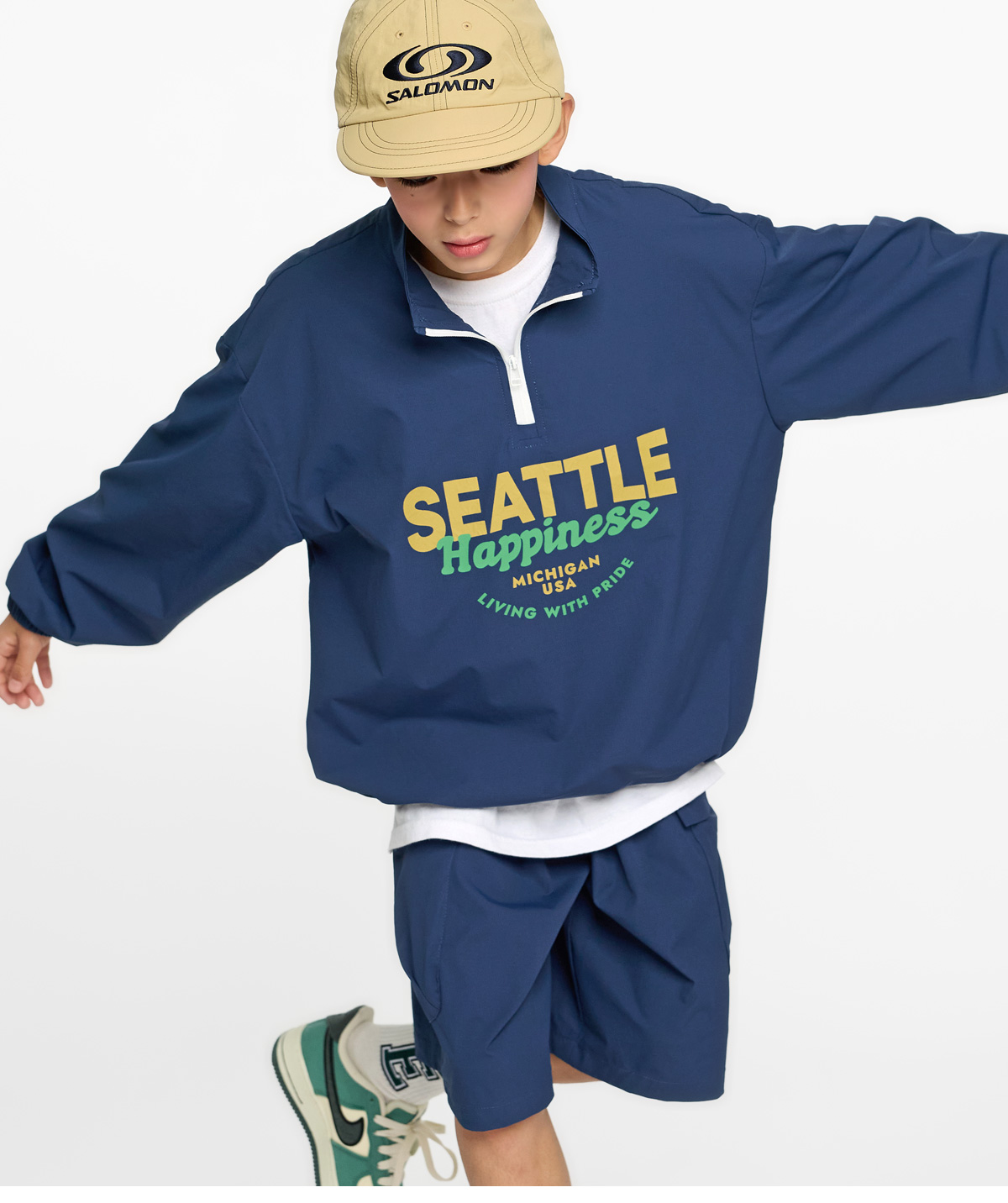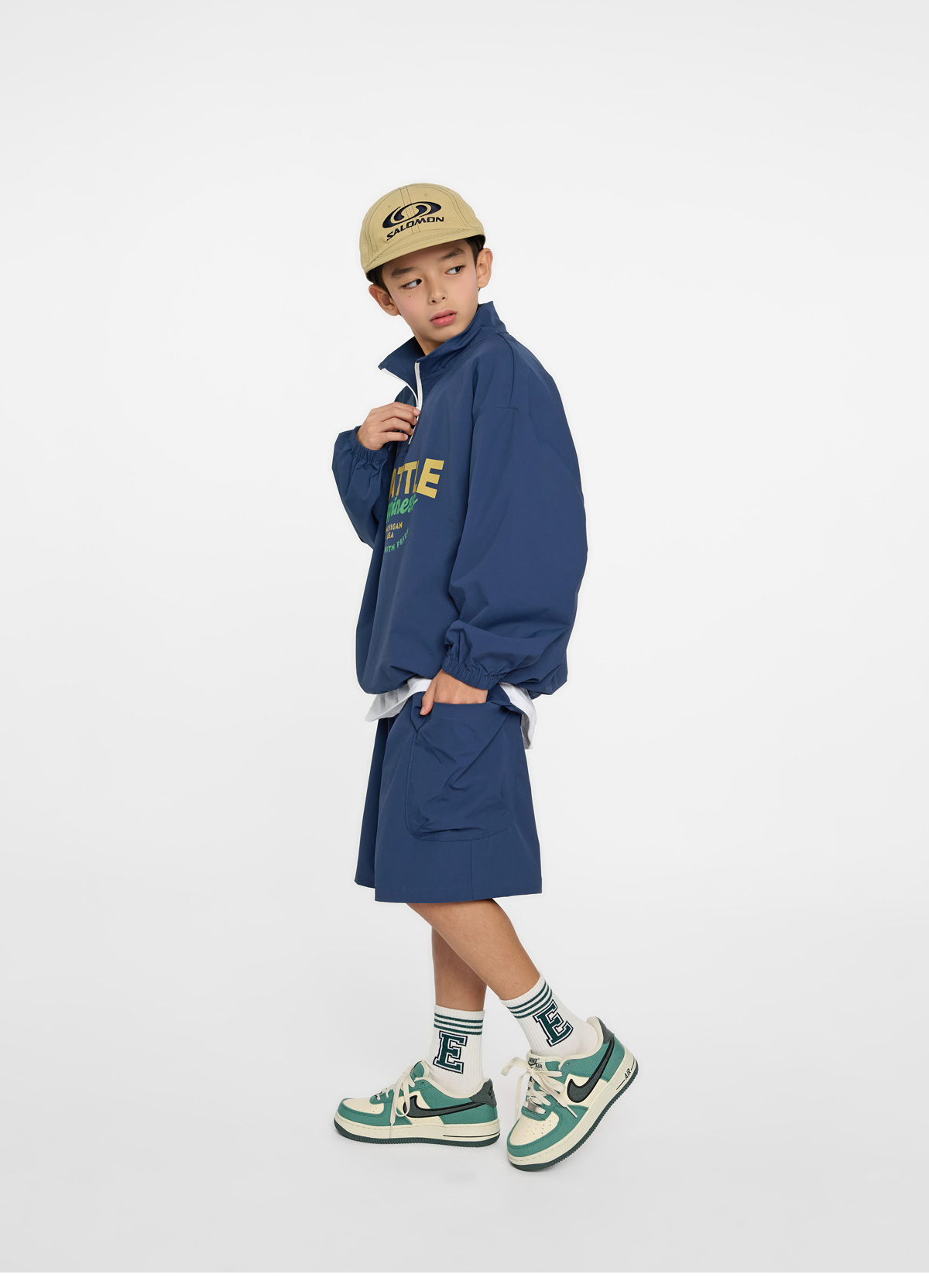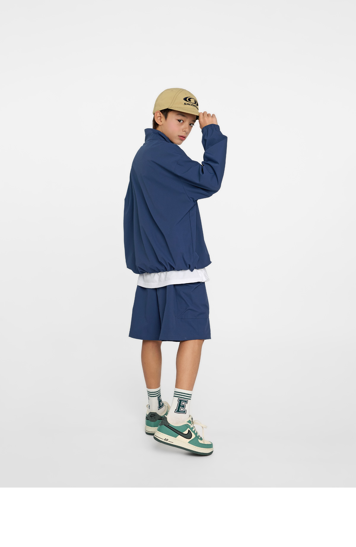 딥블루 컬러가 산뜻한 우븐 반집업 상하세트예요.