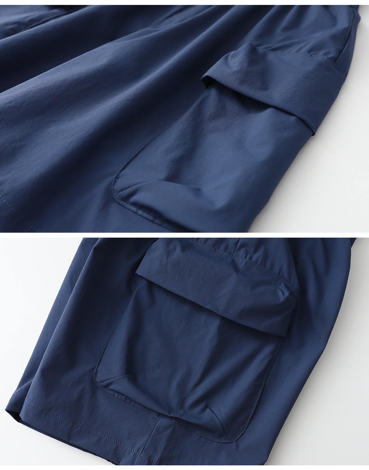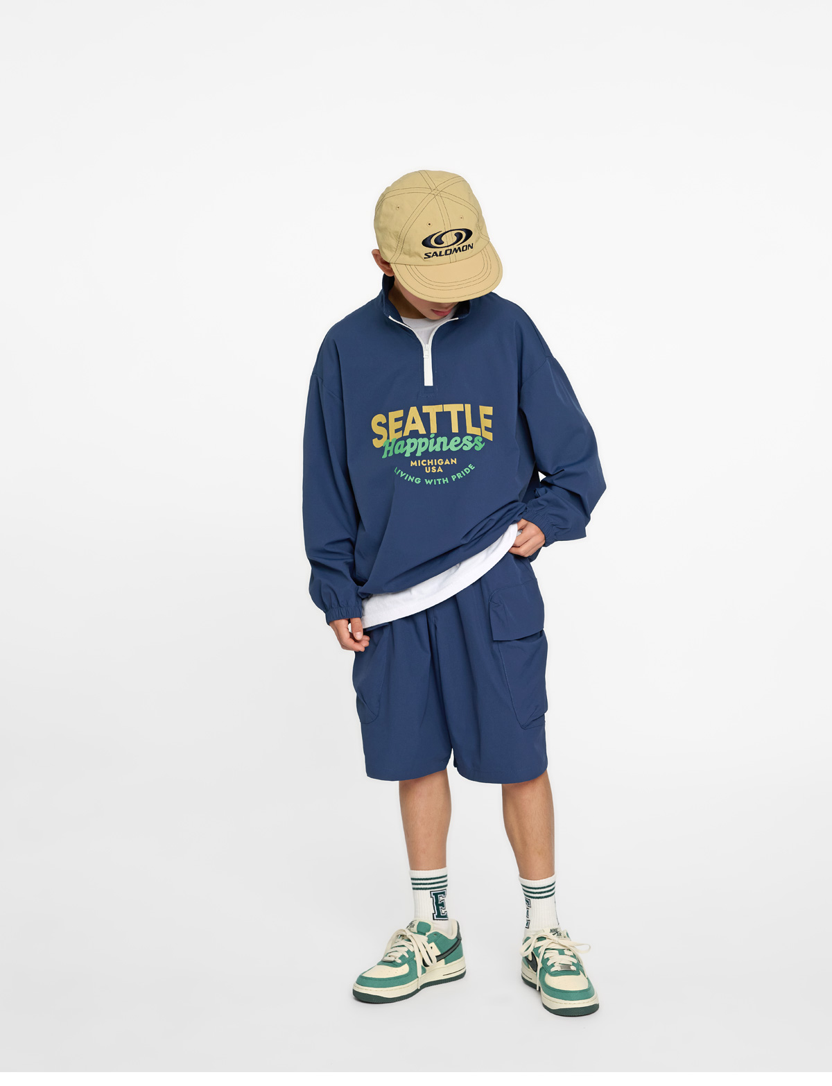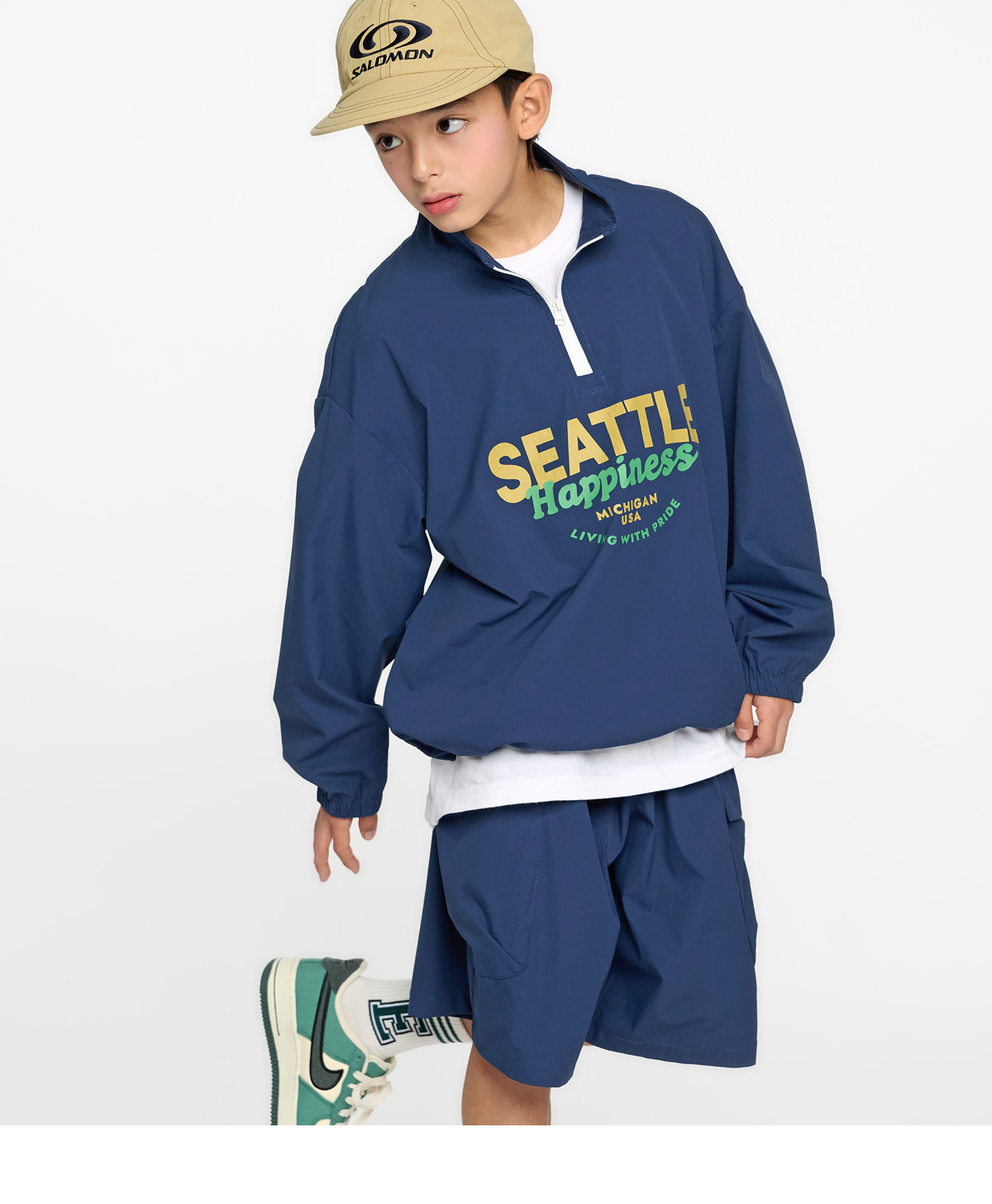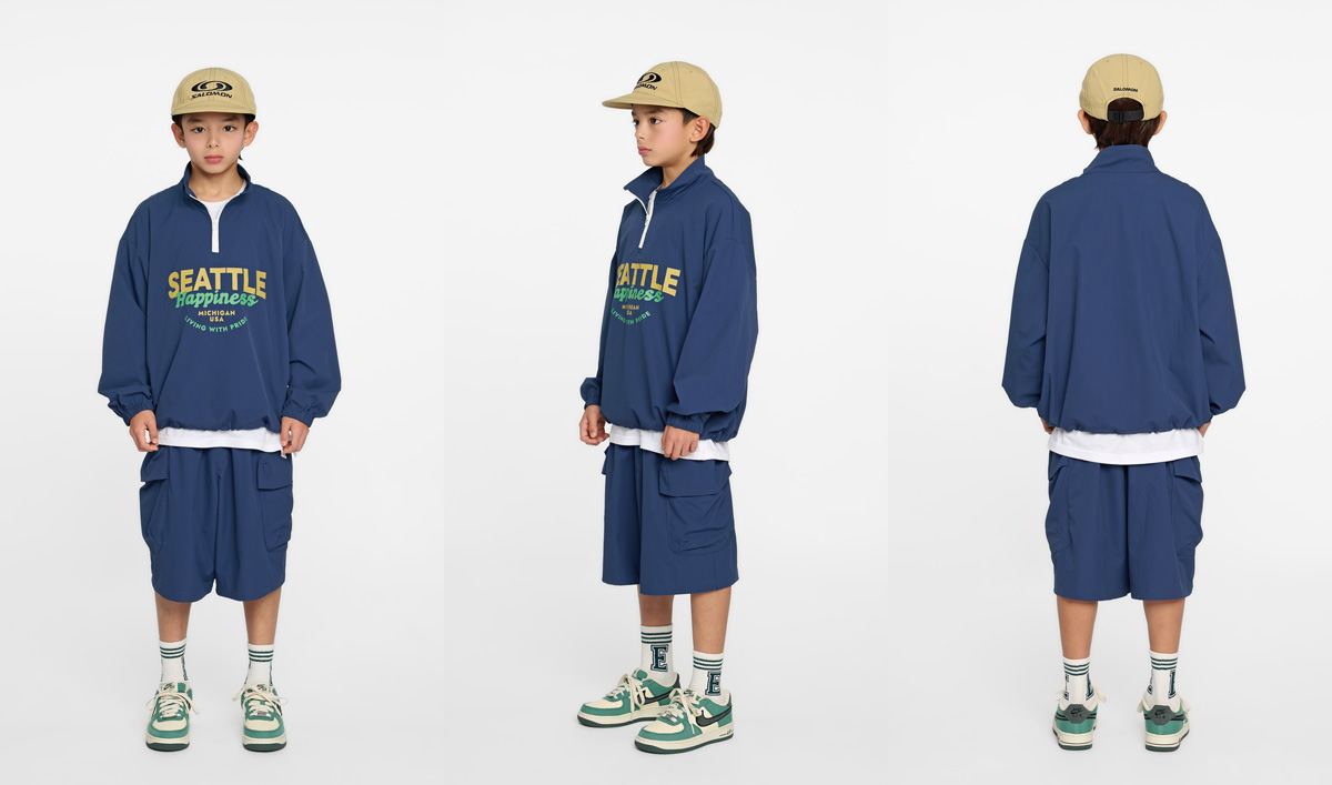 팬츠는 넉넉한 카고 포켓 디테일로 실용적이며,