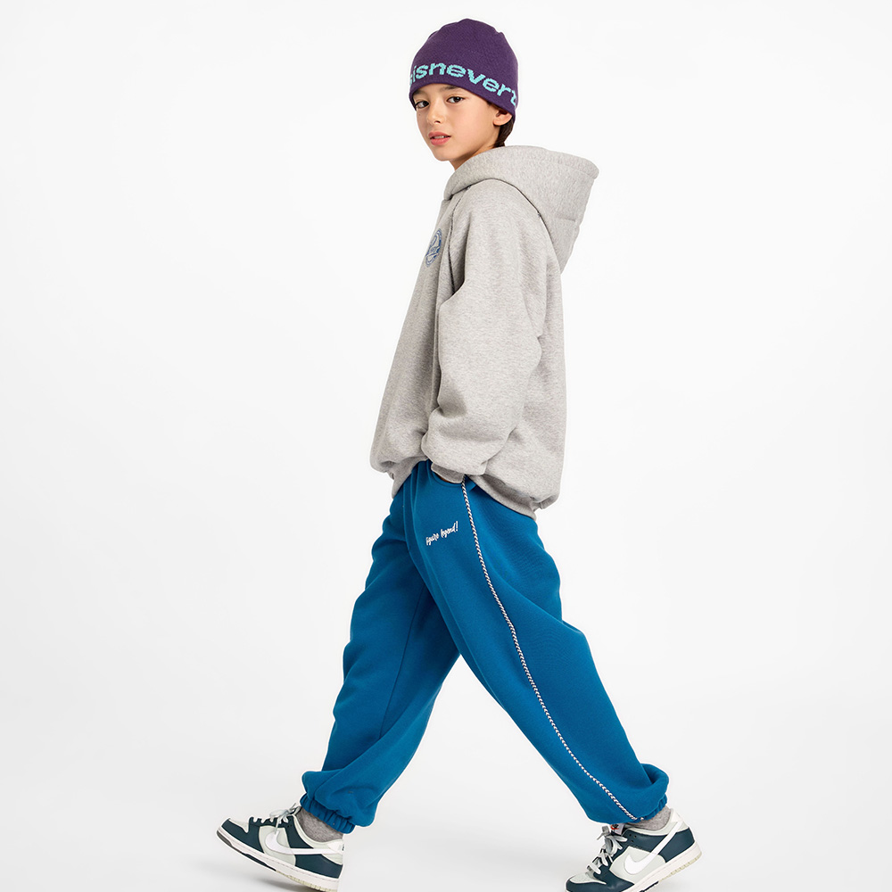 딥블루 컬러가 돋보이는 기모 안감 조거팬츠예요.