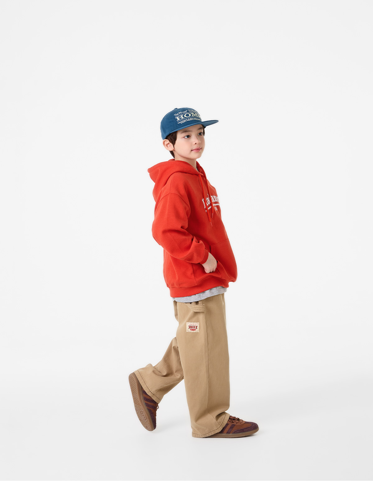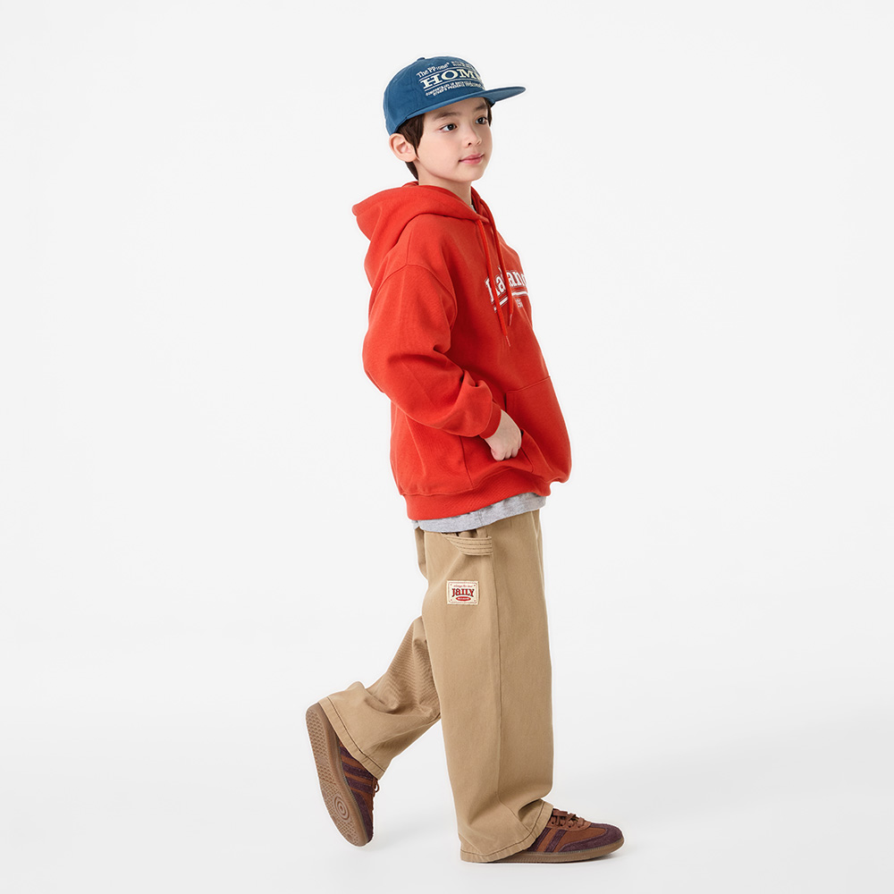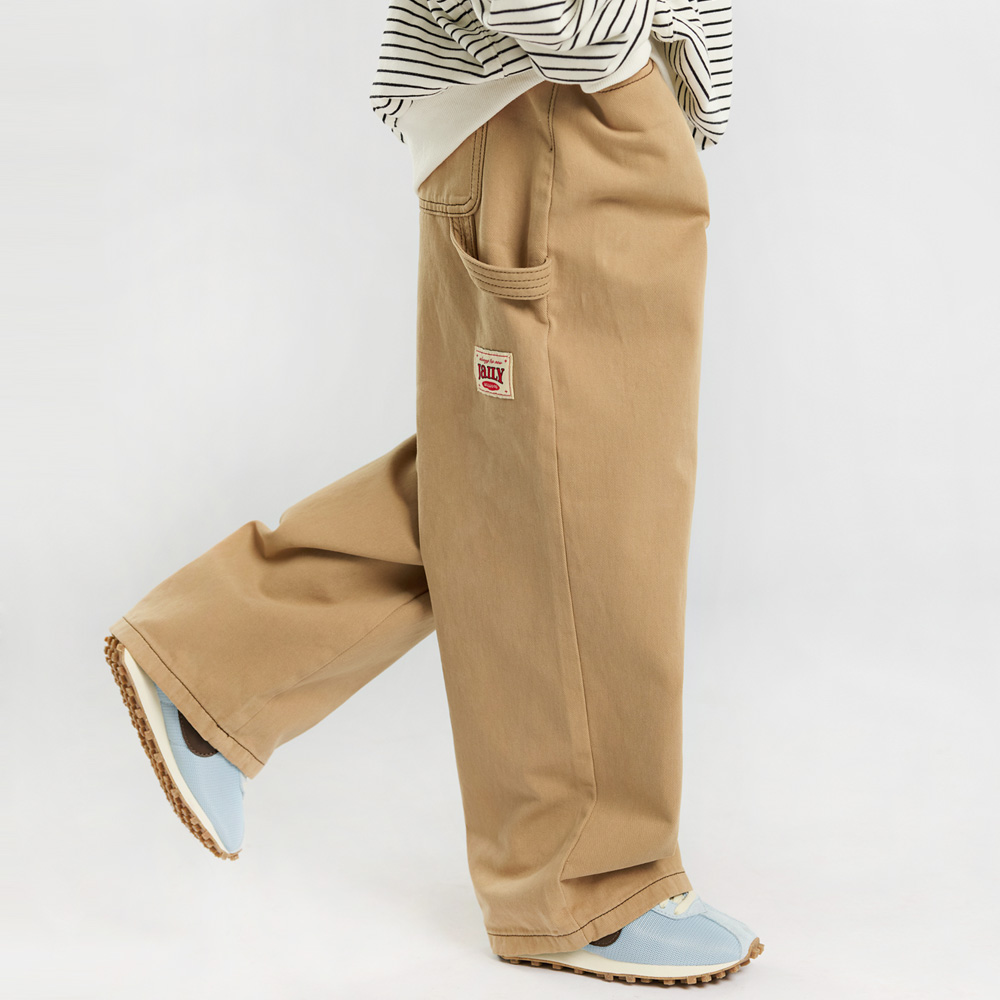 영문 라벨 패치와 해머 루프 디테일이 돋보이는 코튼 팬츠예요