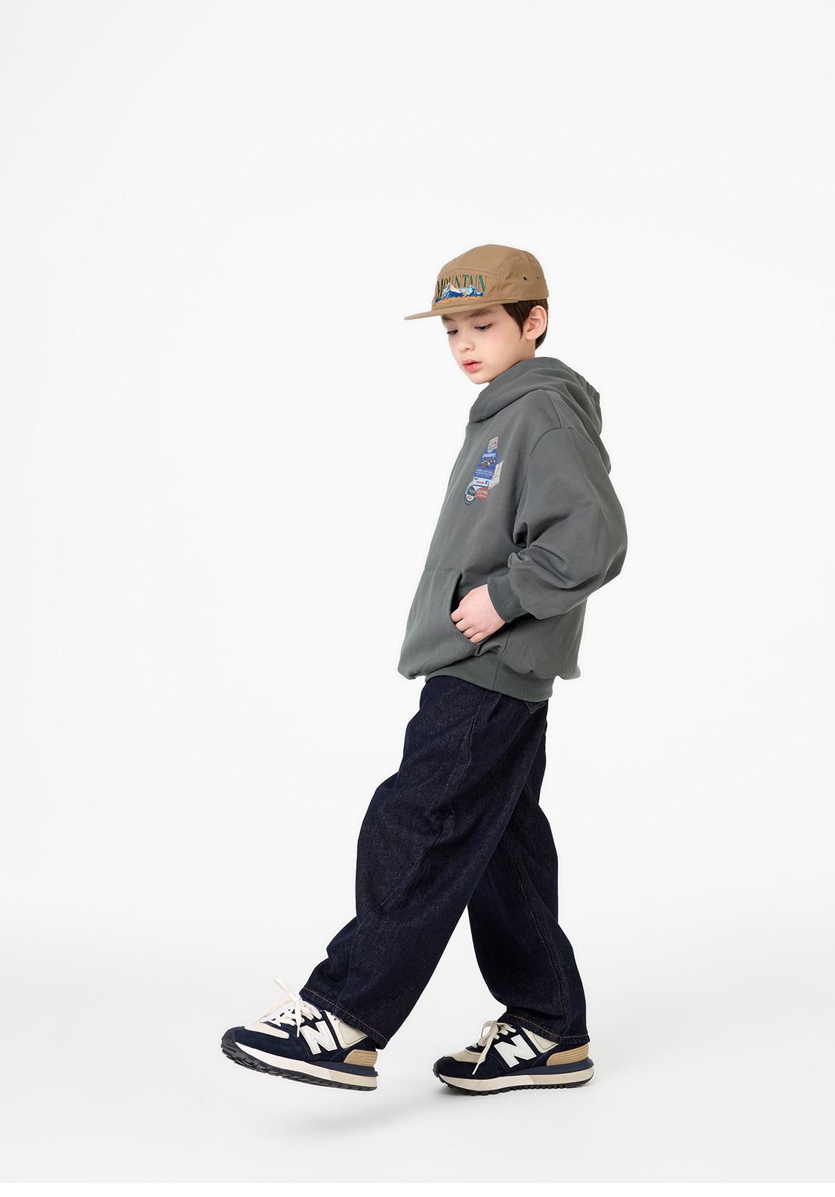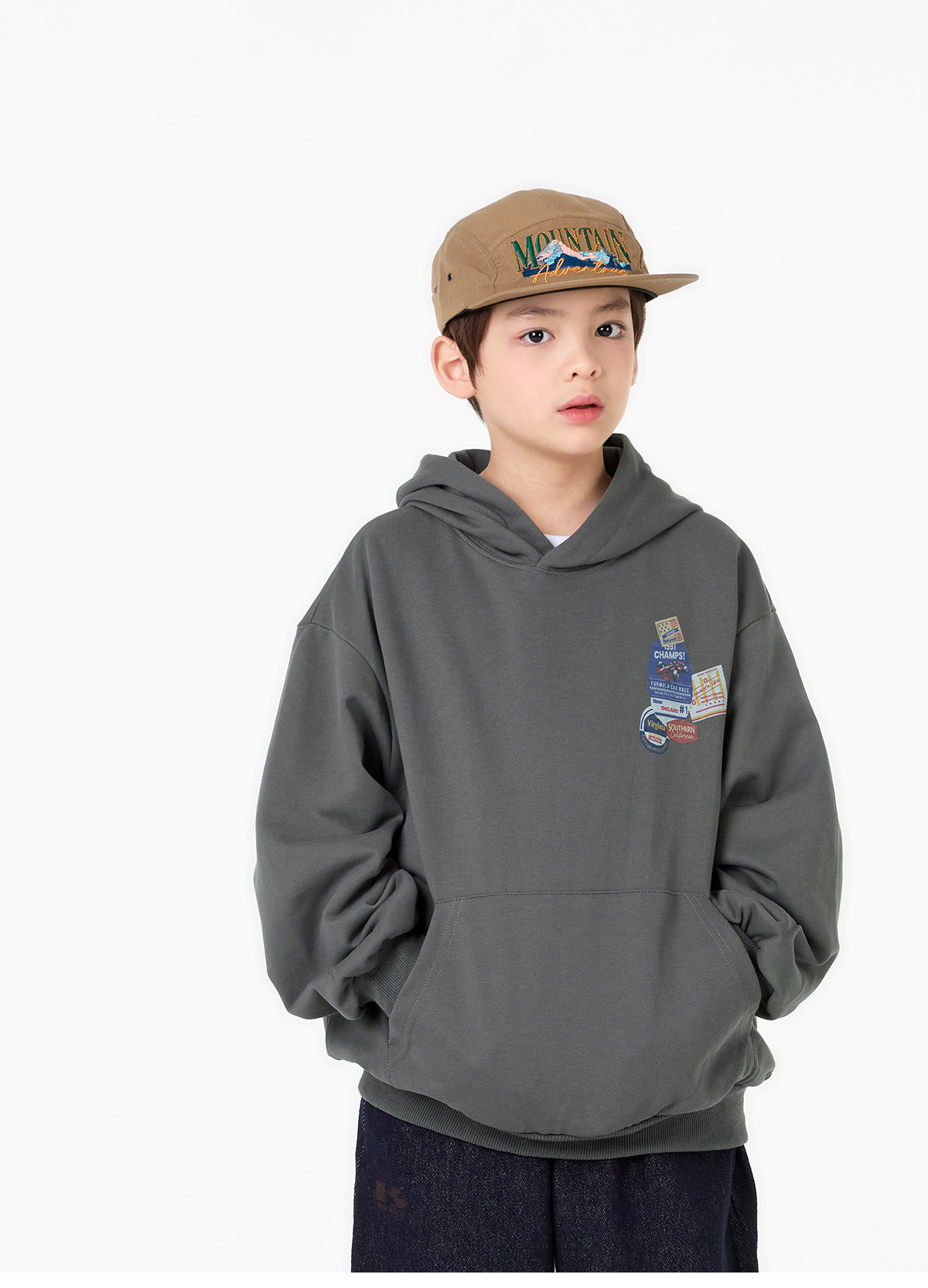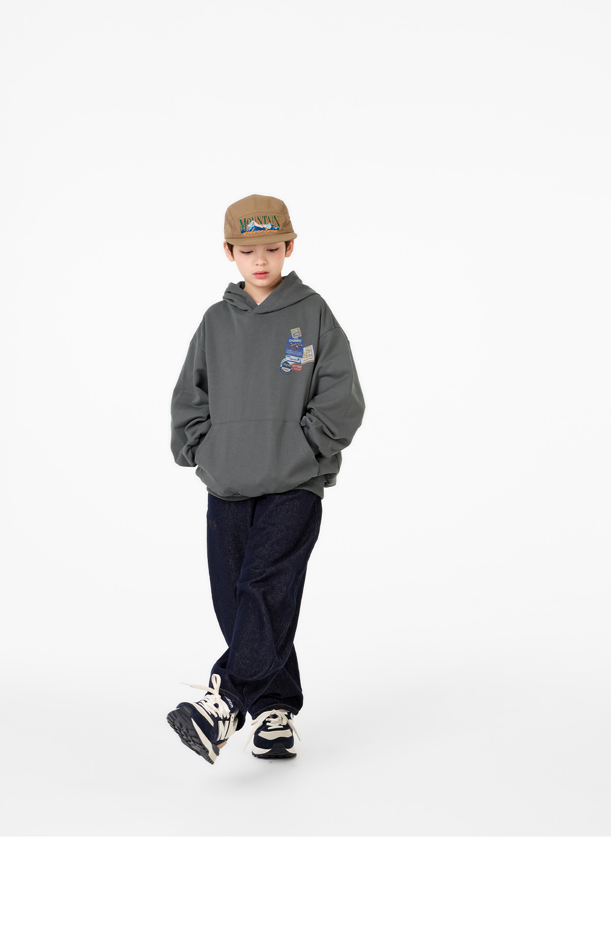 다크한 컬러감에 포켓부분 나염이 돋보이는 데님 팬츠예요