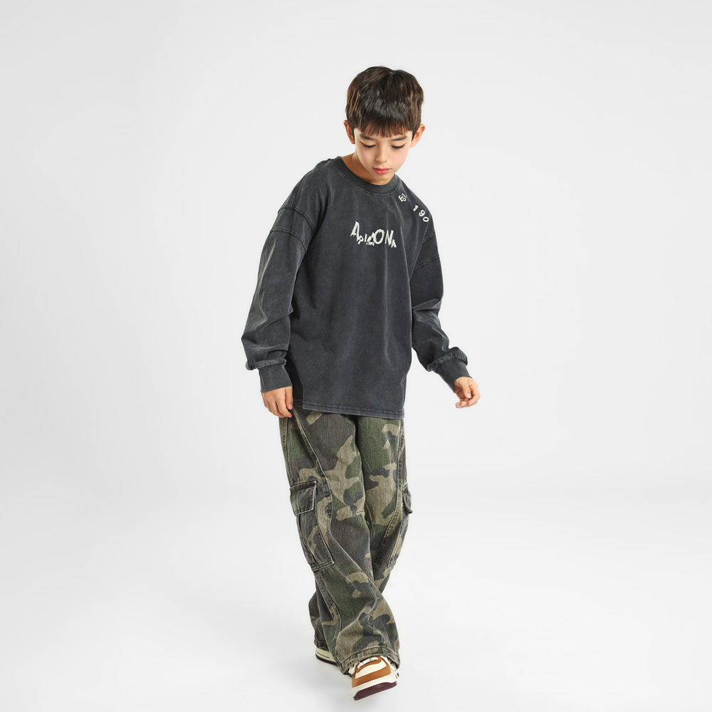 빈티지한 피그먼트 워싱으로 자연스러운 차콜 톤이 멋스러운 티셔츠예요.