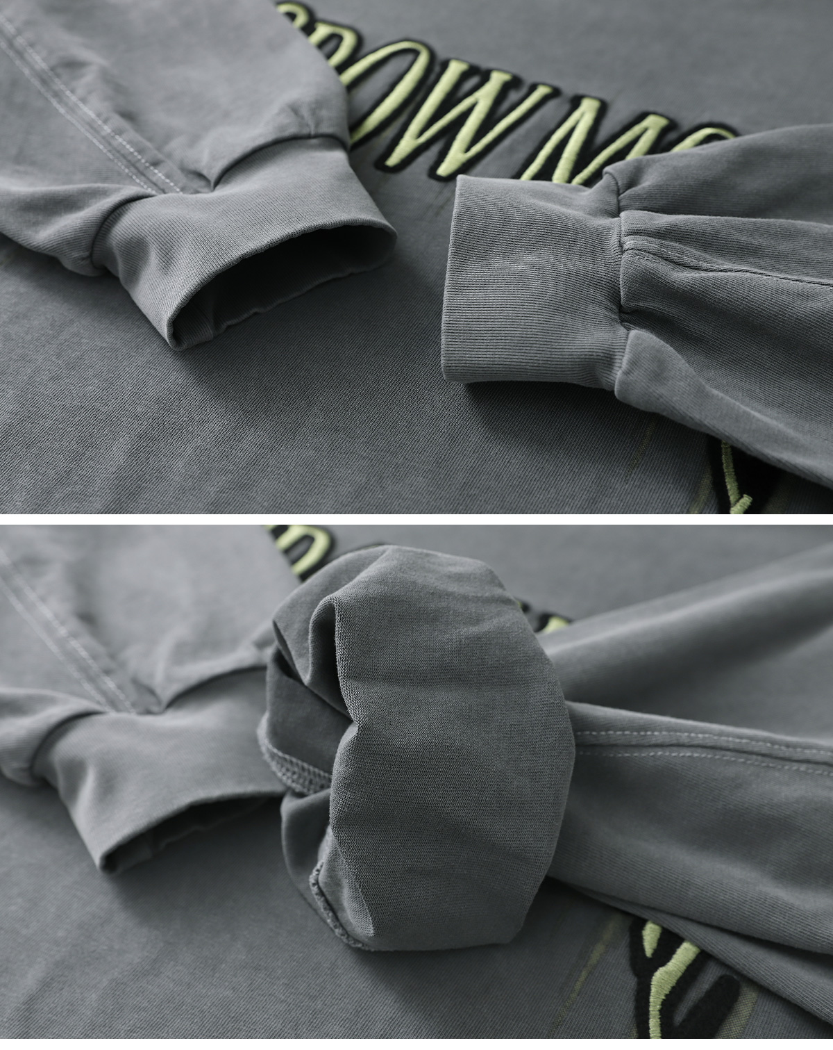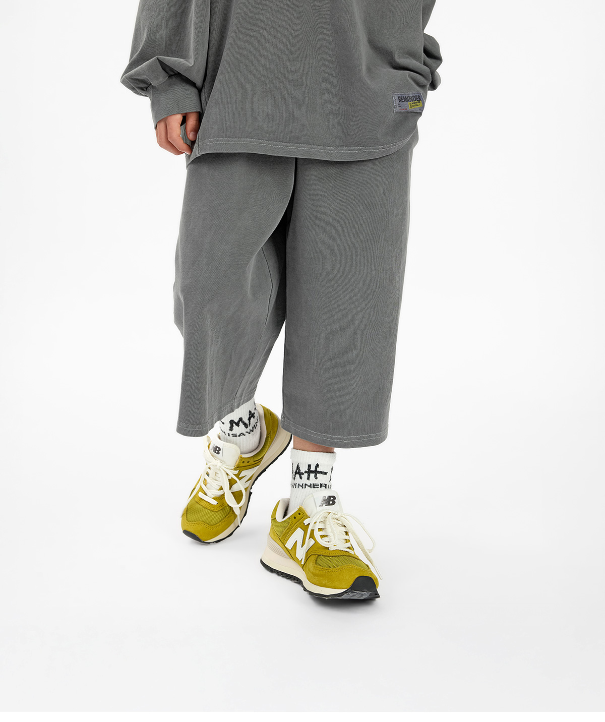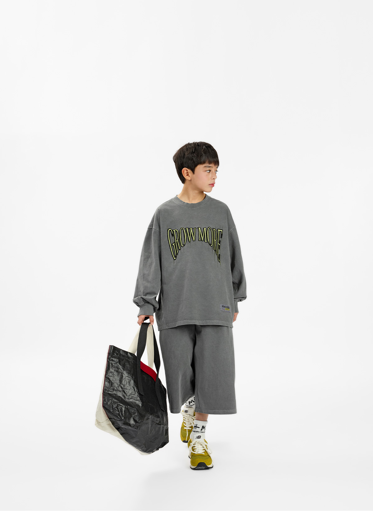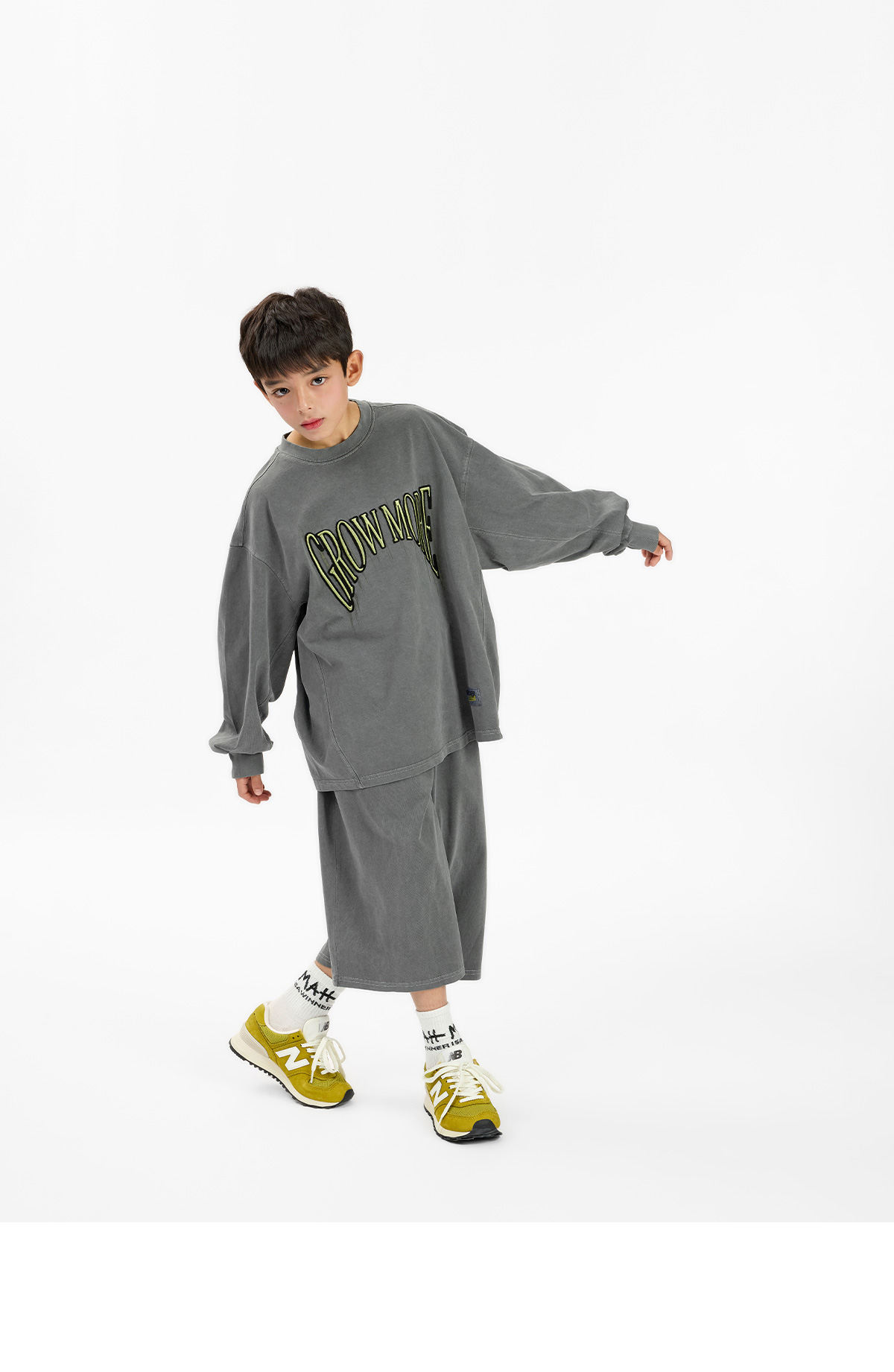 빈티지한 피그먼트 워싱이 매력적인 긴소매 티셔츠와 버뮤다팬츠 구성의 상하 셋업이에요.