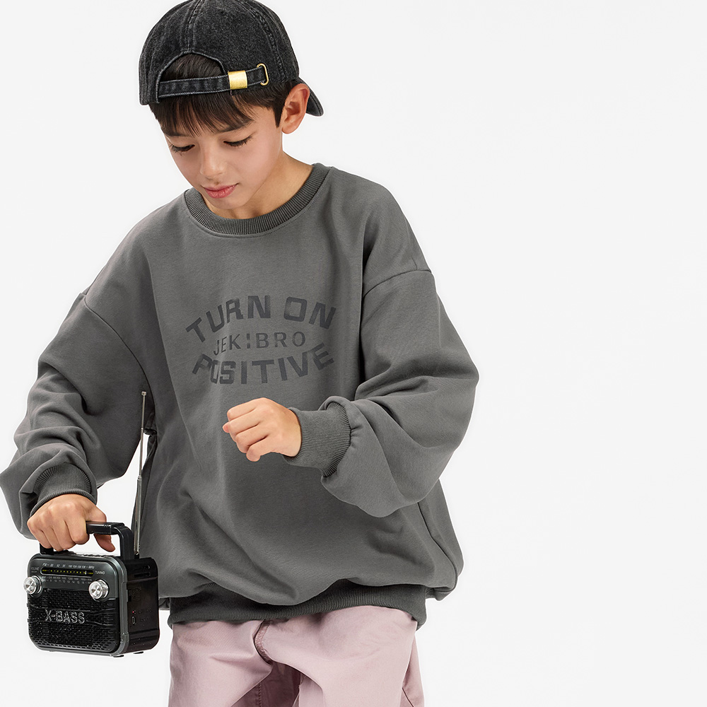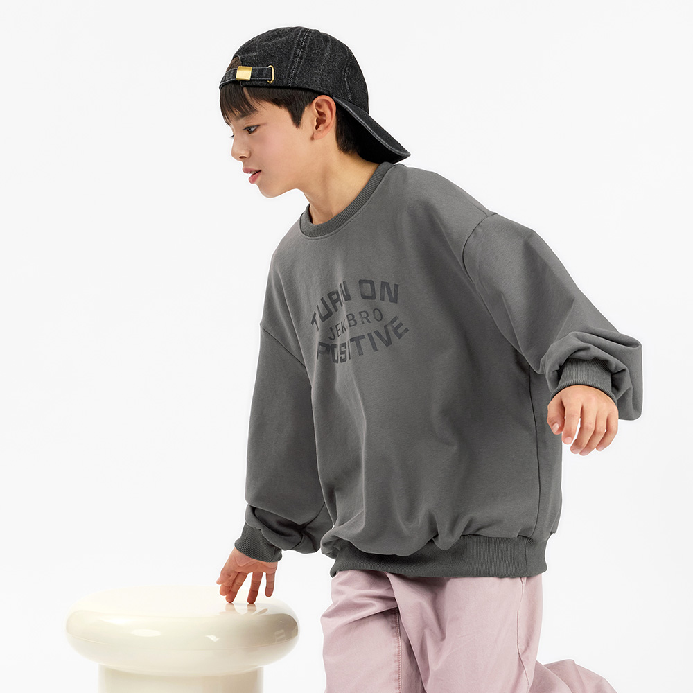 차분한 진그레이 컬러로 어디에나 자연스럽게 어울리는 데일리 맨투맨이에요.