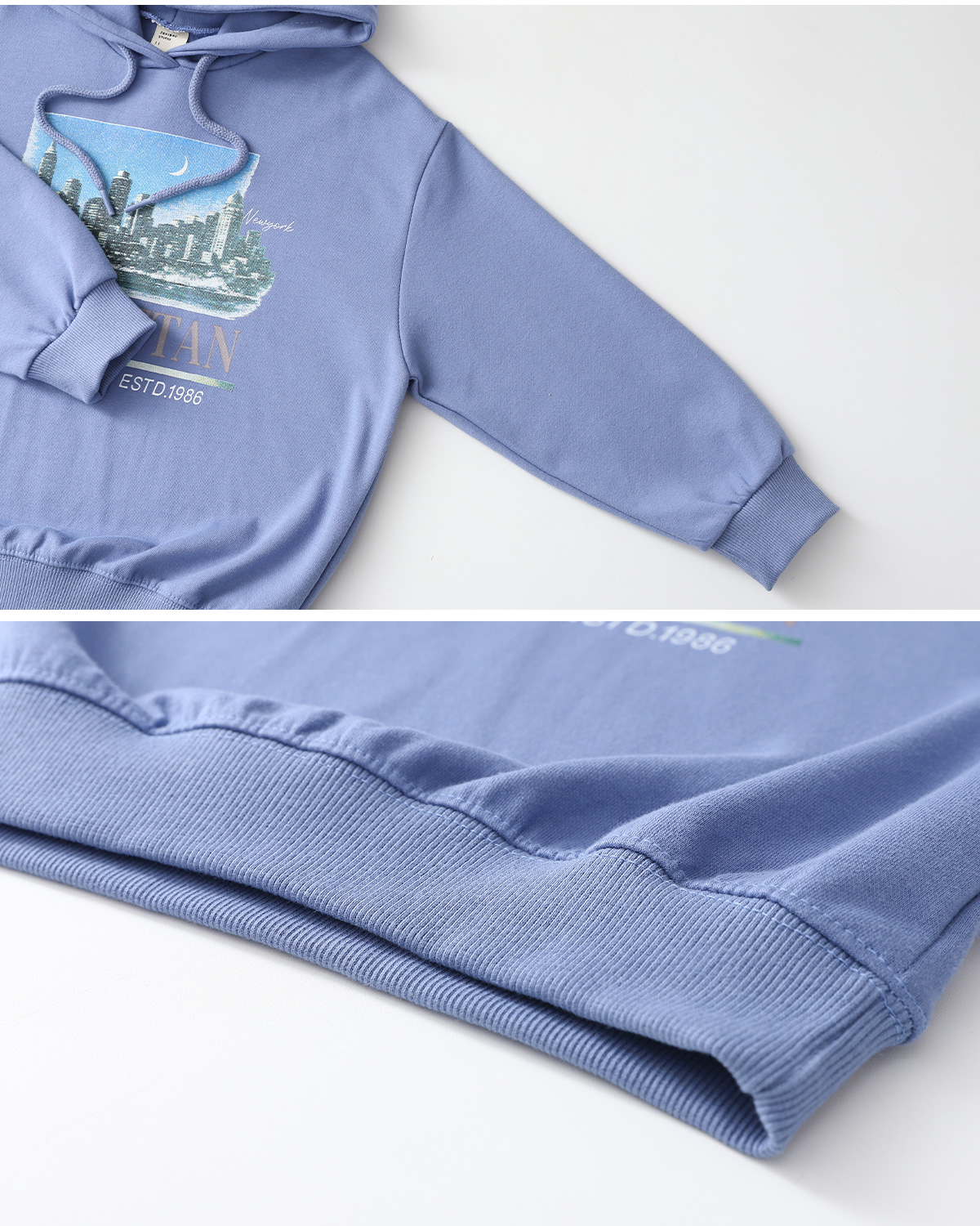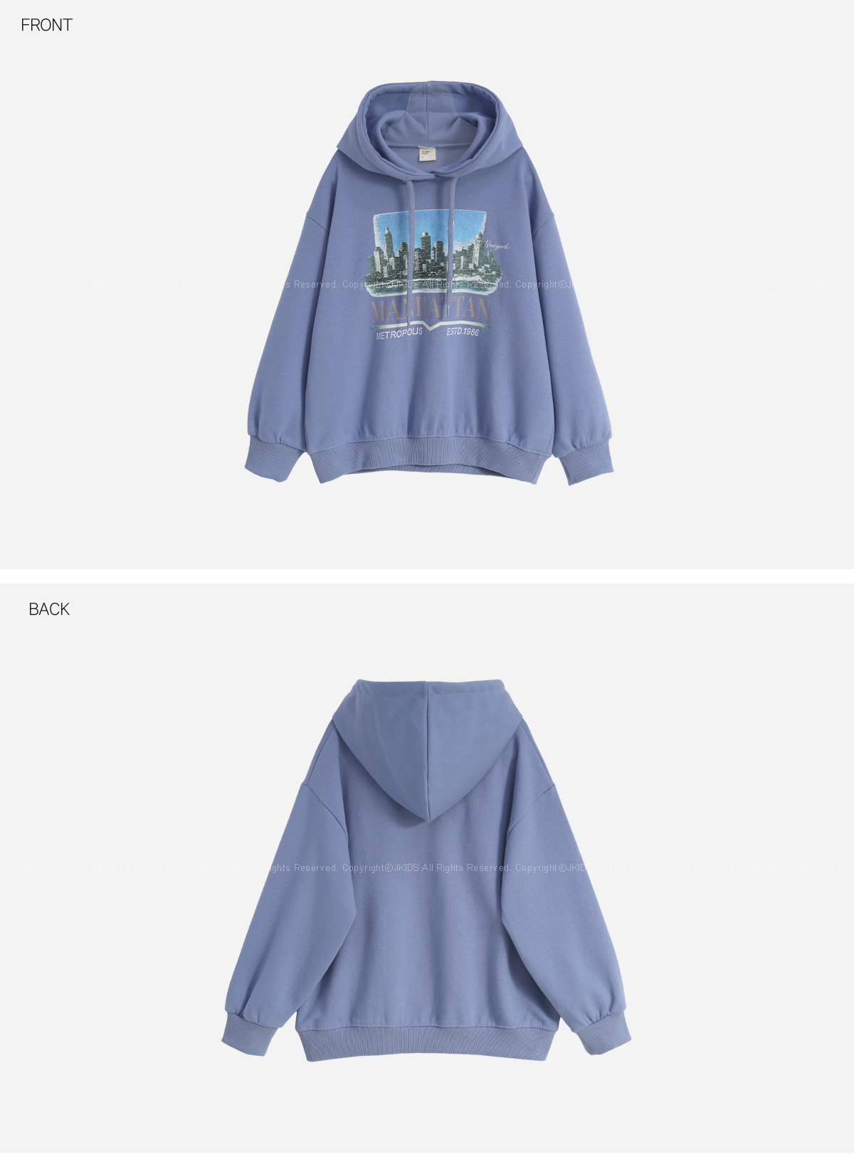 차분하면서도 감각적인 청보라 컬러가 매력적인 후드맨투맨이에요.