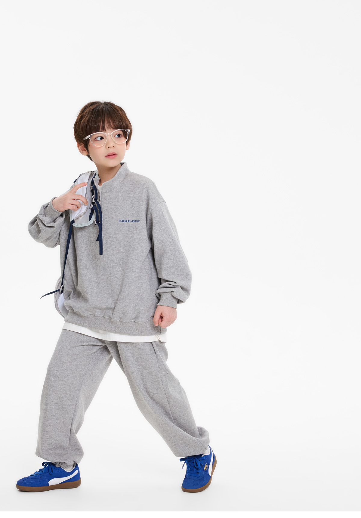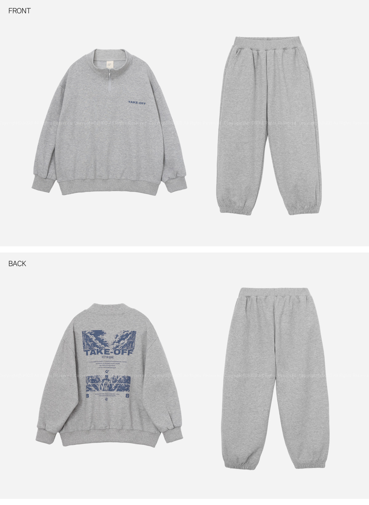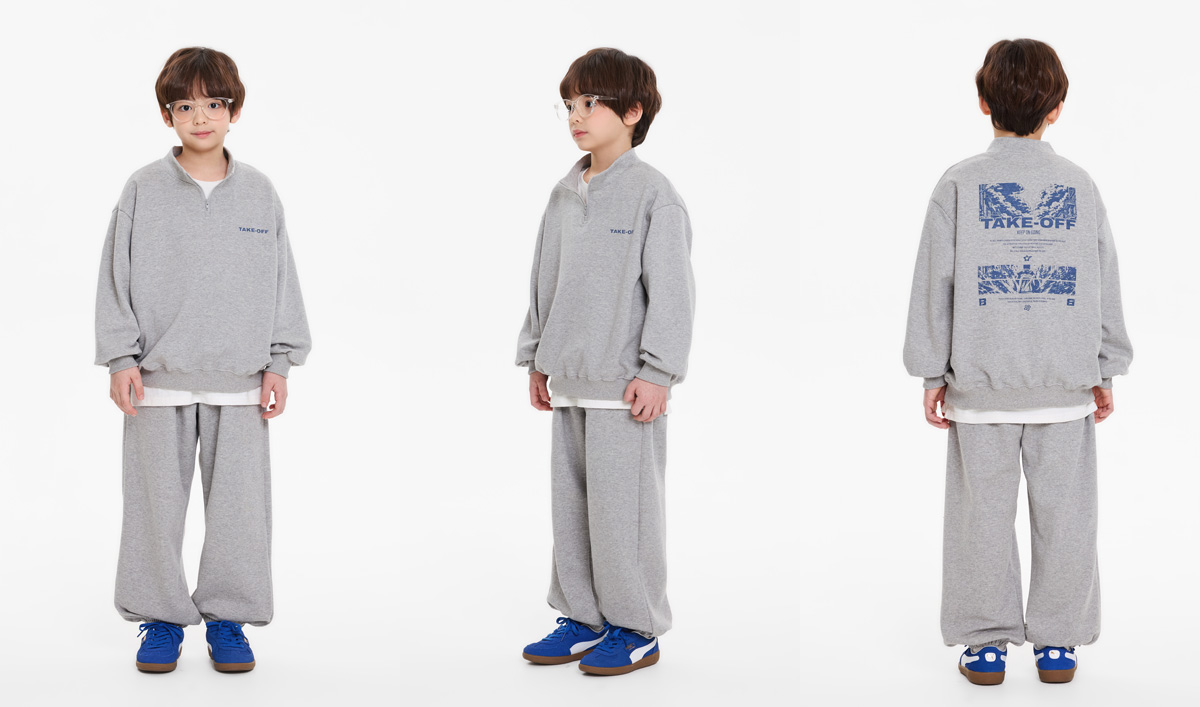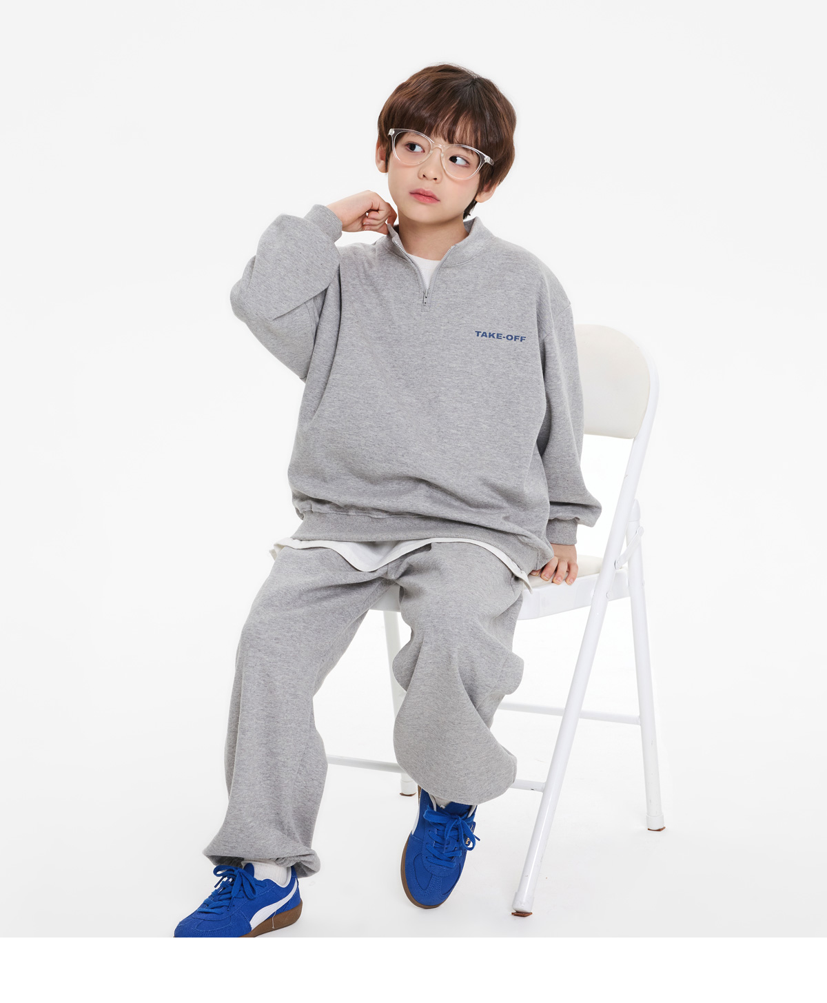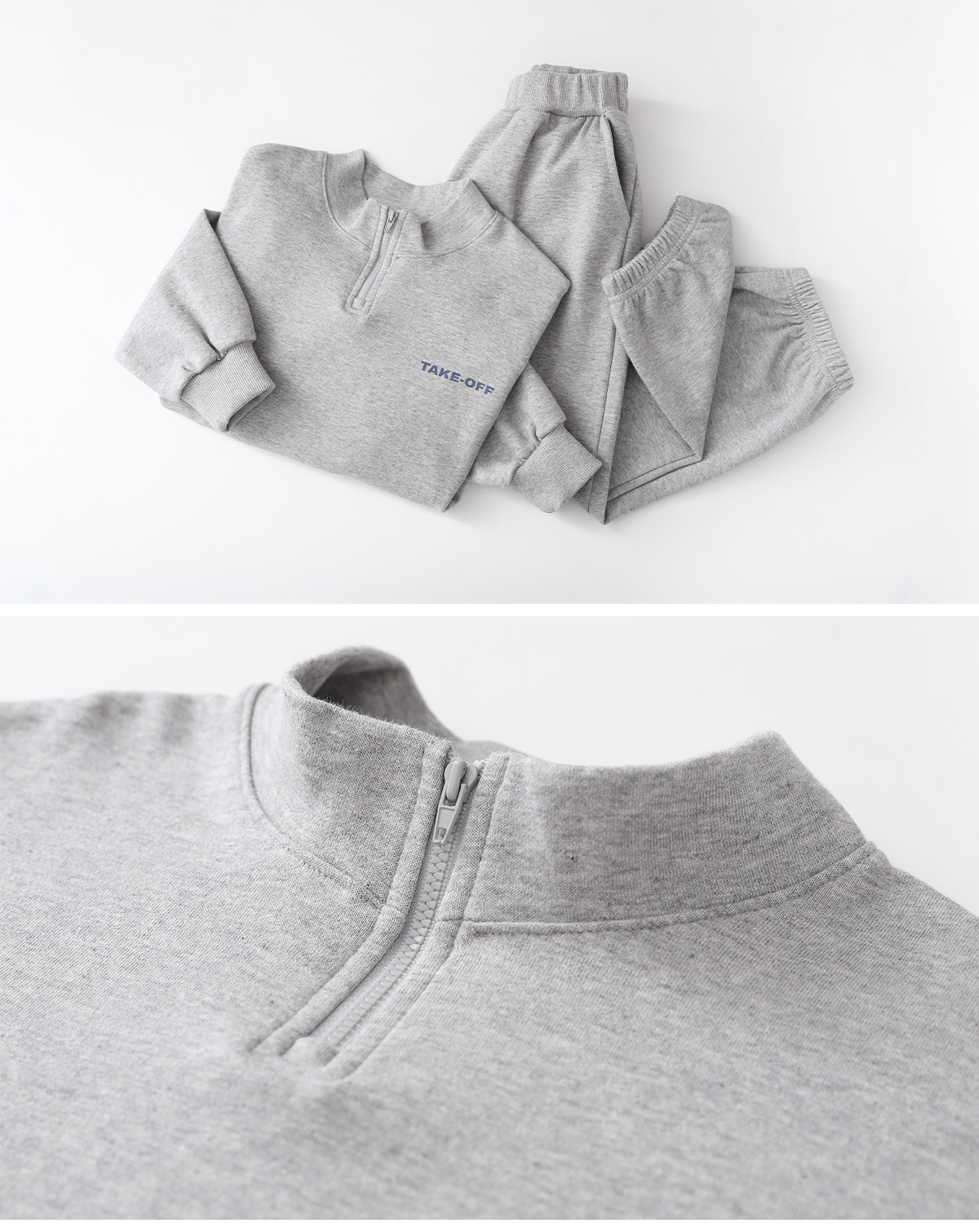 하프 집업 디자인이 포인트가 되는 상하세트예요.