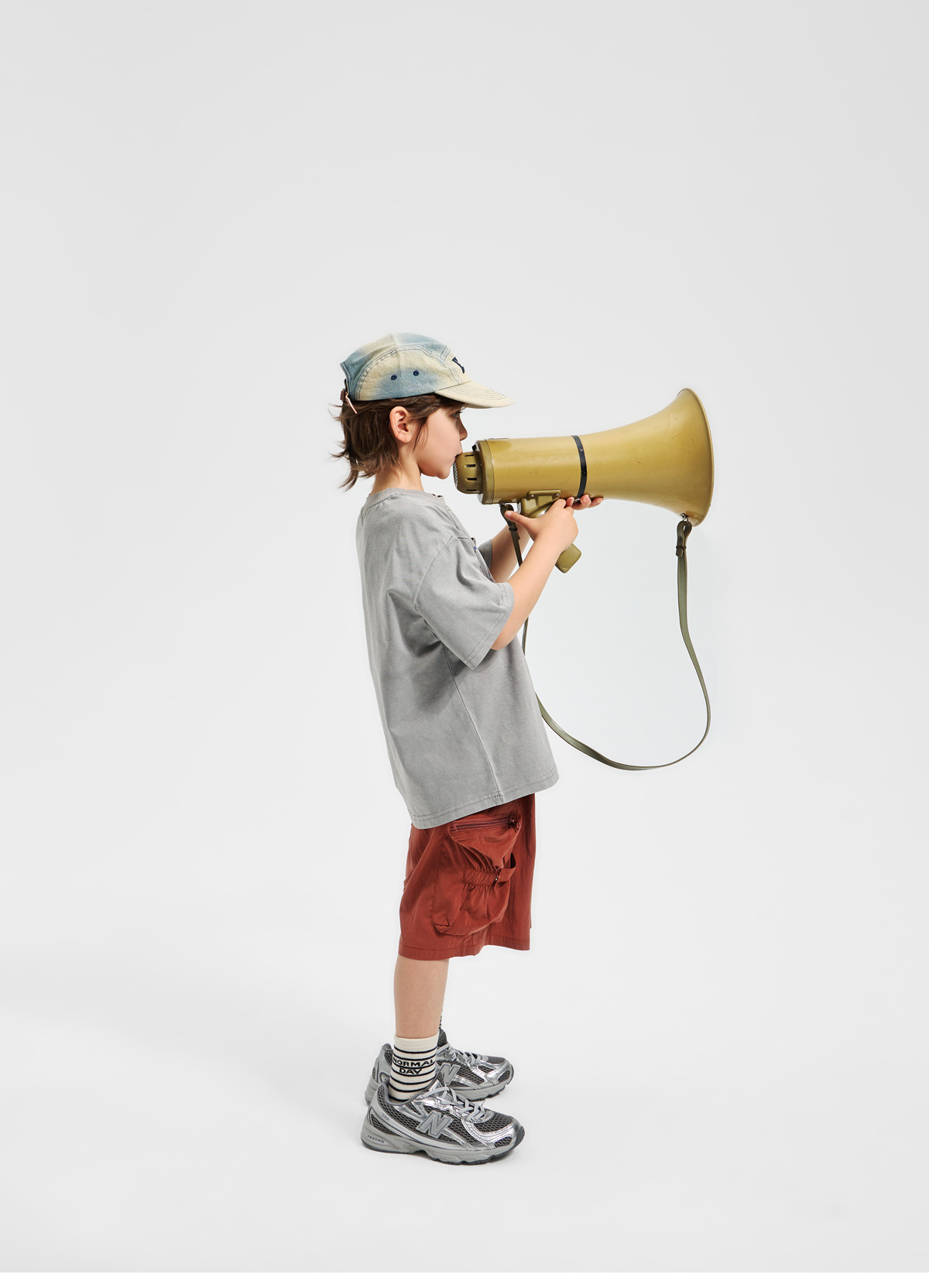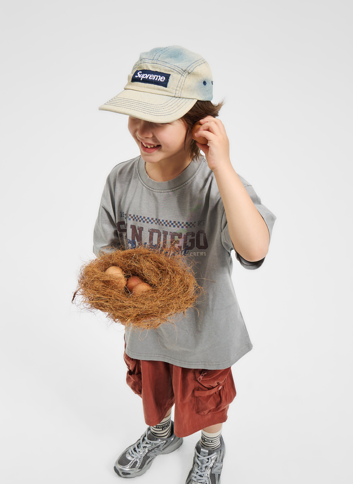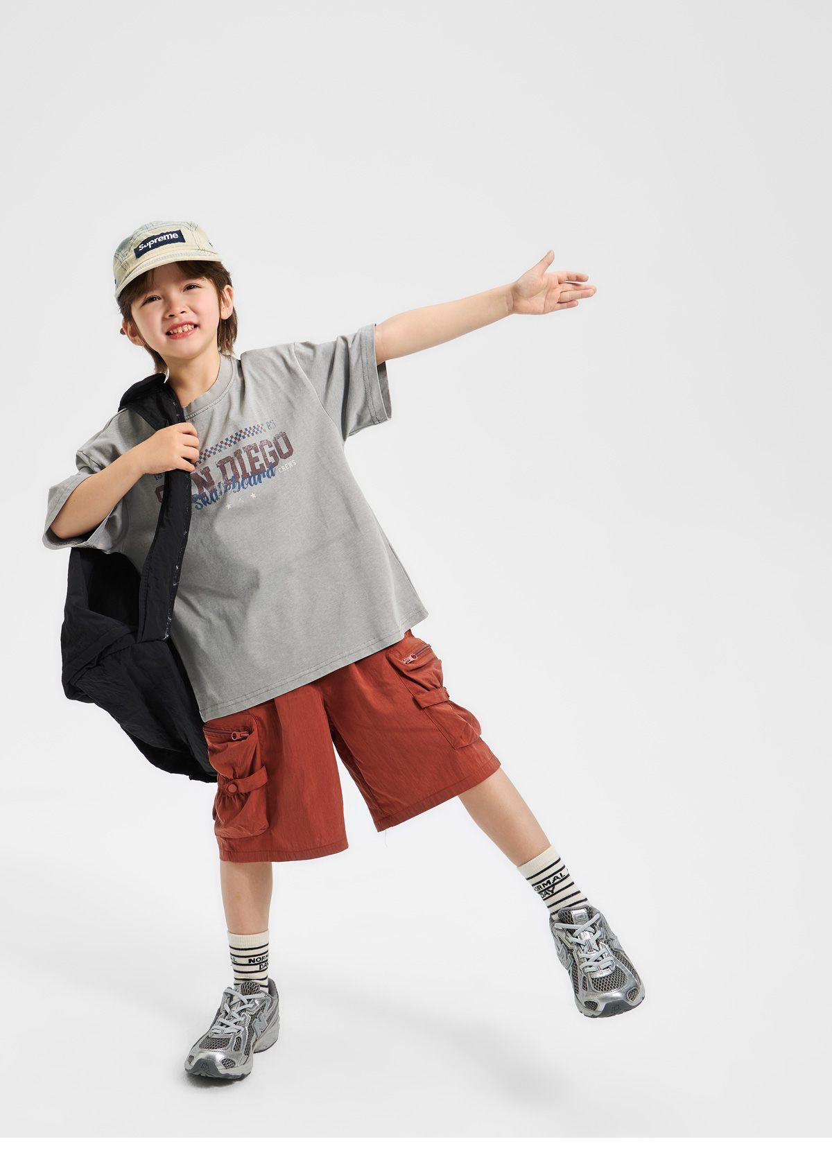 프론트 프린팅이 더해진 반팔 티셔츠와 카고 팬츠로 구성된 상하세트예요.