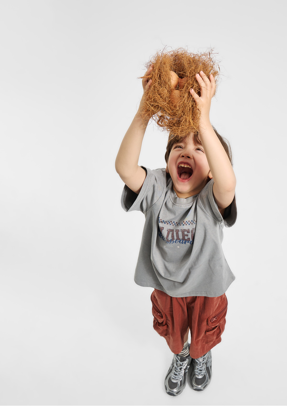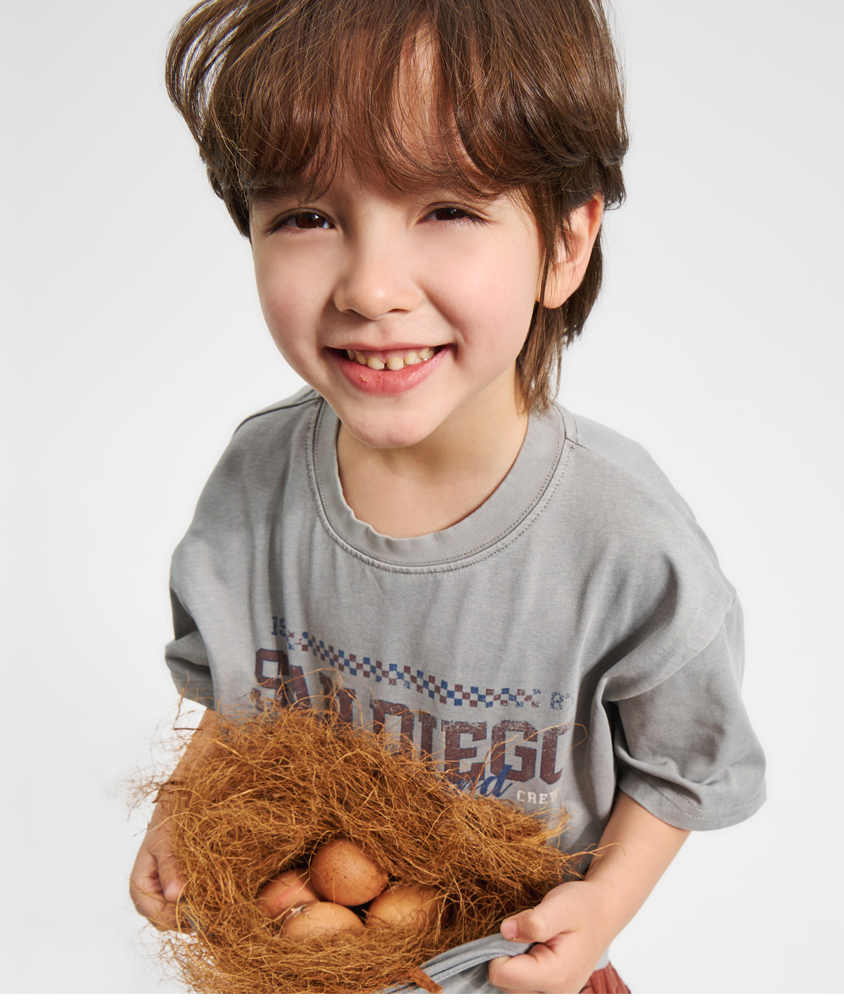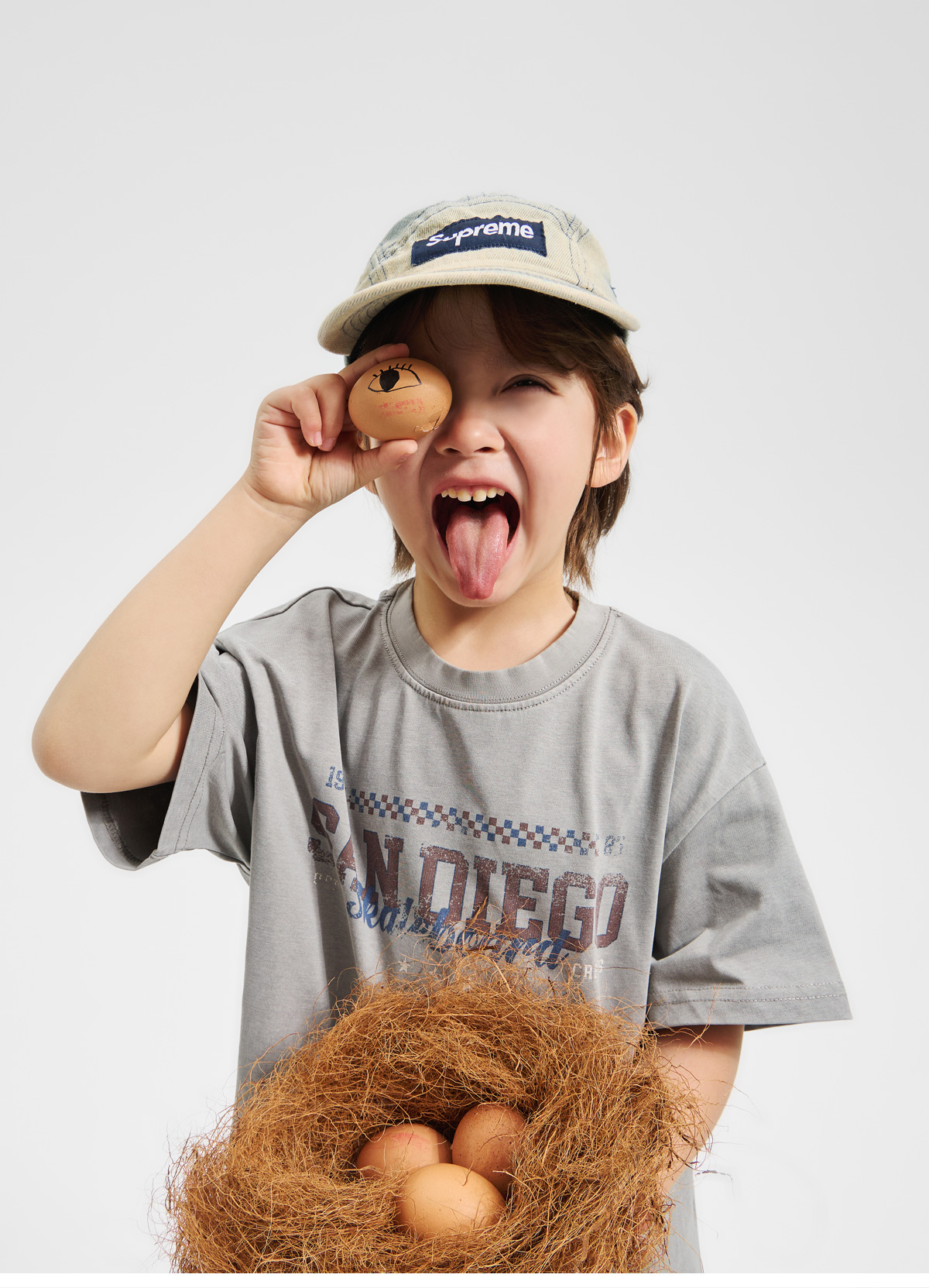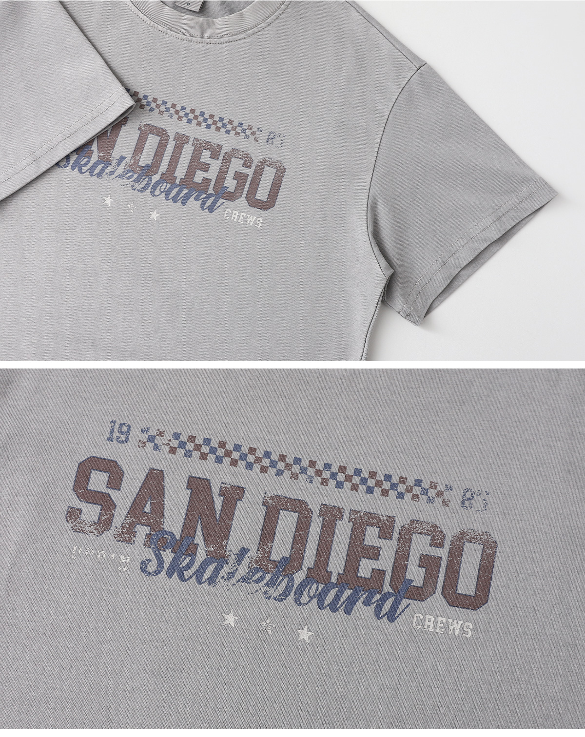 프론트 프린팅이 더해진 반팔 티셔츠와 카고 팬츠로 구성된 상하세트예요.