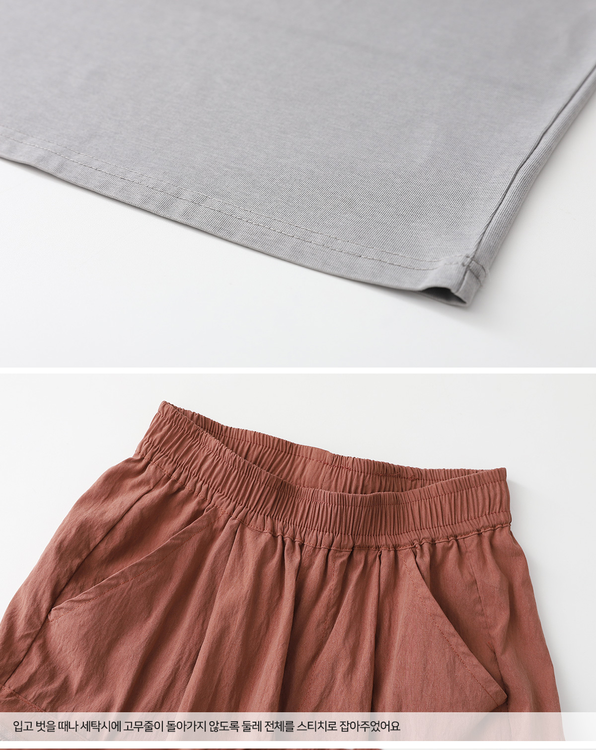 여유 있는 핏과 5부 기장으로 활동성이 좋아 편안하게 착용하기 좋아요.
