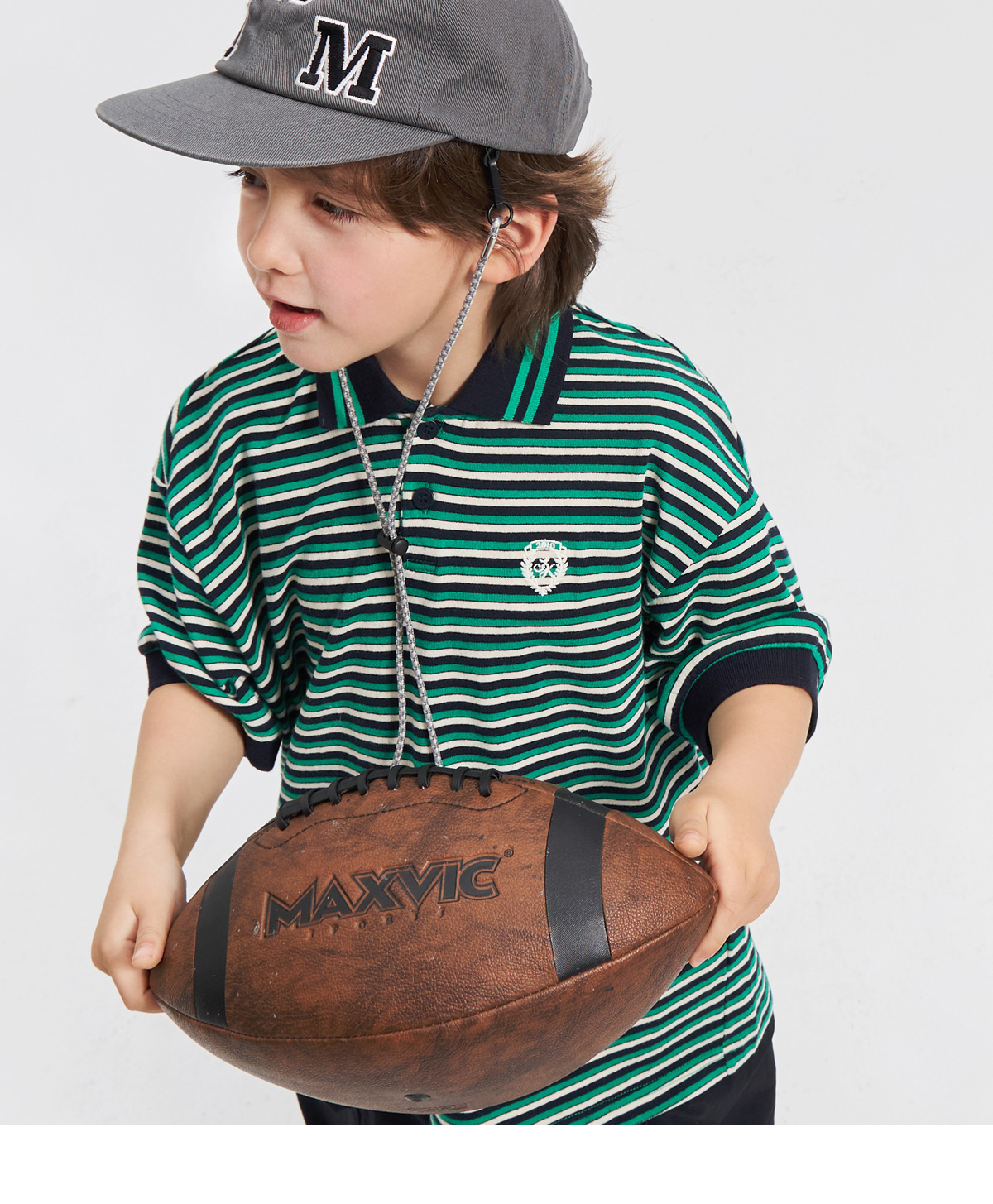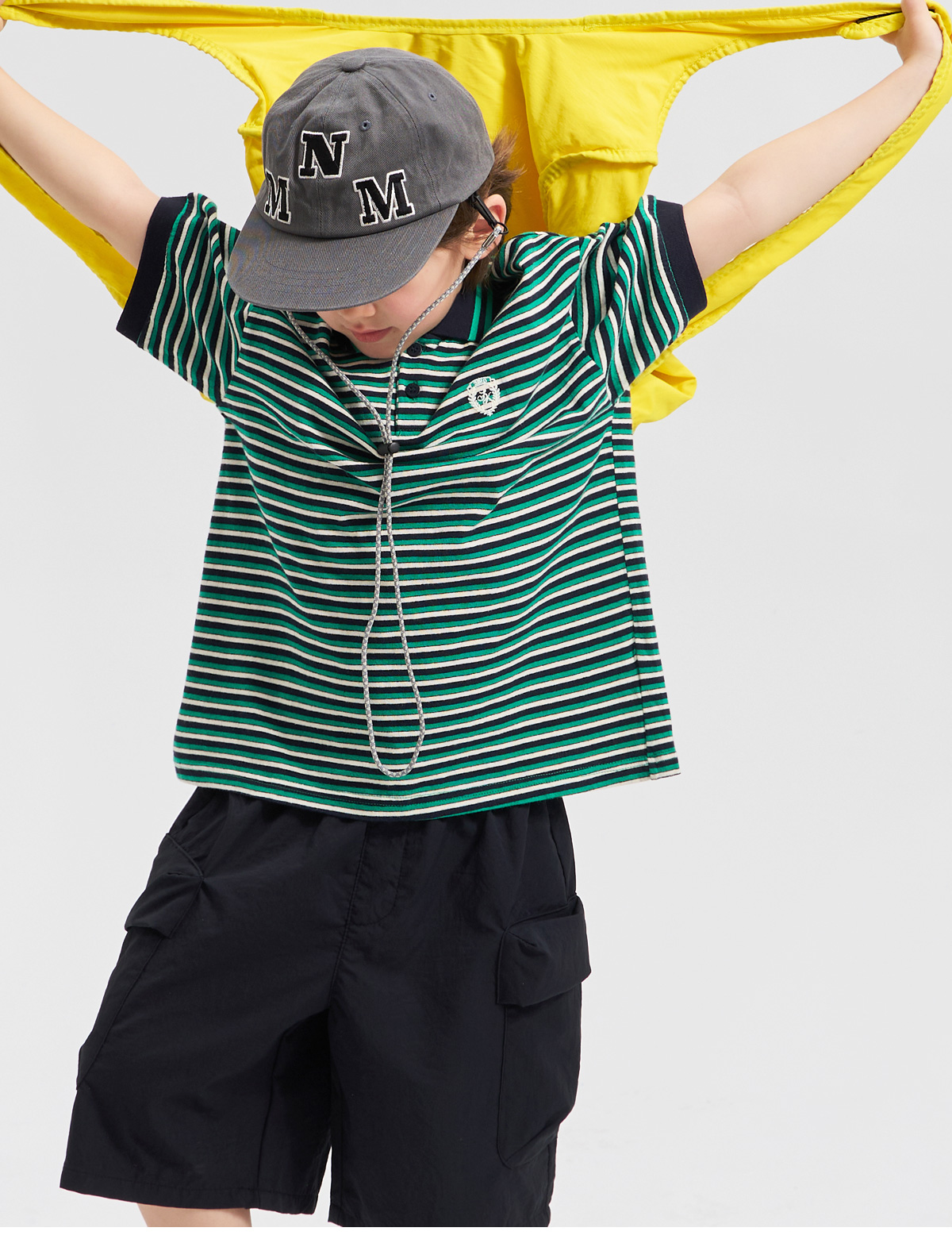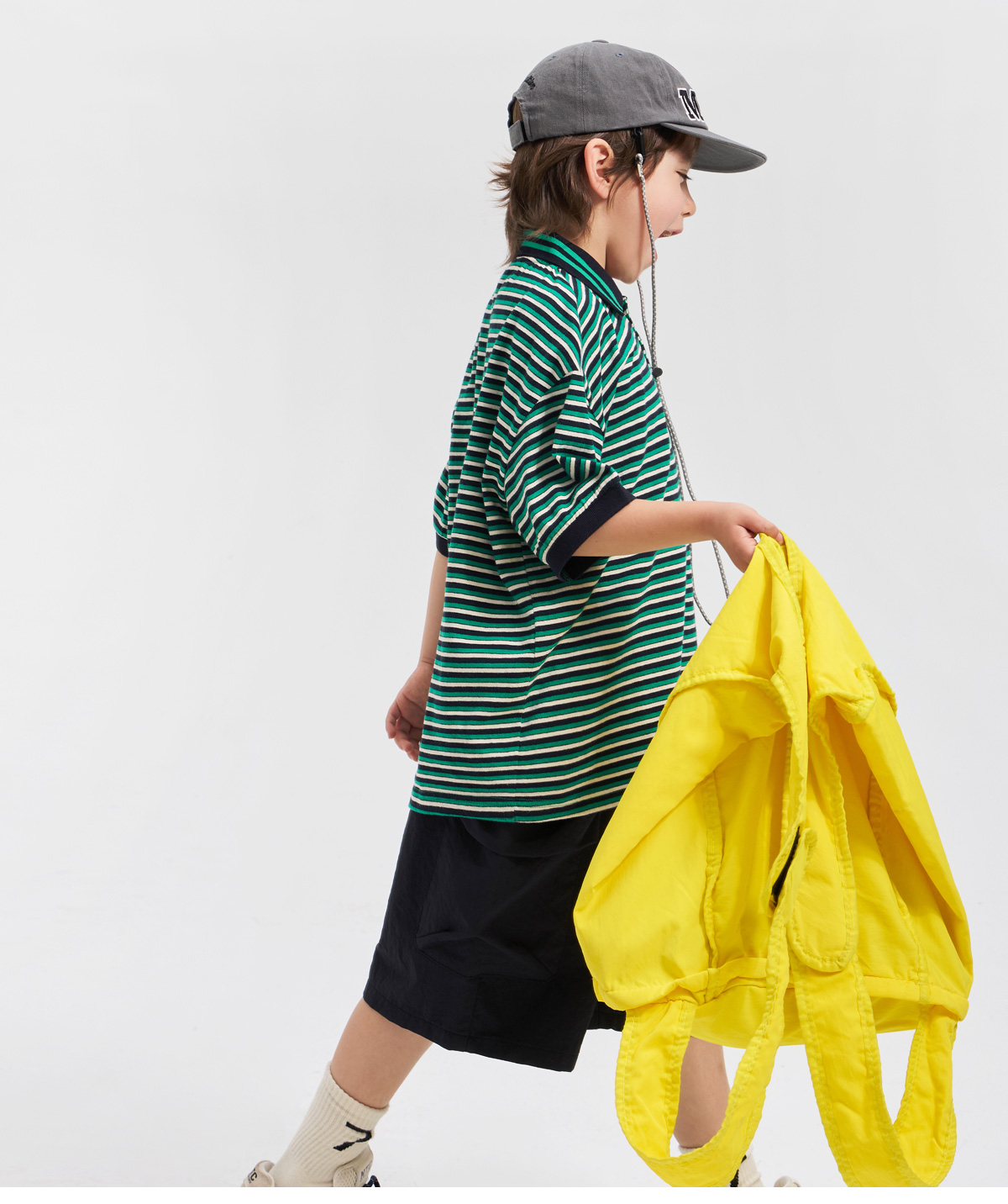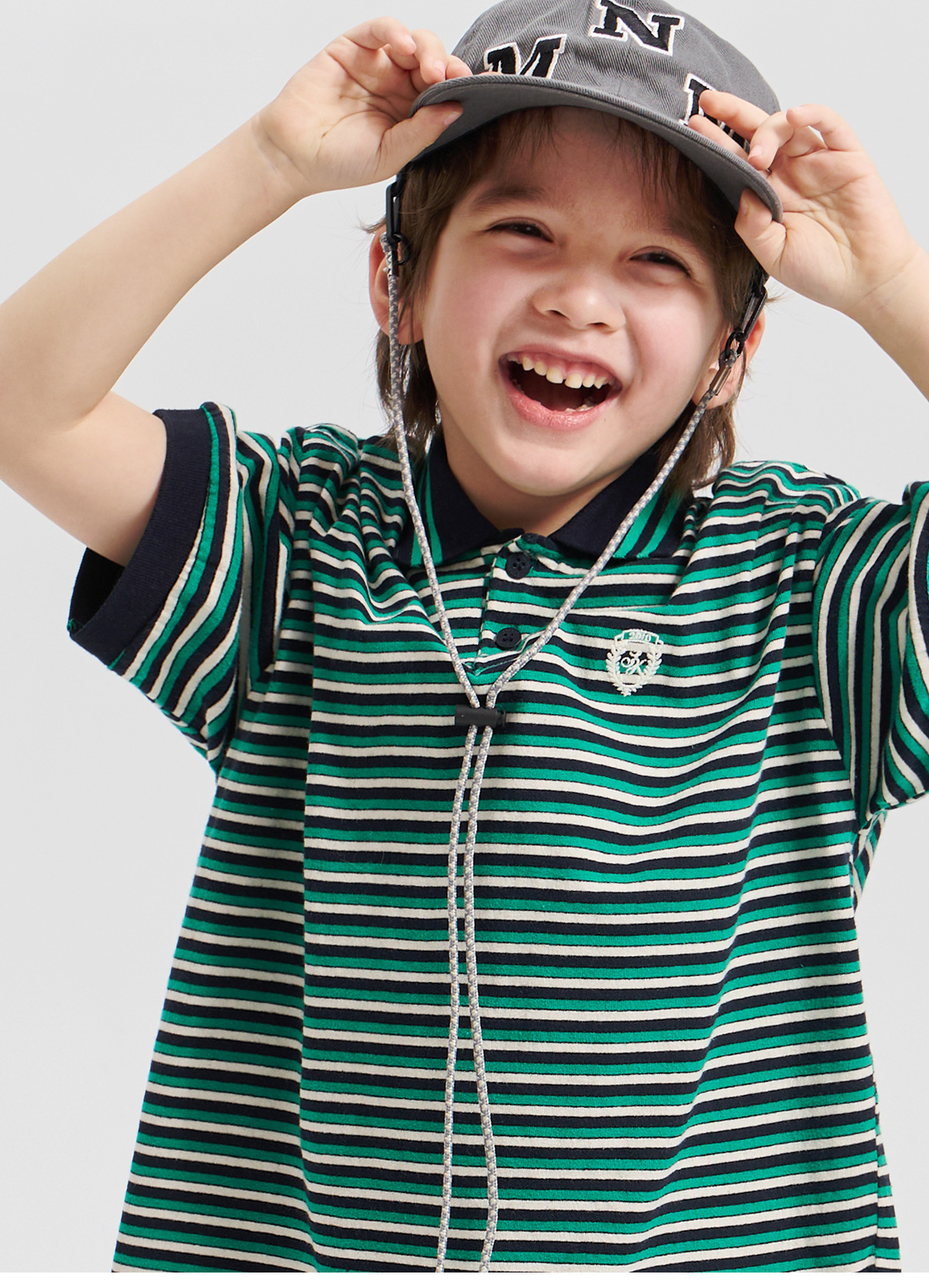 스트라이프 패턴이 돋보이는 카라티셔츠예요