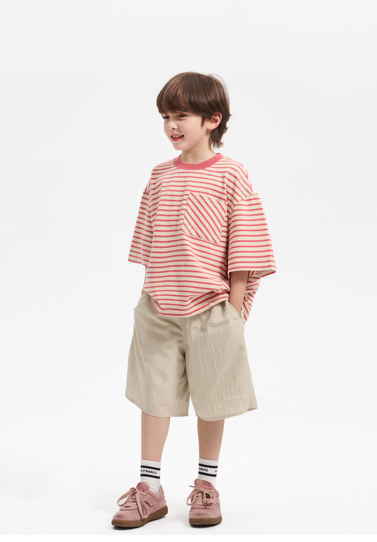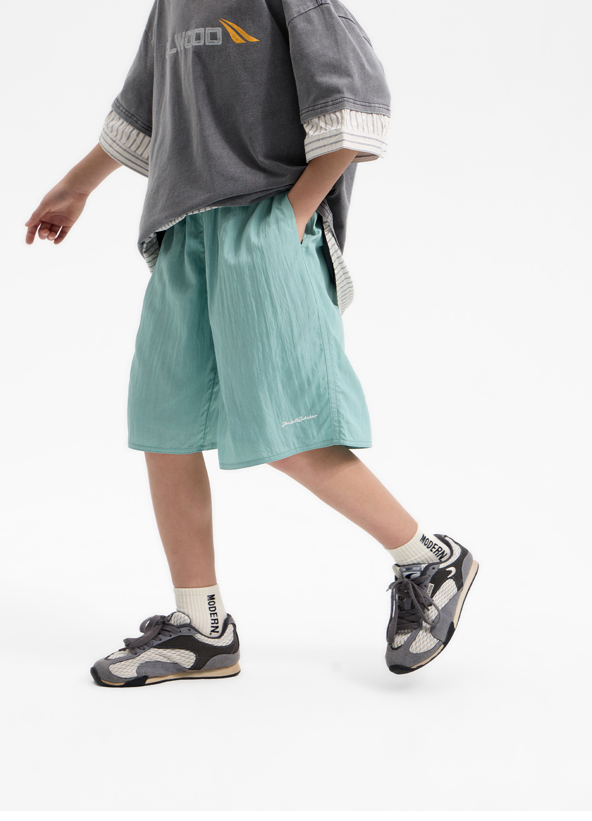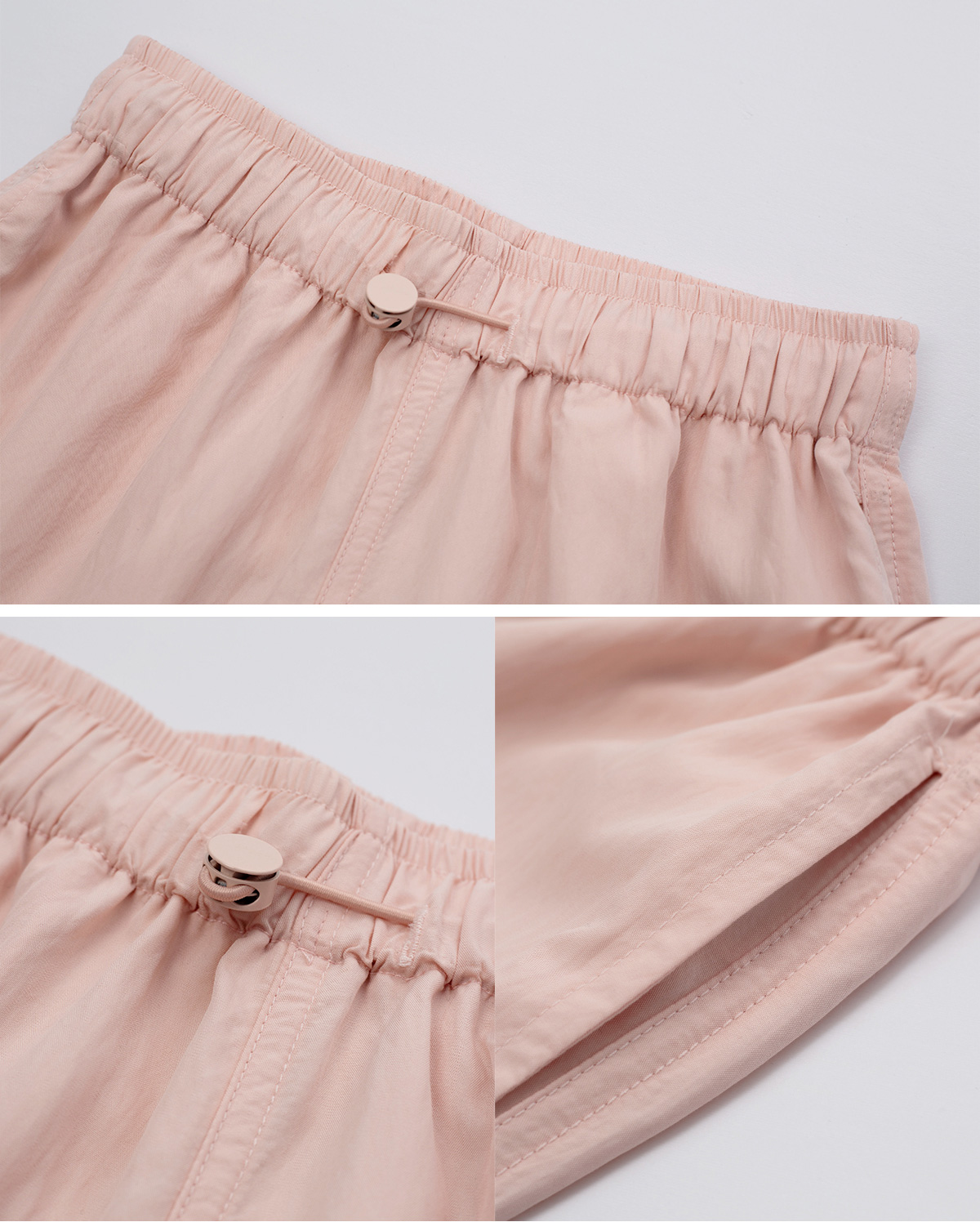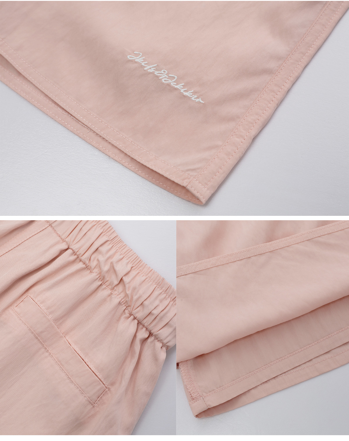 가벼운 소재감이 돋보이는 하프 팬츠예요.