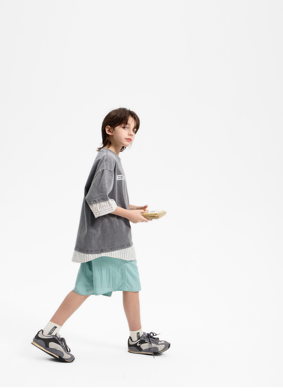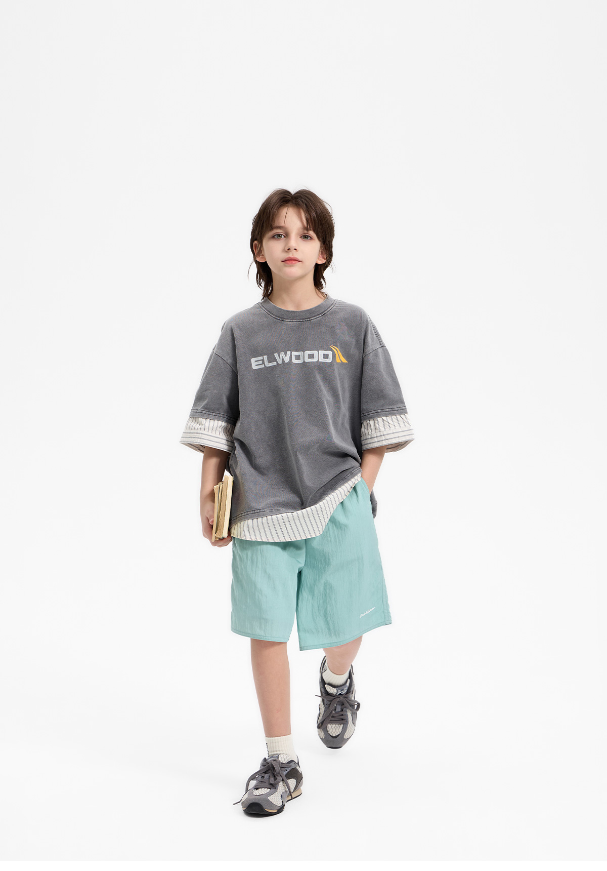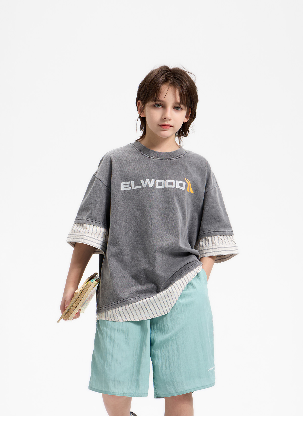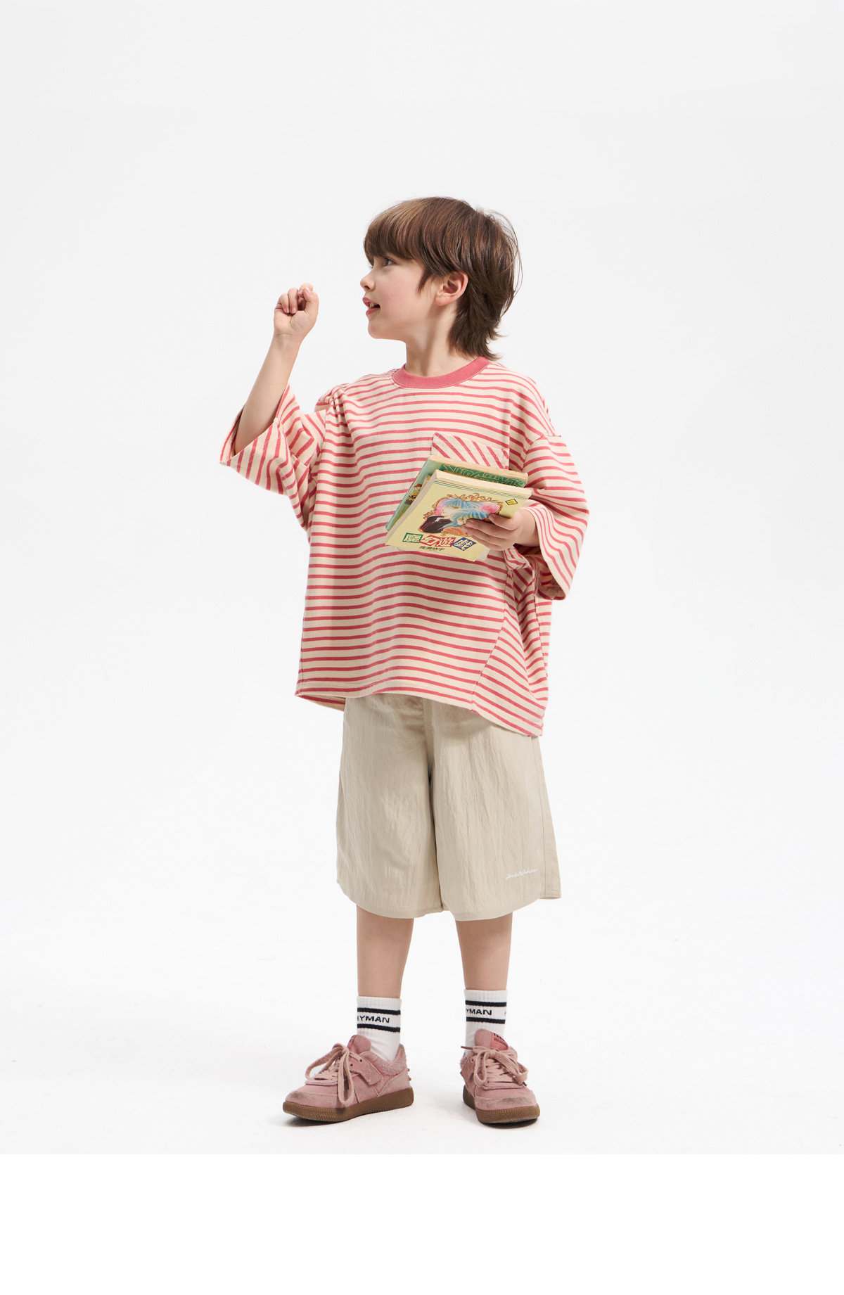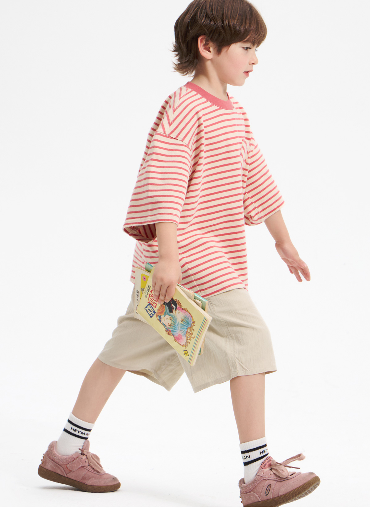 가벼운 소재감이 돋보이는 하프 팬츠예요.