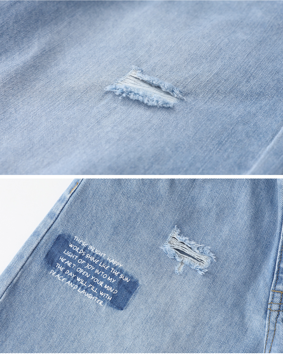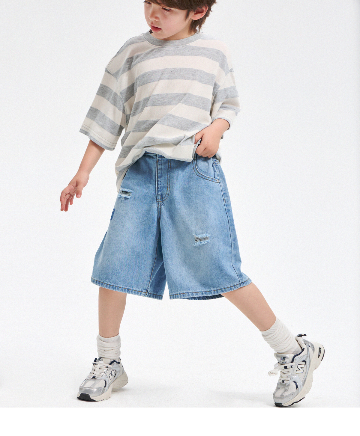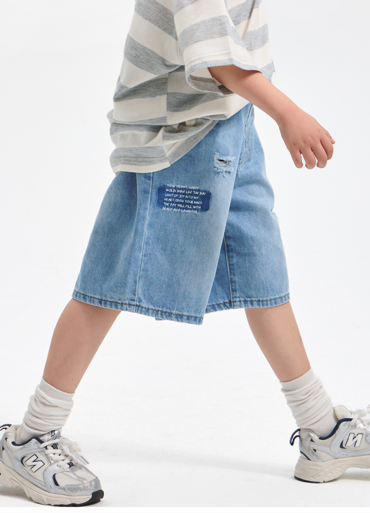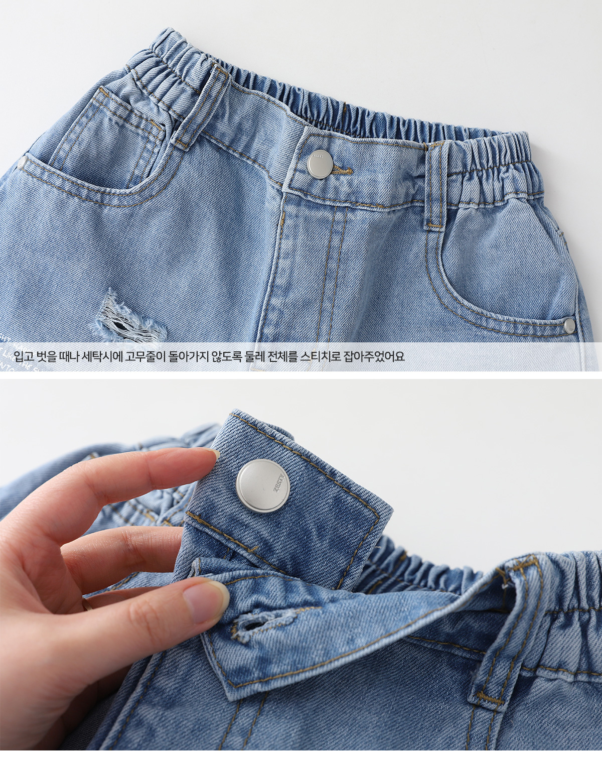 부분부분 데미지가 돋보이는 데님 하프 팬츠예요