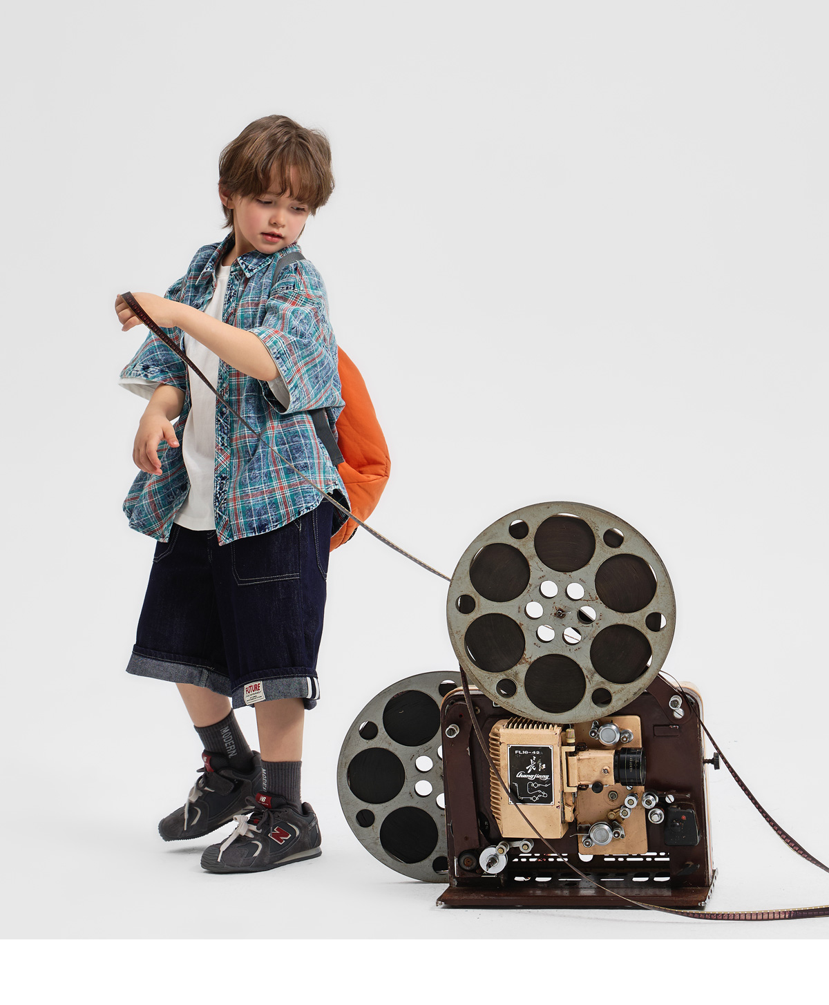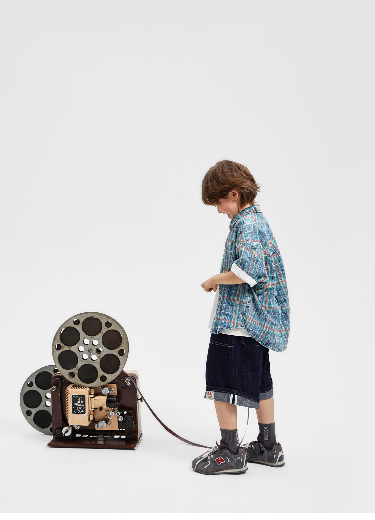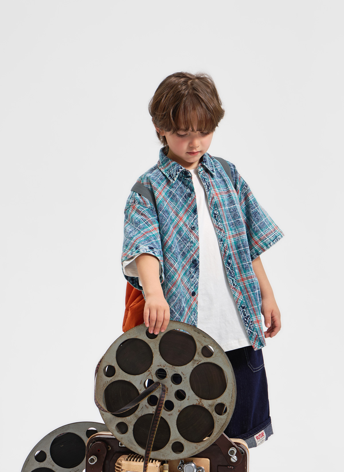 빈티지한 체크 패턴이 돋보이는 블루 컬러 셔츠예요.