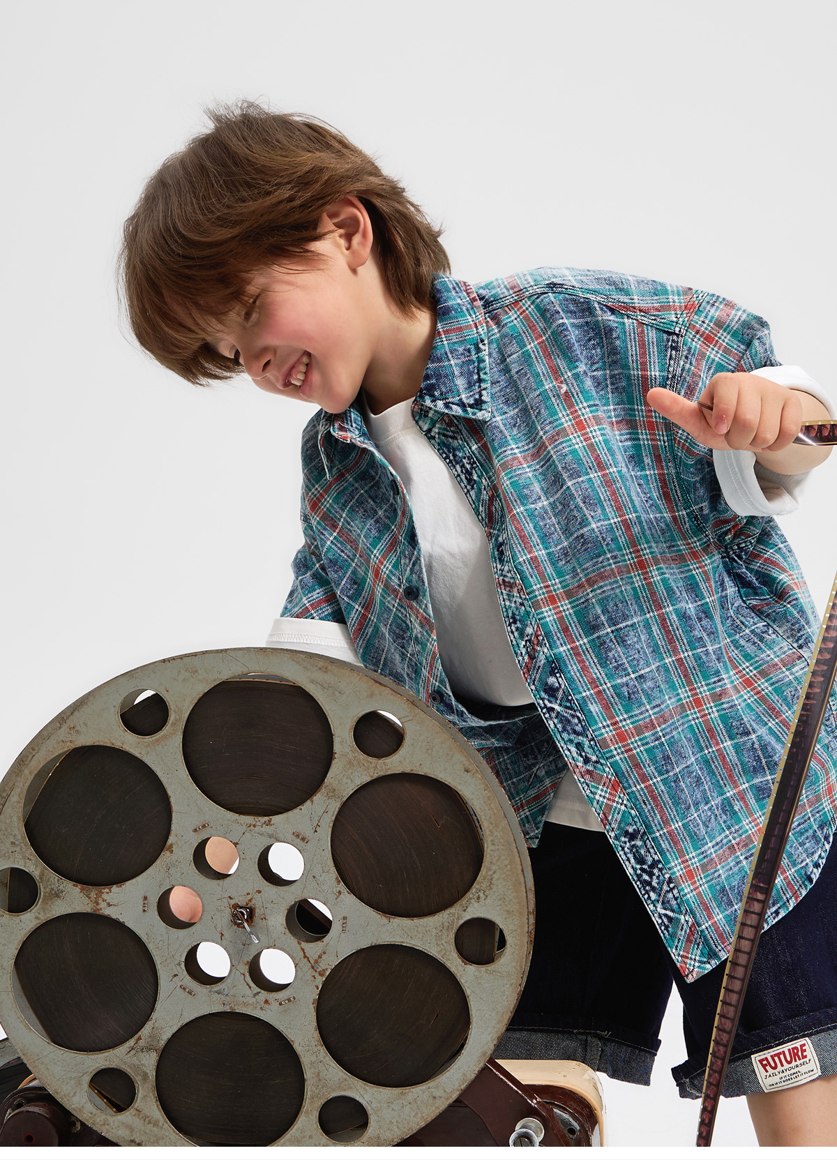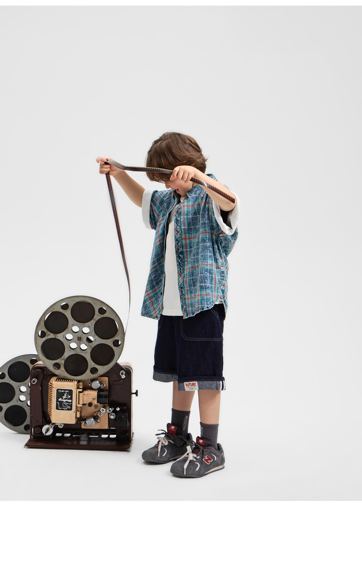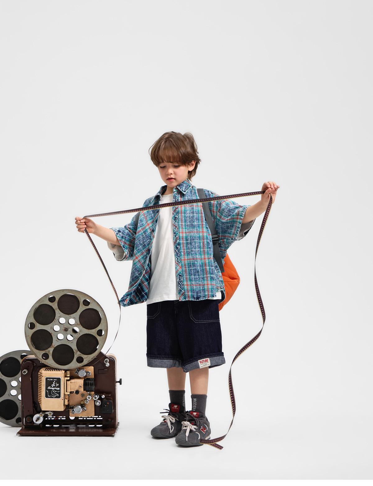 빈티지한 체크 패턴이 돋보이는 블루 컬러 셔츠예요.