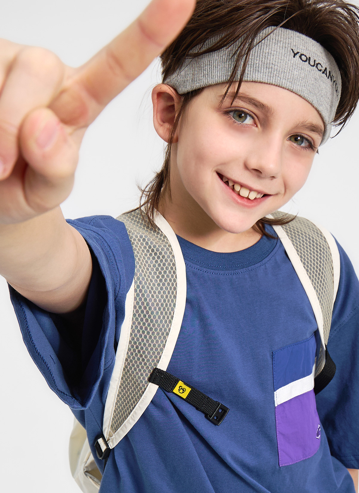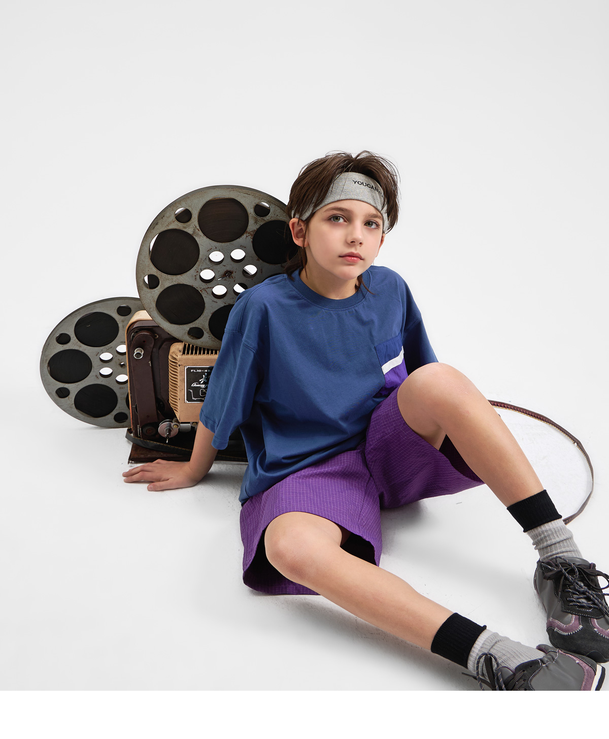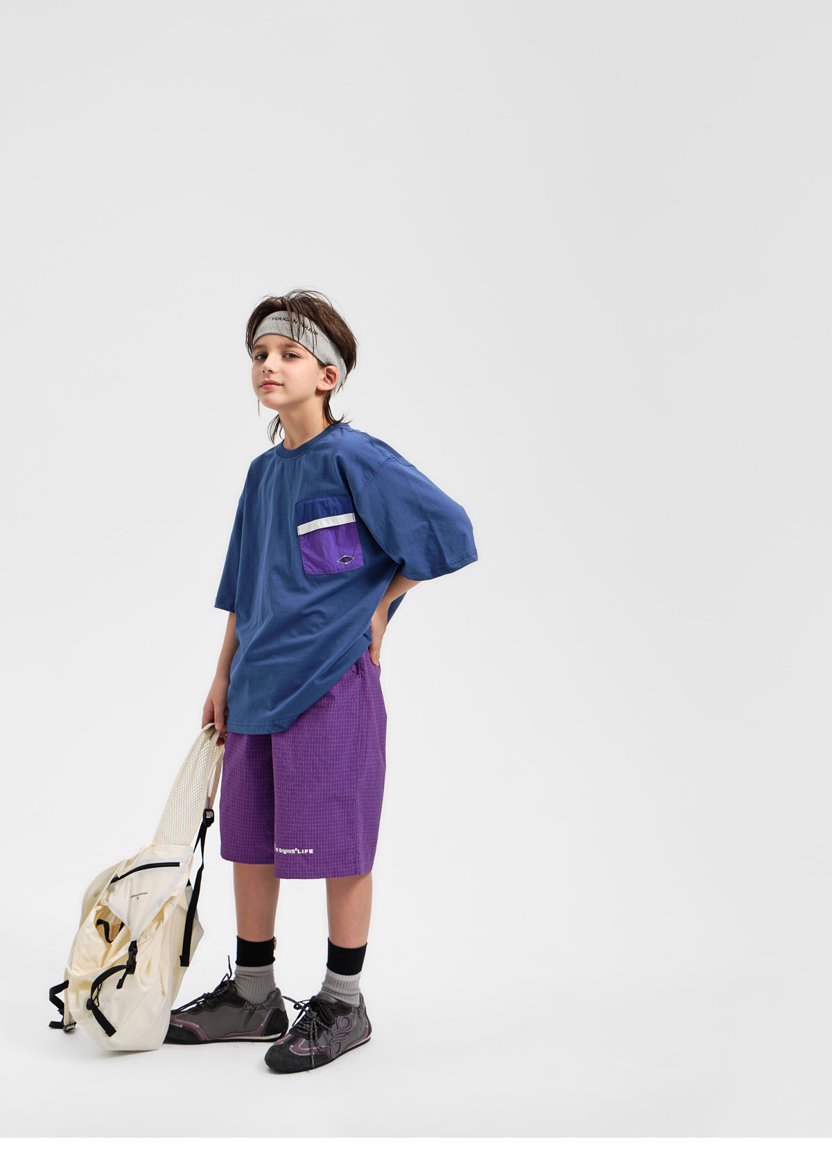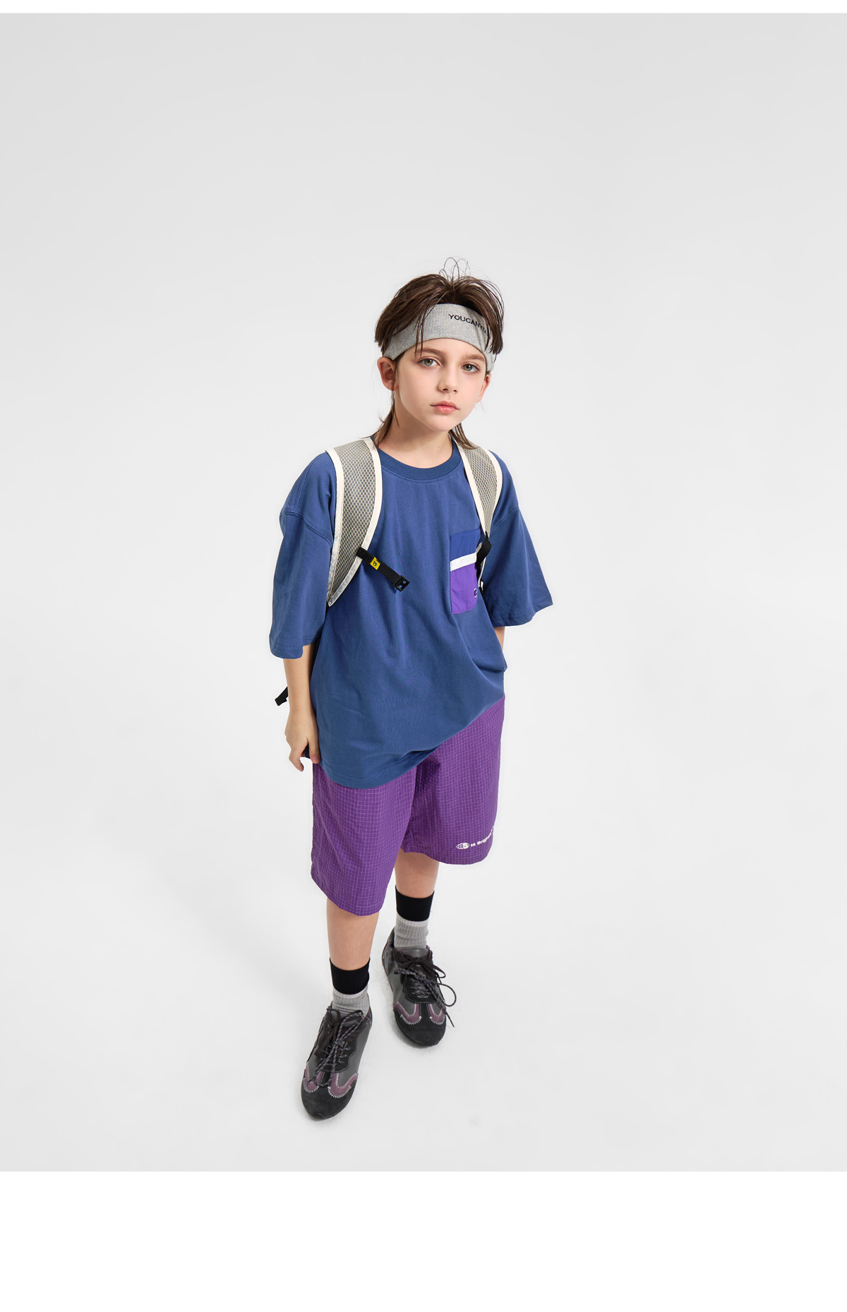 배색 포켓이 포인트가 되는 블루 컬러 상하세트예요.