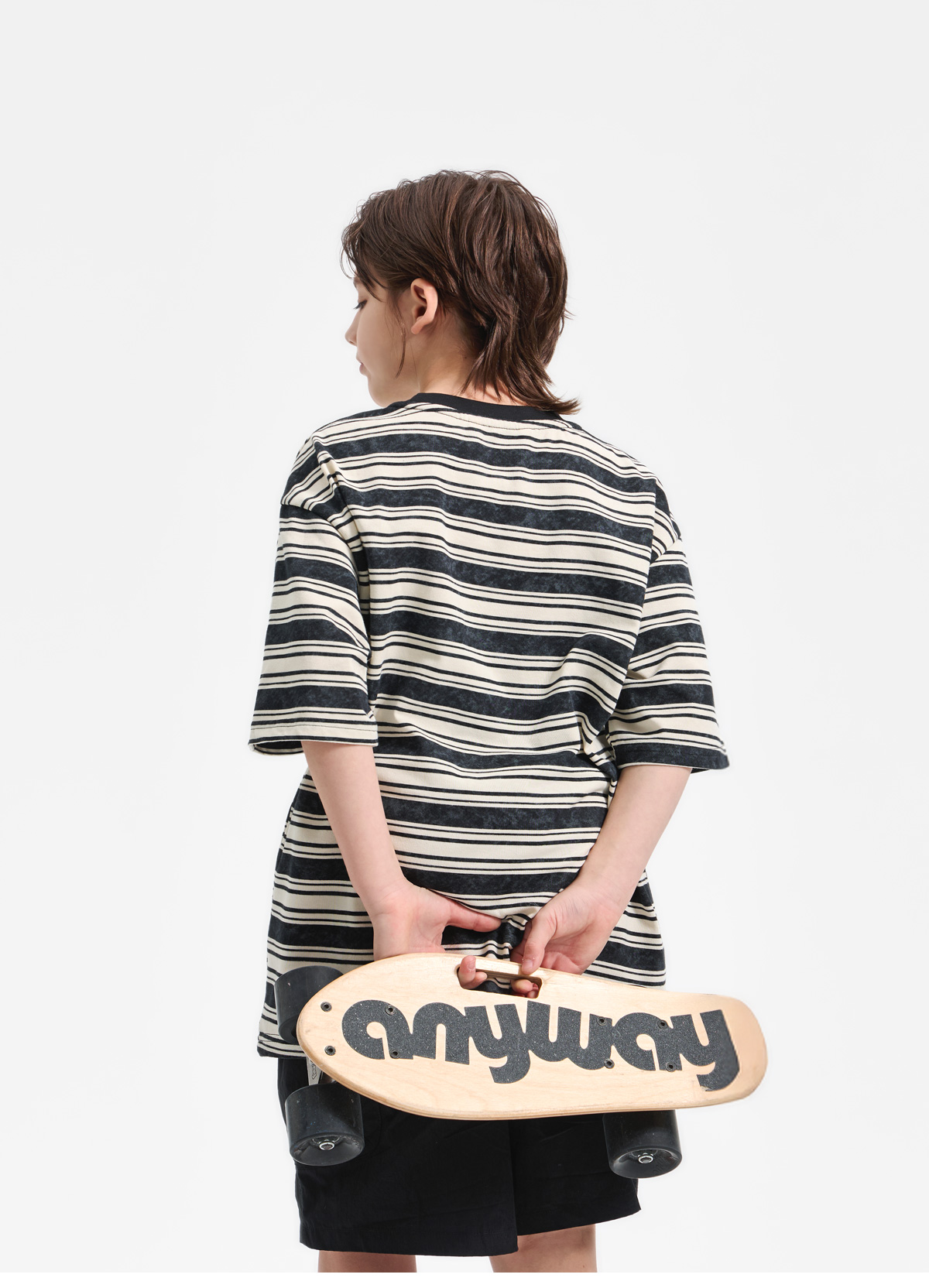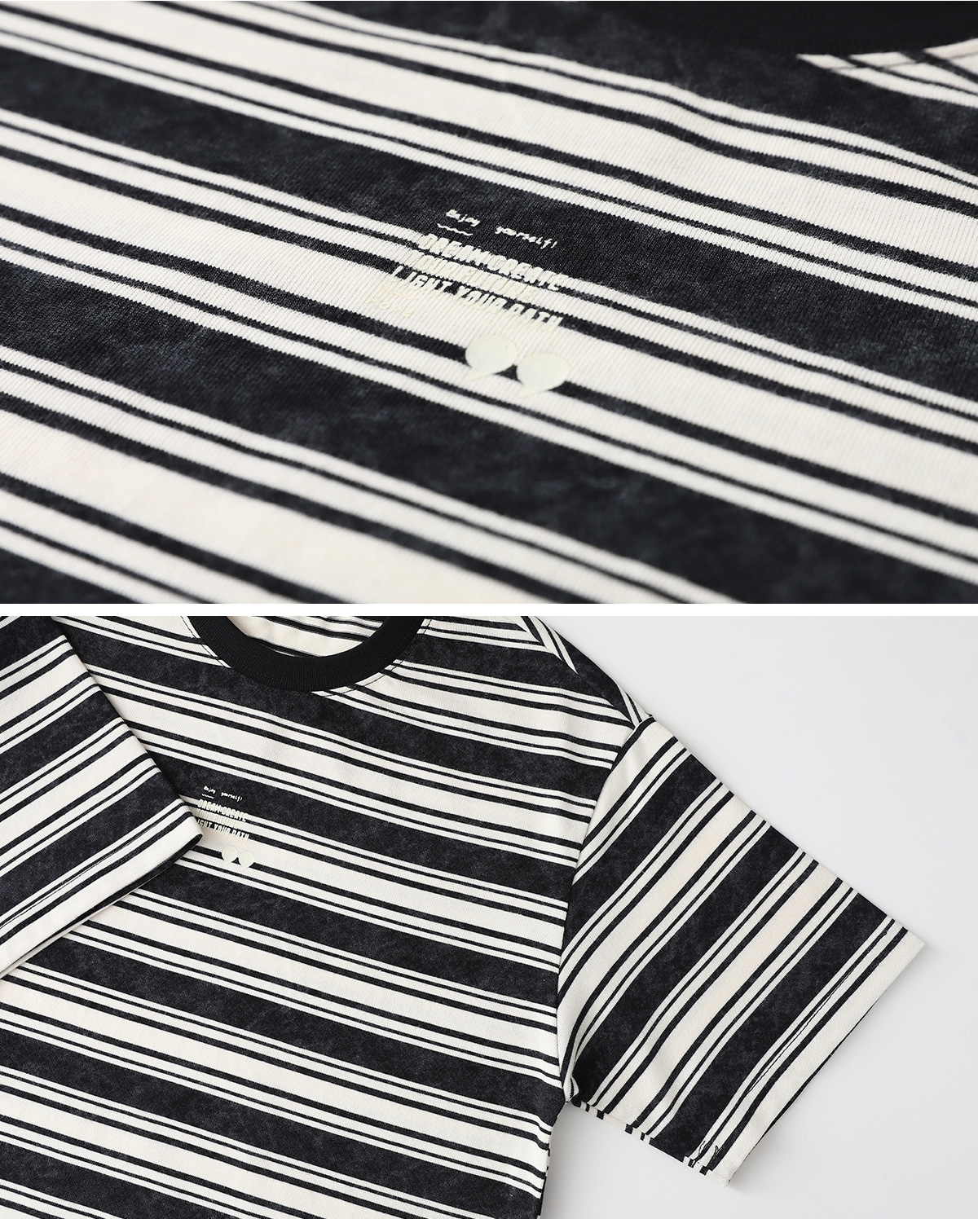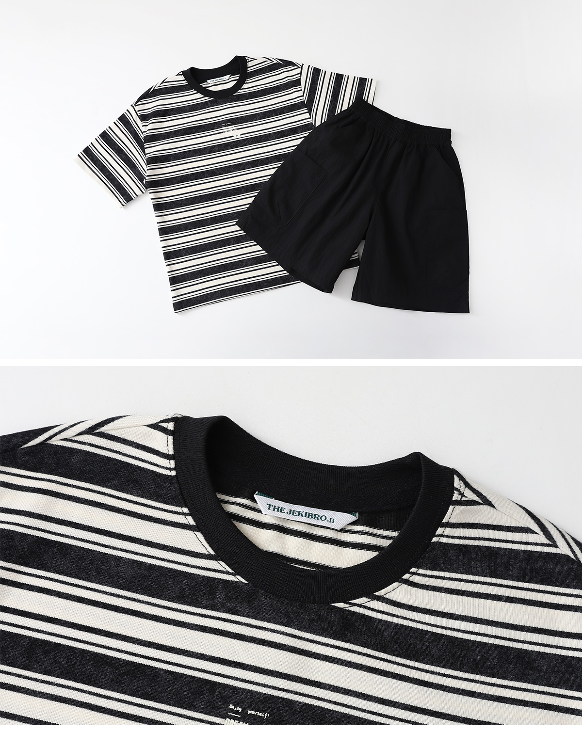 단조롭지 않은 스트라이프 패턴으로 포인트가 되어주는 반소매 티셔츠와