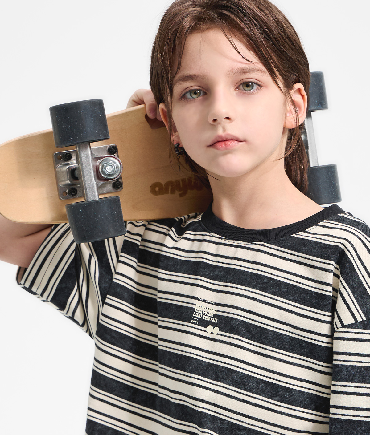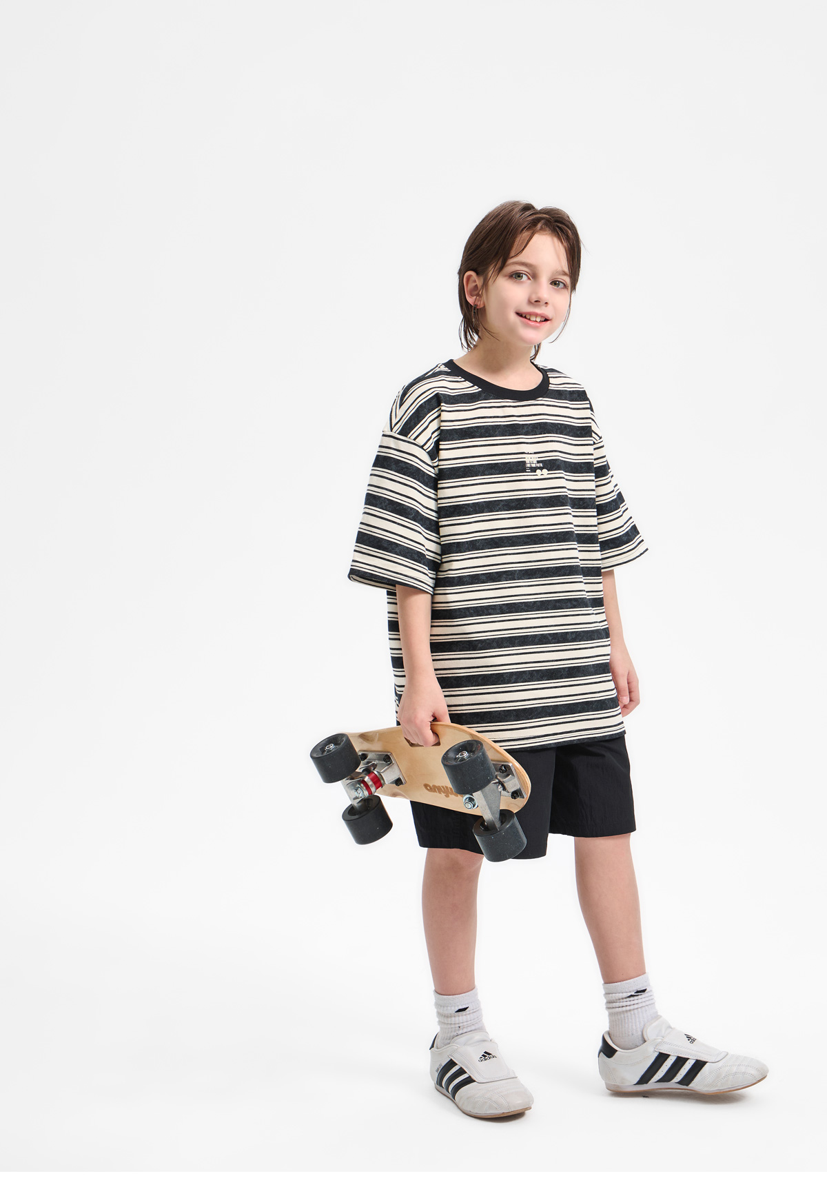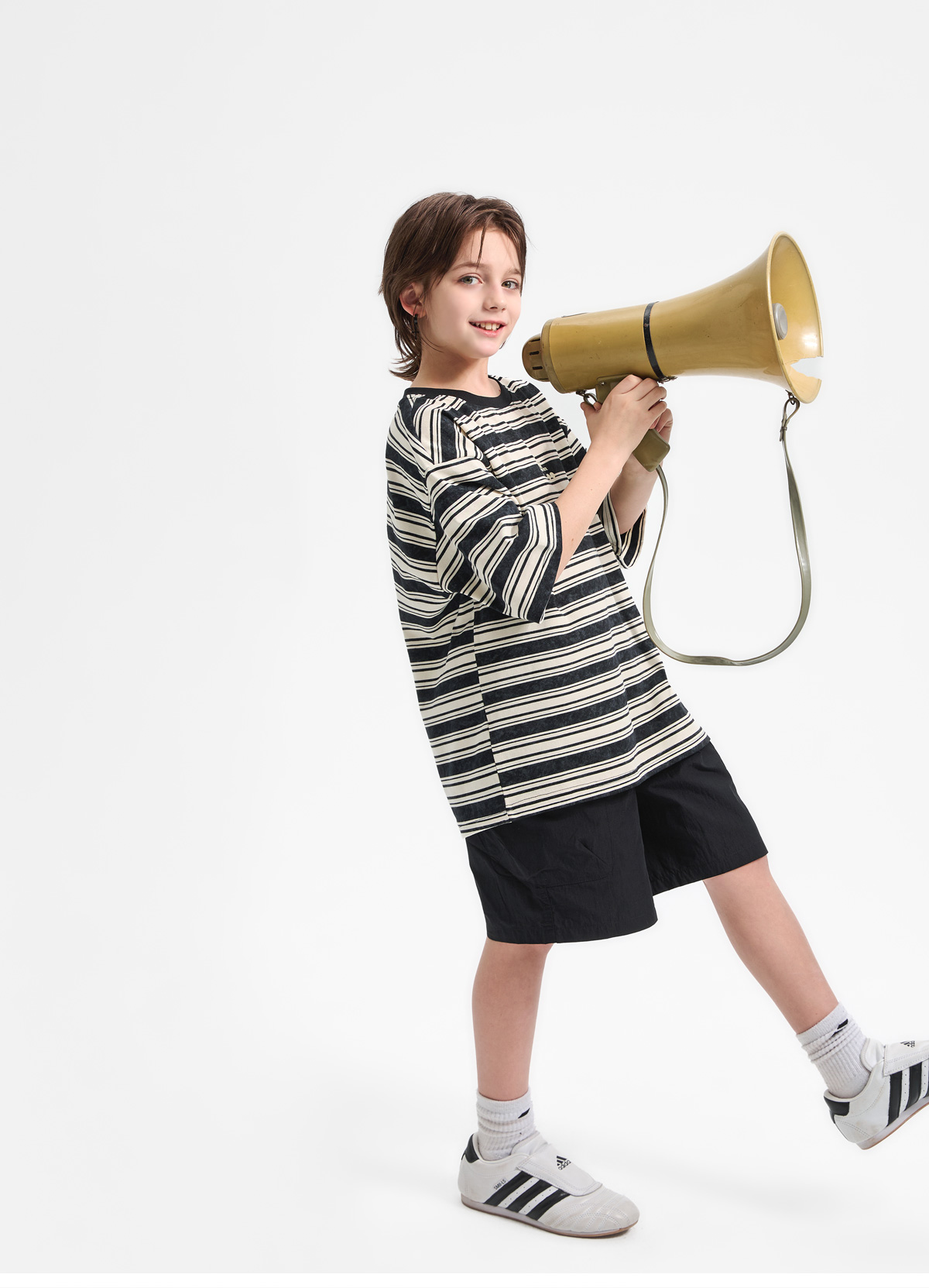 단조롭지 않은 스트라이프 패턴으로 포인트가 되어주는 반소매 티셔츠와