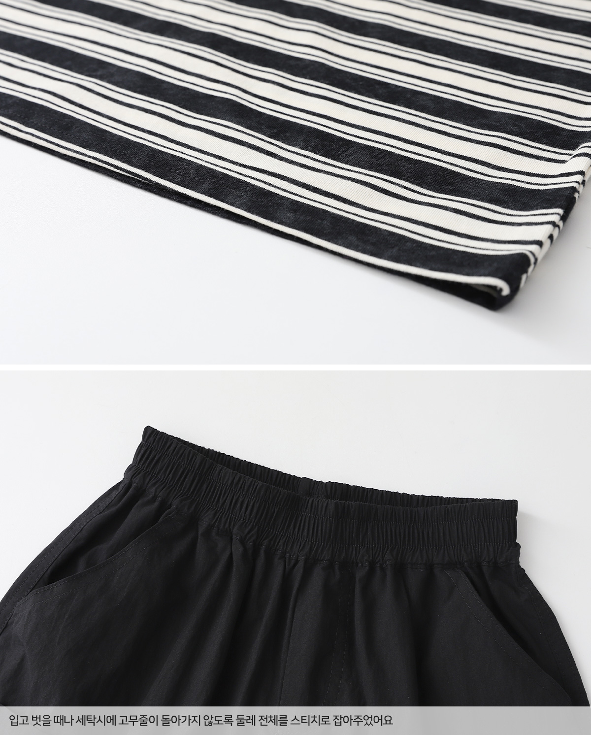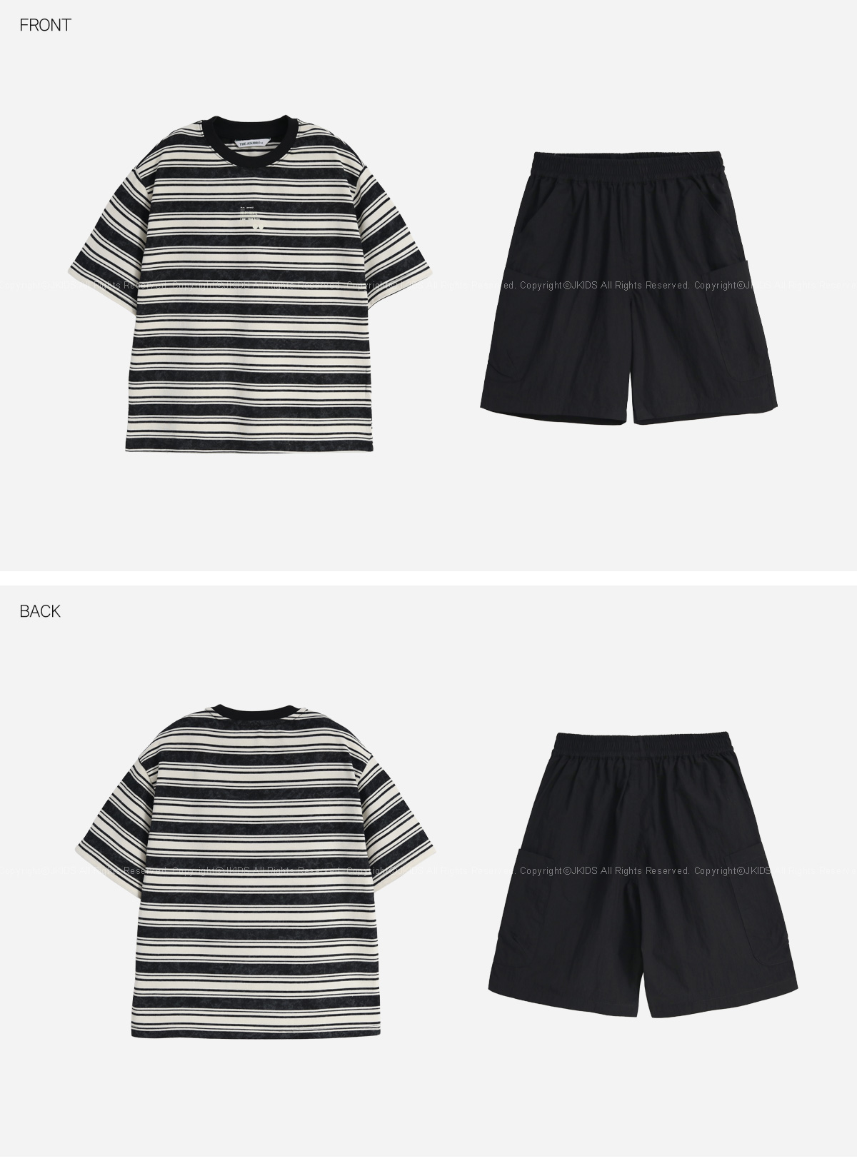 사이드 포켓이 포인트가 되어주는 하프팬츠 구성의 상하셋업이에요